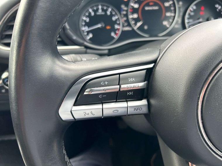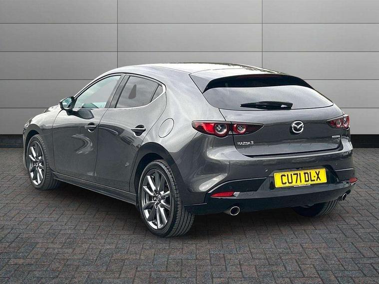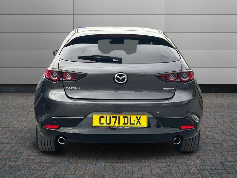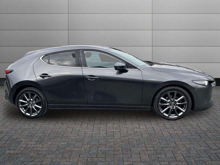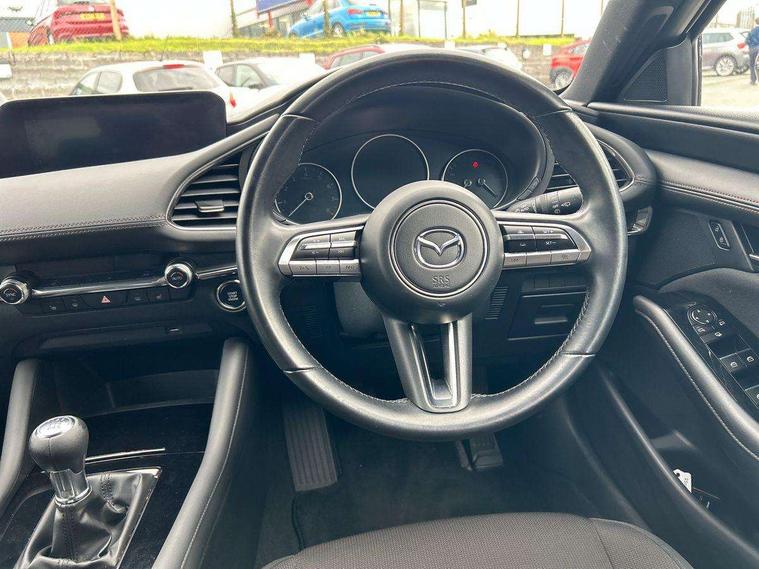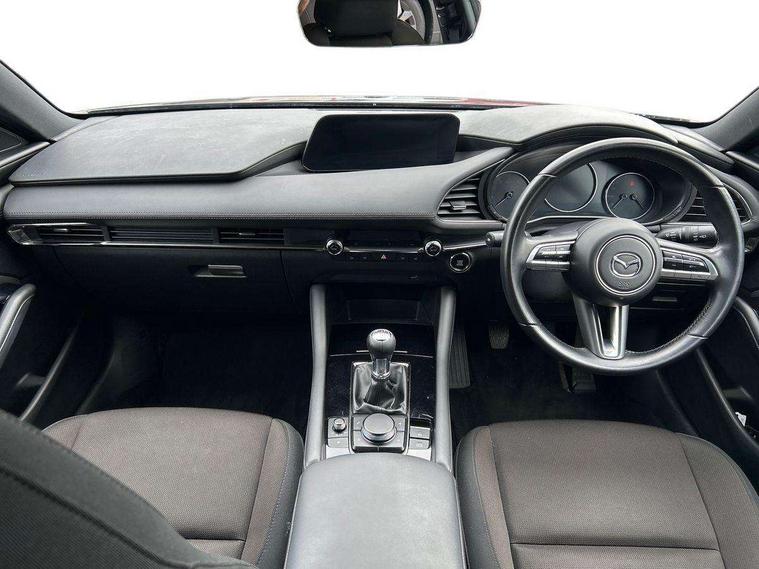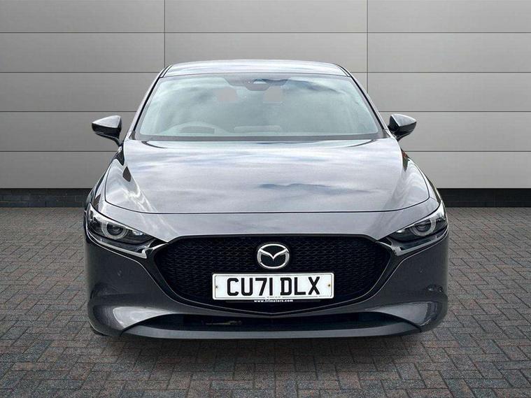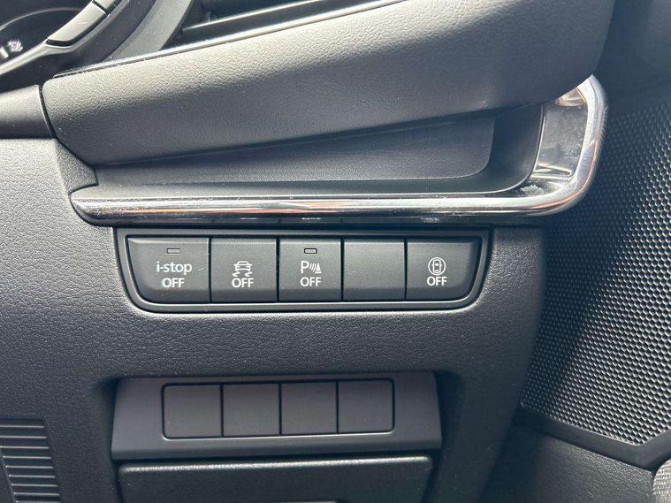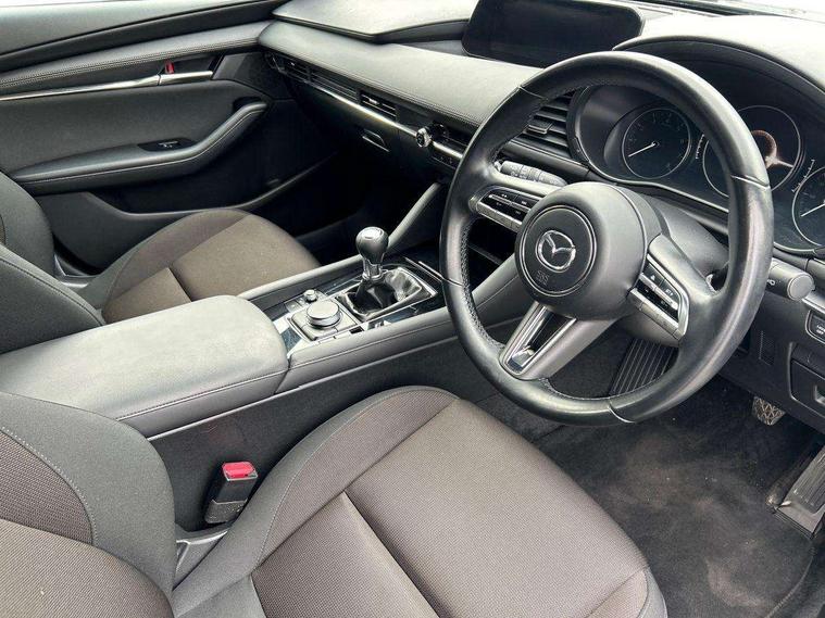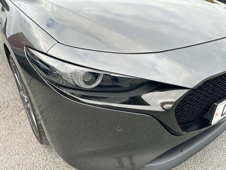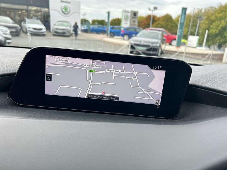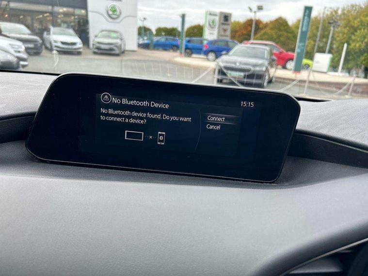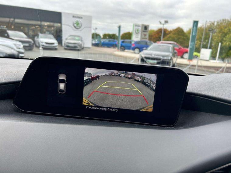 7" colour TFT display, 8.8" Colour centre touch screen display with Mazda Connect infotainment, Apple car play/Android Auto, Audio transfer from bluetooth devices, Blind spot monitoring with rear cross traffic alert, Colour active driving display inc Windscreen projected, Traffic Sign Recognition, turn-by- turn navigation and Mazda Radar Cruise Control information, Digital instrument cluster, Driver attention alert system, E-call with GPS, Emergency stop signalling system, Engine start/stop button, Front and rear parking sensor with audible and visual warning, Head up Display, Integrated bluetooth with steering wheel mounted controls, Intelligent speed assist, Lane keep assist system (LAS) with Lane departure warning system (LDWS), Mazda connected services, Mazda Navigation System with european mapping, Mazda Radar Cruise Control, Mobile App interface, Multimedia Commander, PAS, Reversing camera, Service indicator, Traffic sign recognition (TSR), Trip computer, i-stop, Mazda Multimedia System with AM / FM / DAB radio with 8 speakers, Adaptive LED Headlights, Auto dimming driver's door mirrors, B-pillar garnish in piano black, Body coloured, electrically adjustable, heated auto power folding door mirrors with integrated indicators, Coming/leaving home lighting function, Dark metallic finish signature wing, Dual chrome tailpipes tip, Dusk sensing headlights, Electric front/rear windows with one touch/auto up/down, Frameless auto dimming interior rear view mirror, Front body coloured bumper with black lower bezel, Front kodo turn signal, Gloss black finish front grille, Gloss black rear roof spoiler, LED headlamps with auto levelling, LED indicator lights, LED third brake light, Privacy glass with dark tinting on rear side windows and rear window, Rain sensing front wipers with adjustable sensitivity and speed, Rear colour coded bumper with gloss black lower moulding, Rear fog lights, Signature LED daytime running lights, Signature LED rear combination lights, Speed adjustable rear wash wiper with intermittent wipe, 12v electrical power outlet, 60/40 split fold down rear seats, Black cloth door panel inserts, Cloth upholstery, Dark roof headlining, ceiling and pillars, Driver, front passenger and two rear door pockets, Driver, Front passenger and two rear grab handles with coathooks, Driver/passenger sunvisors + vanity mirrors (drivers side with ticket holder), Drivers seat manual slide recline and height adjustment, Dual zone climate control air conditioning, Folding rear centre armrest with two cup holders, Front and rear courtesy lamps, Front armrest, Front centre storage with two cupholders, Front head restraints, Front passenger seatback pocket, Front passengers seat manual slide, recline and height adjustment, Gear shift indicator, Heated front seats with 3 stage setting, Illuminated glovebox, Interior colouration dashboard and doorcards in black with dark stitching, ISOFIX child seat anchorage points attached on outer rear seats, Leather wrapped gear shift knob, Leather wrapped steering wheel, LED interior light, Luggage compartment light, Power outlet in luggage compartment, Roof mounted sunglasses holder, Three height adjustable rear head restraints, Tilt/height adjustable steering wheel, USB input, 3 point ELR front seatbelts with pretensioners, 3 rear 3 point seatbelts with ELR, Anti-lock braking system (ABS), Drivers knee airbag, DSC - Dynamic Stability Control, Dual stage driver and single stage passenger airbags, EBD - Electronic brakeforce distribution, Electronic parking brake with auto disengage function and auto hold function, Front and rear curtain airbags, Front passenger airbag cut-off switch, Front side airbags, Front smart city brake support, G-Vectoring control plus, Hill launch assist, Intelligent Traction Control system, Mild Hybrid system with regenerative braking, Seatbelt reminder for driver/front passenger and rear seats, Tyre pressure monitoring system (TPMS), Auto door lock when driving, Remote central locking + deadlocks, Smart keyless entry, Thatcham accredited alarm and immobiliser, 18" Grey alloy wheels, Emergency tyre repair kit,