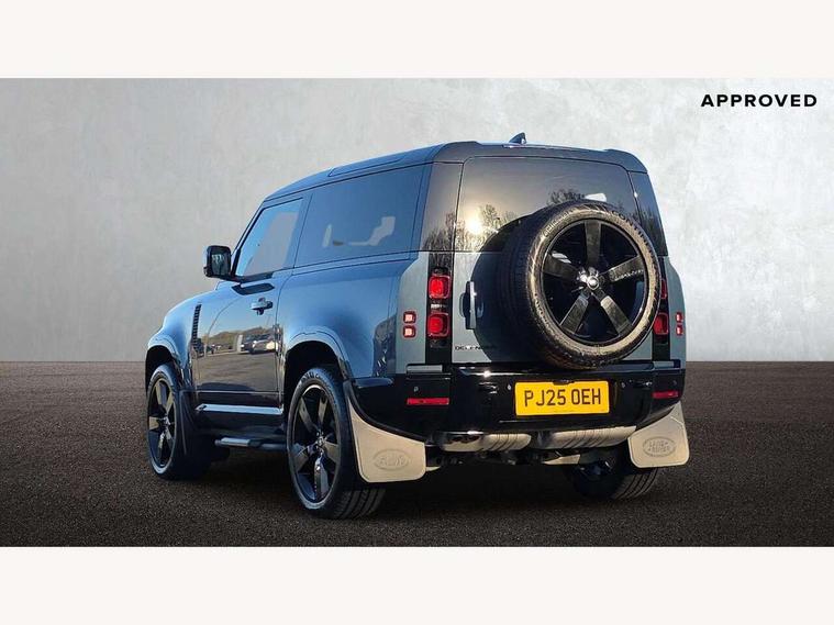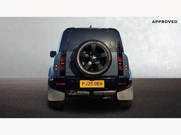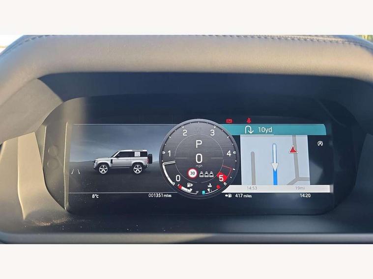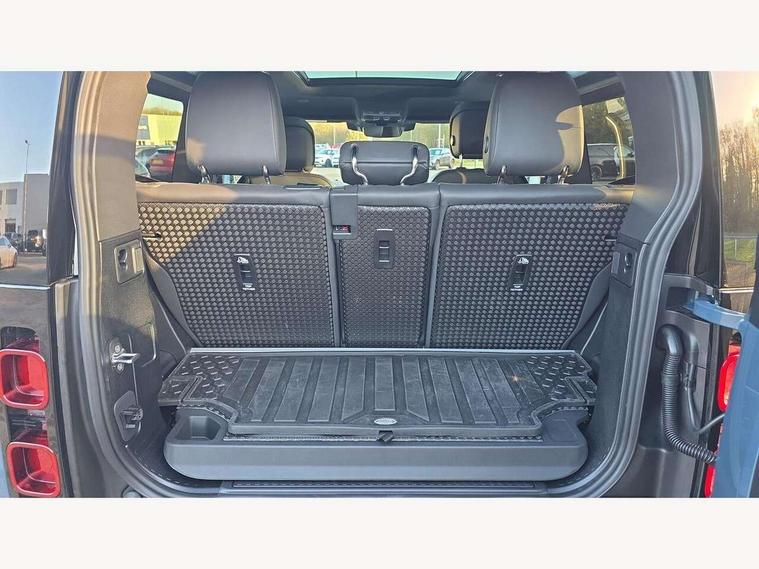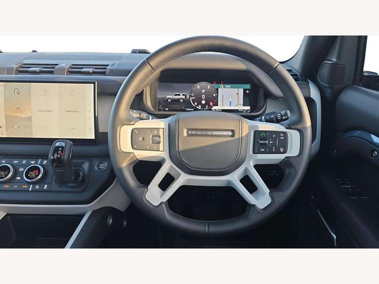 1 x USB-C (power only) & 1 x USB-C (power & data) in Row 1, 2 x USB-C in Row 2, 11.4" touchscreen, 360 degree parking aid, 3D Surround Camera with 360 View, 180 Rear View, Front Traffic Detection, Forward Vehicle Guidance, Tow Hitch Assist and clear sight Ground View, Adaptive cruise control, Android Auto, Apple CarPlay, Blind spot assist, Bluetooth system, Brake pad wear indicator, Clear exit monitor, Connected navigation pro, Driver condition monitor, Electric power assisted steering (EPAS), Interactive driver display, Lane keep assist, Push button start, Rear collision monitor, Rear traffic monitor, Traffic sign recognition with adaptive speed limiter, Trip computer, Wireless device charging, 8 speed automatic transmission, All wheel drive system, Twin speed transfer box, DAB Radio (Digital Audio Broadcasting), Meridian 700w surround sound audio system with 15 speakers, Pivi pro connected, Automatic headlight levelling, Automatic headlights, Black exposed rear recovery eyes, Body coloured bonnet, Centre high mounted stop light, Electric heated/power fold door mirrors with approach lights and auto dimming driver side, Electric windows with one touch open/close and anti-trap, Follow me home lighting, Front fog lights, Heated rear window with timer, Heated windscreen, Illuminated metal treadplates with brand name script, LED tail lights, Matrix LED headlights with signature DRL, Panoramic rear side glass, Privacy glass, Puddle lights, Rain sensing windscreen wipers, Rear fog lights, Rear wiper, Side hinged tailgate, Sliding panoramic roof, Standard tail door, Trailer stability assist, X-Dynamic badge, 12V power socket in loadspace, 3 seat bench in 2nd row, Alpine lights, Configurable cabin lighting, Durable rubber cabin flooring, Durable rubber loadspace flooring, Electric reach + rake adjustable steering column, Electrically adjustable steering column, Extended leather upgrade, Flat load space floor tray, Footwell lights, Front head restraints, Heated steering wheel, Loadspace cover, Loadspace Hook, Manual Tip & Slide front passenger seat, Multifunction steering wheel, Overhead stowage for sunglasses, Rear headrests, Rear ISOFIX, Rear reading lights, Row 2 seats with forward folding seat base, Single front passenger seat, Soft close tail door, Standard seat configuration, Storage glovebox, Sunvisors with illuminated vanity mirrors, Twin front cupholders, Non-smoker package, Online pack with data plan - Defender, 5 x 3 point seatbelts, ABS, Brake hold function, Cornering brake control (CBC), Customer configurable autolock, Driver and passenger airbags, DSC - Dynamic Stability Control, EBD - Electronic brakeforce distribution, Electric parking brake (EPB), Emergency brake assist, Emergency braking, ESP + traction control, Front airbags with passenger seat occupant detector, HDC - Hill descent control, Hill launch assist, Low traction launch, Remote for (e-Call, Optimised assistance call, InControl app, Climate, beep and flash and door), RSC - Roll stability control, Seat belt reminder, TPMS (Tyre pressure monitoring system), Alarm, Immobiliser, Intrusion sensor, Keyless entry, Locking wheel nuts, Secure tracker pro,