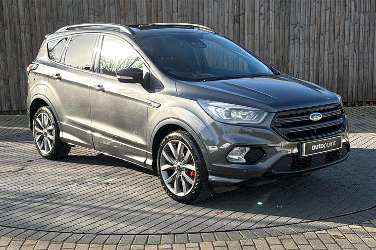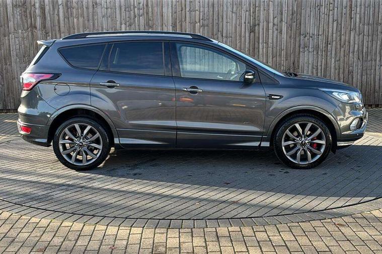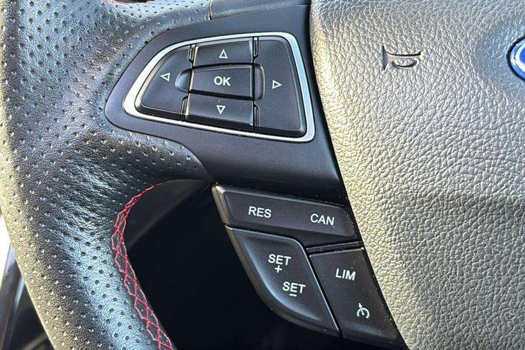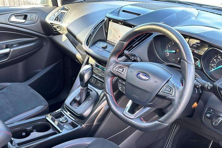 Apple car play/Android Auto, Enhanced active park assist including perpendicular parking pull out assist, flank guard and front/rear parking sensor, EPAS, Hands free telephone, Trip computer, Sports suspension, Auxiliary socket for external device, Remote audio controls on steering wheel, USB connection, Auto dimming rear view mirror, Black mirror caps, Black roof rails, Body colour bumpers, Body styling kit - Body colour front/rear/side skirts, door claddings, wheel arches, high gloss black rear mesh, silver skid plate and rear diffuser, Electric panoramic glass sunroof, Electrically operated and heated door mirrors with side indicators, Electrically operated front and rear windows with global closing, Front fog lights, Front scuff plate, Large rear spoiler, Power folding door mirrors, Quickclear heated windscreen, Rain sensor windscreen wipers, Rear privacy glass, Silver roof rails, Tailgate wash/wipe, Twin exhaust pipes, 6 way manually adjustable passenger seat with lumbar support, 60/40 split/folding rear back and cushion, Alloy Foot Pedals, Auxiliary power socket in luggage area, Centre console with stowage tray/bottle holder/CD stowage/front and rear 12V power point, Dark headlining, Driver/passenger front seatback pockets, Dual electronic automatic temperature control, Flat bottomed steering wheel, Floor mats with red stitching, Folding rear centre armrest, Footwell courtesy lights front and rear, Front head restraints, Front overhead courtesy lights with theatre style dimming and delay, Front/rear reading lights, Gearshift paddles, Isofix system on outer rear seats, Leather steering wheel with red stitching and gear knob, Multi-colour ambient interior lighting, Part leather upholstery, Reach + rake adjustable steering column, Rear head restraints, Sports style front seats, Stowage unit in upper instrument panel, Tie down hooks, Tonneau cover, Variable intensity instrument illumination, 3 point seatbelts on all 3 rear seats, ABS/EBD, Airbags - front driver/passenger, front and rear curtain, Drivers knee airbag, EBA, Electric traction assist system, Electronic Stability Programme, Front passenger airbag deactivation switch, Hill start assist, Intelligent Protection System (IPS), Red brake calipers, Tyre pressure monitoring system, Immobiliser, Keyless entry, Keyless start with 'Ford Power' starter button, Locking wheel nuts, MyKey system, Remote central locking, Thatcham Cat.1 alarm, 19" 5x2 rock metallic alloy wheels, Mini steel spare wheel,