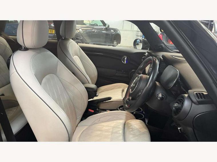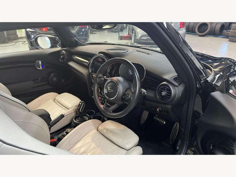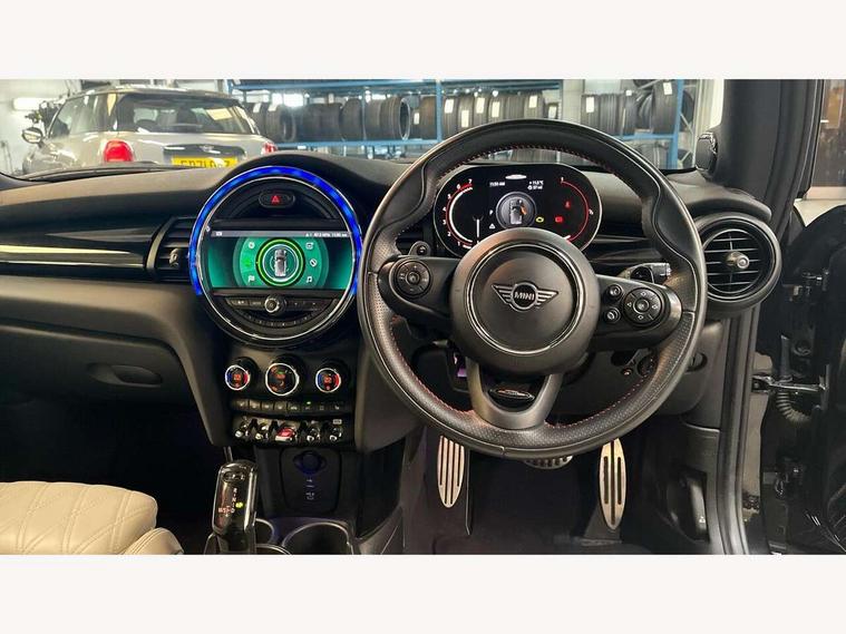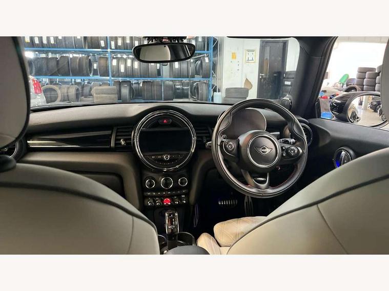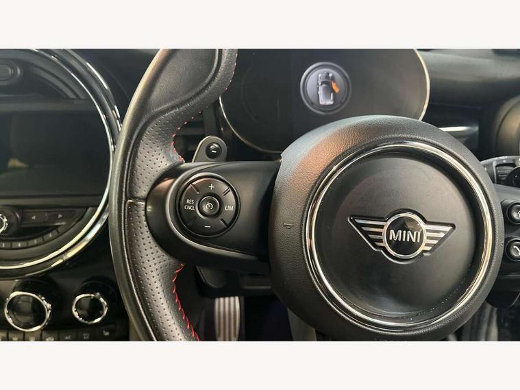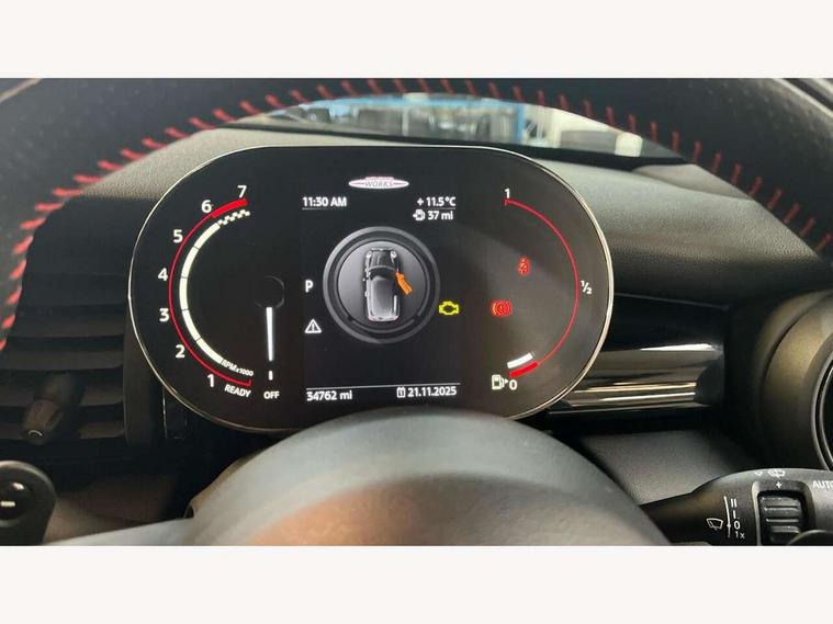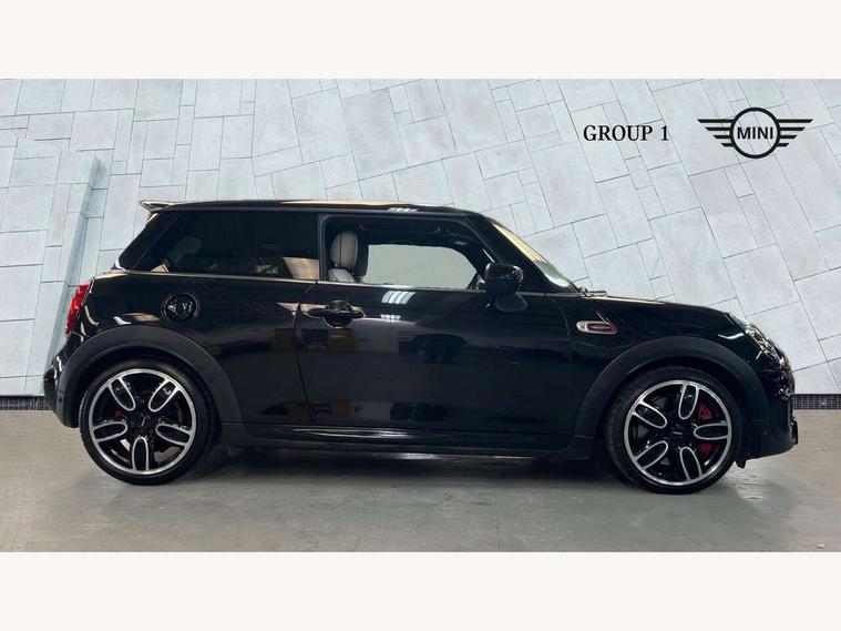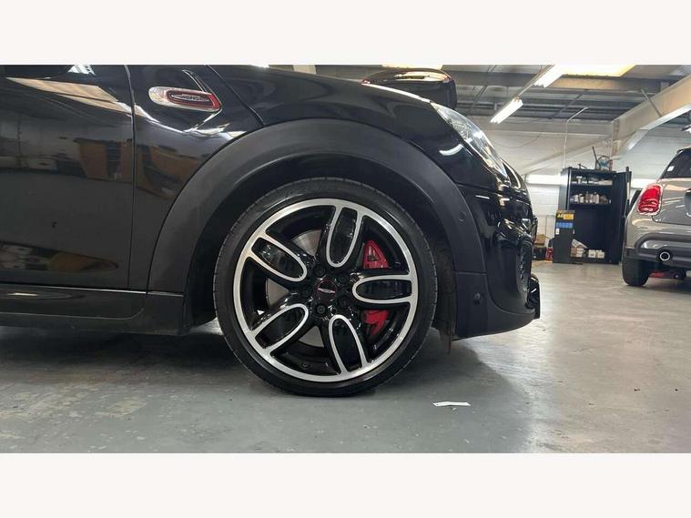Automatic start/stop function with brake energy recuperation, Compatible mobile phone bluetooth with audio streaming, Electro-mechanical speed dependant steering assistance, Instrument cluster, MINI Driving Modes - centre toggle switch to control driving setting (sport, mid and green), Mini E-call, MINI TeleServices, On board computer, Service interval indicator, Double Vanos system, Eight speed steptronic sport transmission, with gearshift paddles, Fully variable valve control, Gear change indicator display, High precision injection, Performance Control, 6.5" touchscreen with LED ring, FM tuner and DAB digital radio, Automatic headlight activation switch, Bonnet scoop, Chrome door handles, Chrome plated fuel cap, Dynamic brake lights, Electric front+rear windows, Heated rear window, Heated windscreen washer jets, John Cooper Works - aerodynamic kit (front and rear apron, spoiler), front and rear sport bumpers and part-painted side sills with door sill finishers, John Cooper Works rear spoiler, LED headlight with closed ring and daytime driving lights, Metal look door sill finishers, Piano black border radiator grille with honeycomb structure in black matt and John Cooper Works logo with upper individual grille strut in chilli red, Piano black exterior, Rain sensor window wipers, Rear fog lights, Rear LED lights with union jack design, Rear window wiper, Side scuttle with MINI John Cooper Works logo in black high-gloss with red border, Sun/heat protection glass, Two central exhaust tailpipes with chrome finisher, White indicator lenses, 12V Accessory socket in centre console, 4 lashing eyes in luggage compartment, 60/40 split folding rear seat, Carbon Black colour line, knee roll and door armrests, Chrome interior highlights, Cupholders, Front and rear head restraints, Front and rear isofix with front passenger airbag deactivation, Glove compartment, Height and length steering column adjustment, Interior lighting with 12 basic colours selectable via toggle switch in roof, Internal chrome door handles, John Cooper Works Logo in seat, John Cooper Works sport leather steering wheel, Leather gearshift lever and handbrake gaiters, LED reading lights, vanity mirror lights, front foot well light and spotlight on front seats, Manual air conditioning, Mechanical seat adjustment, driver seat height adjust, forward/back and front seats backrest, Mini logo projection on floor from drivers exterior mirror, Multifunction steering wheel, Stainless steel pedals with rubber inserts, Storage compartments in doors, Sunvisors with vanity mirrors, 17" front sport brake with 4 piston fixed calliper, 3 point seatbelts on all four seats, 6 Airbags - front, side, head and seat belt tensioners, Anti-lock braking system (ABS), DSC - Dynamic Stability Control, Front and rear disc brakes, Hill start assist, Red brake callipers with John Cooper Works logo, Two tone horn, Tyre pressure monitoring system, Alarm system with tilt sensor, monitoring doors, bonnet interior and tailgate, Electronic vehicle immobiliser, Start/stop toggle with keyless go, Tool kit,