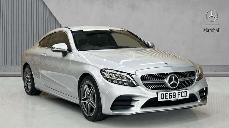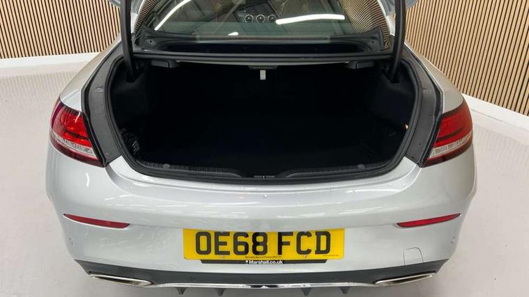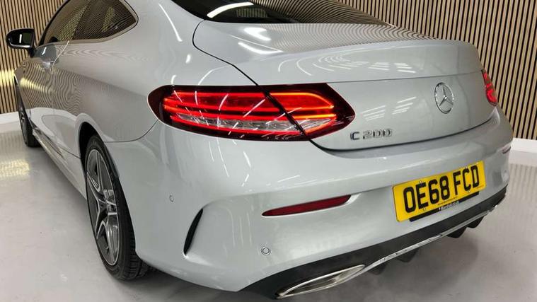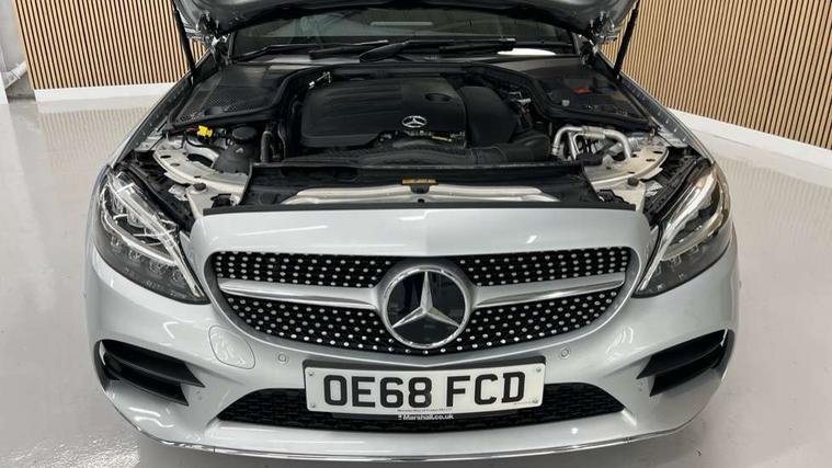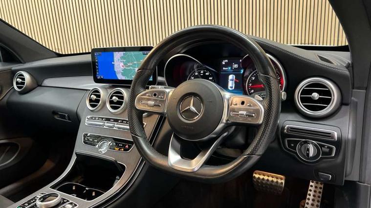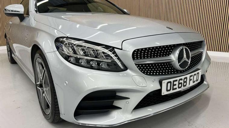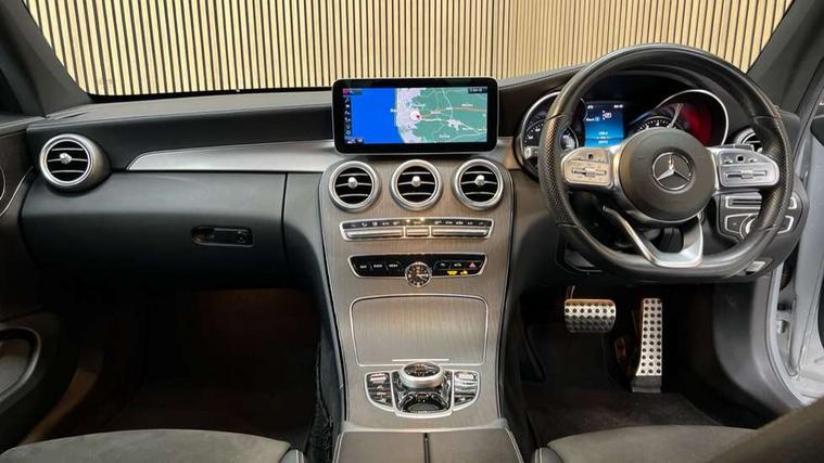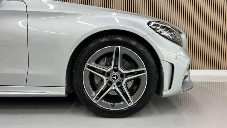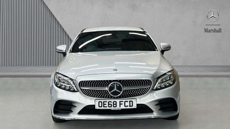 10.25" display screen, Active park assist with parktronic system, Attention assist, Bluetooth interface for hands free telephone, Collision prevention assist plus, Cruise control with speedtronic variable speed limiter, DYNAMIC SELECT with a choice of driving modes (ECO, Comfort, Sport, Sport+ and Individual), Instrument cluster with 5.5-inch TFT multi-function display, Mercedes connect me with remote online, Multi function trip computer, Outside temperature gauge, Remote boot release, Reversing camera, SD card based satellite navigation system, Service indicator (ASSYST), Speed sensitive steering, Stop/start system, Petrol Particulate Filter, Sport exhaust system, 2 USB ports, DAB digital radio module, Frontbass loudspeakers, Media interface, Mercedes Audio 20 radio/single CD, Mid-range sound system, SD card slot, Adaptive brake lights, AMG front, rear apron and side skirts, Auto dimming driver's door mirror, Auto dimming rear view mirror, Body coloured bumpers, Body coloured door mirrors, Chrome grille surround, Chrome pins diamond radiator grille with integrated stars, Door sill plates with "Mercedes-Benz" lettering, Electric adjustable/heated/folding door mirrors, Electric windows one touch open/close, Green tinted glass, LED daytime running lights, LED Headlights, LED Indicators, LED tail lights, LED third brake light, Radio aerial in side window, Rain sensor windscreen wipers, Side windows surround in polished aluminium, Twin exhaust tailpipes x2, 2 cupholders in front centre console, 2 rear head restraints, 3 spoke flat bottom multi-function leather AMG steering wheel, 40:20:40 split folding rear seats, AMG floormats, Artico man-made leather upper dashboard and beltlines with contrast stitching, Auto dual-zone climate control system, Auto Mercedes-Benz child seat recognition sensor, Door courtesy lamps, Electrically adjustable front seats, Front centre armrest with storage compartment, Front footwell illumination, Heated front seats, Height adjustable front seats, Illuminated front/rear door handle recesses, Illuminated glovebox, Isofix rear child seat fastenings, LED reading lights, LED rear reading lights, Sports pedals with stainless steel surfaces and rubber studs, Sports seats with integrated headrests, Steering wheel audio controls, Steering wheel gearshift paddles, Sunvisors with illuminated vanity mirrors, Seat comfort pack - C Class, Stowage space pack - C Class, 2 rear seatbelts, 3 point automatic seatbelts, ABS, Active bonnet, Adaptive brake system, Black seat belts, Brake calipers with Mercedes-Benz lettering + perforated brake discs, Crash sensor, Drivers knee airbag, Drivers pelvis airbag, Dual stage driver/passenger airbags, Electronic parking brake, Electronic stability control, Front and rear window airbags, Front seatbelt pretensioners, Front side airbags, Hill hold control, Hill start assist, Tyre pressure monitoring system, Warning triangle and first aid kit, Alarm system/interior protection/immobiliser, Automatic door locking, Chrome surround electric key, Remote central locking, Tow away protection,