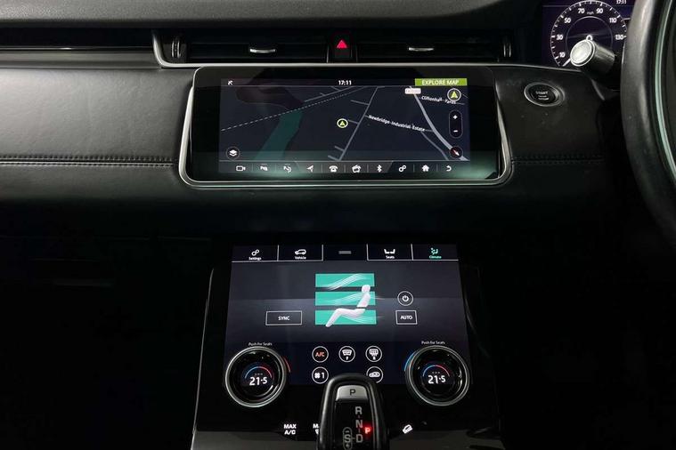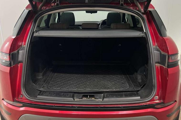 360 degree parking aid, Android Auto, Apple car play, Blind spot assist, Bluetooth connectivity, Brake pad wear indicator warning light, Clear exit monitor, Driver condition monitor, Duo touch pro, Electronic power assisted steering (EPAS), InControl remote, Interactive Driver display instrument cluster, Land Rover InControl apps, Lane keep assist, Navigation pro system, Park assist - Parallel, perpendicular and parking exit, Powered gesture tailgate/boot lid, Pro services and wifi hotspot, Push button starter, Rear traffic monitor, Smart settings, Traffic sign recognition with adaptive speed limiter, Voice control system, All terrain progress control, Efficient Driveline, Passive suspension, Terrain Response 2 Auto, Digital Audio Broadcast radio-DAB, Steering wheel mounted controls, Automatic headlight levelling, ClearSight interior rear view mirror, Electric windows with one touch open/close and anti trap, Evoque badge, Flush deployable exterior door handles, Heated rear window with timer, Heated washer jets, Heated windscreen, Power fold, auto-dimming, heated door mirrors with memory and approach lights, Rain sensing windscreen wipers, Rear fog lights, Tailgate spoiler, 40:20:40 split folding rear seats, Isofix system on outer rear seats, Overhead lighting console, Overhead stowage for sunglasses, Passive front head restraints, Rear air vents, Rear centre headrest, Sunvisors with illuminated vanity mirrors, Twin front cupholders with cover, Twin sliding front centre armrest, 3 rear 3 point seatbelts, Anti-lock braking system (ABS), Customer configurable autolock, DSC - Dynamic Stability Control, Electronic brake force distribution, Electronic parking brake, Electronic traction control, Front and rear seatbelt reminder, High speed emergency braking, Hill descent control, Hill launch assist, Low traction launch, Power operated child locks, Roll stability control, Six airbags - Driver and passenger airbags/driver knee airbag/front side airbag and curtain airbags, Torque vectoring brake, Tyre pressure monitoring system, Alarm, Immobiliser, Intrusion sensor, Keyless entry, Locking wheel nuts,