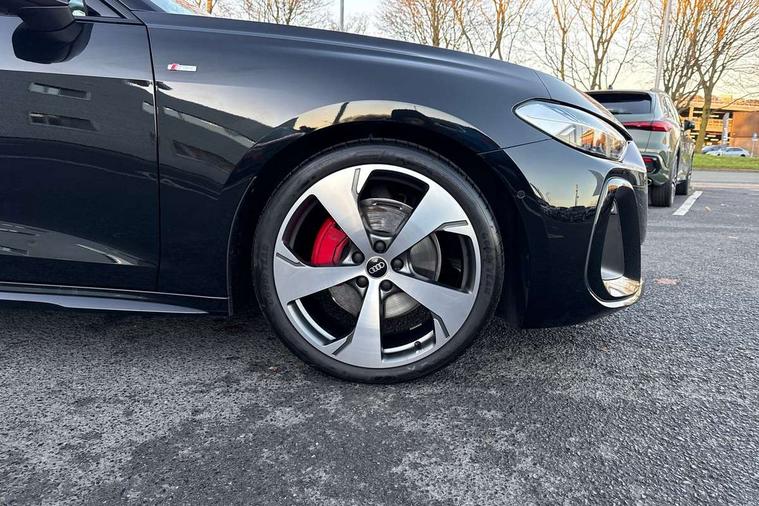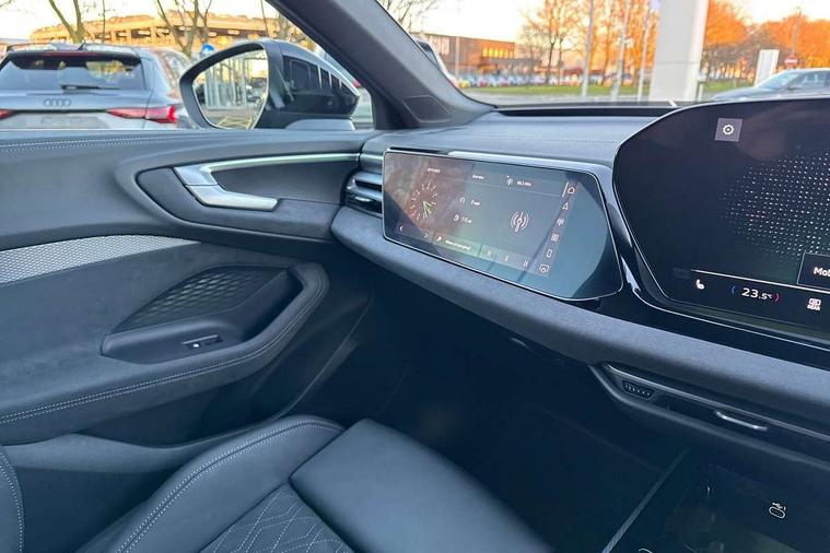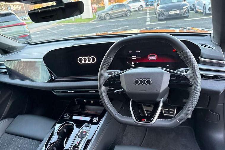 Adaptive cruise control, Advanced driver attention and fatigue montior, Audi application store, Audi assistant, Audi connect emergency call and service, Audi drive select, Audi virtual cockpit plus with 11.9" OLED colour display, Automatic start/stop system with coasting functionality, Camera based traffic sign recognition, Intersection assist, Lane change assistant with exit warning system, rear cross traffic alert and rear turn assist, Lane departure warning with emergency assist, MMI 10.9" front passenger touch display, MMI navigation plus with high resolution 14.5" OLED touchscreen colour display, Park assist plus, Parking system plus with 360 display, Progressive steering with servotronic, Smartphone interface, Swerve assist and turn assist, Top view camera, Traffic sign based speed limiter, Sports suspension lowered by 20mm, 2 USB-C ports in both the front and rear, Audi sound system impressive sound with 8 loudspeakers including centre speaker and subwoofer, 6-channel amplifier with a total output of 180 watts, DAB digital radio reception, Smartphone compartment with wireless charging, Aluminium window trims, Auto dimming rear view mirror, Black door handles, Black roof rails, Dark chrome-plated tailpipe trims, Door mirrors - electrically adjustable, heated, folding and auto dimming on both sides, Front and rear electric windows, Front door sill trims with aluminium inlays, illuminated with 'S' logo, Headlight cleaning system, High beam assist, LED daytime running lights, LED rear lights pro incl. dynamic rear indicators and illuminated light strip with animated coming and leaving home function, LED third brake light, Matrix LED headlights with eight light signatures selectable via the MMI or the myAudi app, Privacy glass, Rear and side windows with heat insulating glass, Rear side wing doors, Rear wash/wipe, S Line badges on the front wings, S line bumpers, radiator grille and diffuser in phantom black and diffuser insert in matt anthracite, White rhombus logo projection light in exterior mirrors, Windscreen with acoustic glazing, 3 rear headrests, 3 seat rear bench, 3 spoke leather steering wheel with multi-function buttons with touch control, flattened on top and bottom, with S badging and contrast stitching, 3-zone automatic climate control, 40:20:40 split folding rear seat bench with centre armrest and cup holders, Comfort front centre armrest, Electrically adjustable front seats, Front and rear floor mats, Front sport seats with integrated headrest and S embossed logo, Headlining in black cloth, Heated front seats, i-Size child seat mounting on the front passenger side and outer rear seats, i-Size and top tether on the outer rear seats, Luggage compartment lid, electrically opening and closing, Manual steering column height and depth adjustment, Memory function for driver seat, Single front passenger seat, Stainless steel pedals and footrest, Steering wheel grips in perforated leather and shift paddles, Ambient lighting package plus - A5, Black styling package plus - A5, 3x3 point rear seat belts, Acoustic vehicle alerting system, Convenience key with safelock, Driver airbag, Electric child safety locks, First aid kit with warning triangle and vests, Front emergency brake assist, Front passenger airbag, Front passenger airbag deactivation, Hill hold assist, Occupant detection in rear seat area, Proactive passenger protection system for front, sides and rear, Red brake calipers, Seat belt monitoring with rear seat occupant reminder, Side airbags in front and rear with head airbag system and front interaction airbag, Tyre pressure loss indicator, Anti theft alarm, Anti-theft wheel bolts, Keyless Go, Accent surfaces and control buttons in gloss black, Black dashboard with contrast stitching, Softwrap in Dinamica with contrast stitching, Upper and lower interior elements in dinamica microfiber, 20" 5 arm fold design Audi sport alloy wheels in silk matt grey and gloss turned finish, Tyre repair kit,