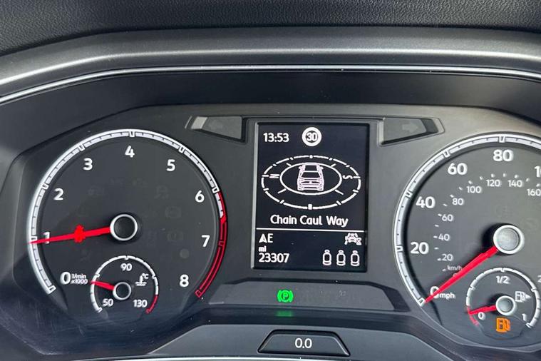 'Lights On' Reminder warning buzzer, Adaptive cruise control, Bluetooth telephone and audio connection for compatible devices, Car information display, Driver tips and journey analysis, Electric bootlid, Electric operated opening and closing tailgate, Emergency call service, Lane assist with warning text instrument cluster, Modified key software - reduce switch off time for key status change to Long no motion, Multifunction camera, Multifunction computer with visual gear change recommendation for fuel consumption, Navigation system discover media including streaming and internet, Service interval indicator, Think blue trainer driver tips and journey analysis, Traffic sign recognition, Unique 'Active' logo on B pillar, Warning sound and light for front seatbelts unfastened, Wireless app connect for apple carPlay, Battery regeneration during braking, Start/stop function with battery regeneration, DAB Digital radio, Diversity antenna for FM reception, Music playback - MP3, WMA and AAC files, Premium USB cable in choice of either Apple or Android smartphone compatibility, SD card slot, Simultaneous pairing of 2 compatible mobile devices, Single CD player, glovebox mounted, SMS functionality - read, compose and send SMS messages using touch-screen display, Storage compartment with longitudinal and height adjustable in armrest and two rear air vents, Title and cover art display, USB-C Interface and USB charging socket, Auto dimming interior rear view mirror, Automatic coming/leaving home lighting function and daytime running lights, Automatic hazard lights activation under emergency braking, Black grained lower door protectors, Black grained wheel arches, Body colour door handles, Body coloured bumpers and radiator grille with chrome trim and front fog lamps with chrome bezel, Body coloured door mirrors with integrated indicators, Chrome trim on upper and lower radiator grille, Door sill protectors with special trim design, Dusk sensor, Electrically foldable, adjustable and heated door mirrors with puddle lights and reverse activated kerb-view adjustment on passenger's door mirror, External USB type C socket and charging sockets, Front and rear electric windows, Front fog lights with static cornering function, Front windscreen wiper with intermittent wipe and 4 position delay, Fully galvanised body, Heated rear window, Heated windscreen washer jets, High level 3rd brake light, LED rear number plate lights, LED tail lamp rear comination lamps, Rain sensor, Rear tinted glass from B-pillar backwards approx 65% tinted, Rear wash/wipe with intermittent wipe setting, Volkswagen roundel, 12V socket in centre console storage area, 3 rear head restraints, 4 load lashing points in luggage compartment, Climate control - 2 zone electronic air conditioning with automatic air recirculation and allergy filter, Door and side trim panel, Drawer under drivers seat, Front + rear carpet mats, Front centre armrest, Front comfort seats with manual height adjustment, Front cupholders x 2, Front reading light, Front seat back storage pockets, Glovebox, Heated front seats, Height adjustable front seats, Height/reach adjust steering wheel, Instrument lighting, white adjustable panel illumination, Interior light delay, Isofix easy fit child seat preparation for 2 outer rear seats, Load through provision with single cup holder when folded down, Luggage compartment cover, removable, Luggage compartment lighting, Split folding rear seat backrests with centre armrest, Stainless steel pedals, Storage compartment in left and right luggage area, Storage compartment in rear doors, Storage compartments in driver and front passenger doors, Sunvisors with illuminated vanity mirrors, Trapeze cloth upholstery, 3 rear three point seatbelts, ABS, Curtain airbags, Driver and front passenger safety-optimised head restraints, Drivers and front passengers airbags with passengers deactivation switch, Drivers seatbelt reminder, Electronic parking brake with auto hold, Electronic stability control (ESC) includes ASR, EDL, EDTC and trailer stabilisation function, Front assist with city emergency braking and pedestrian monitoring, Front seat side impact airbags, Predictive pedestrian protection, Rigid safety cell with front and rear crumple zones, Single tone horn, Three point height adjust front seatbelts + pretensioners, Tyre pressure loss indicator, Ventilated front and rear disc brakes, Volkswagen roadside assistance, Alarm with remote central locking and interior protection, Electronic engine immobiliser, Remote central locking with SAFELOCK, radio remote control with 2 remote control folding keys, Decorative inserts in for special trims, 17" Galway alloy wheels with super low rolling resistance tyres and anti theft wheel bolts,