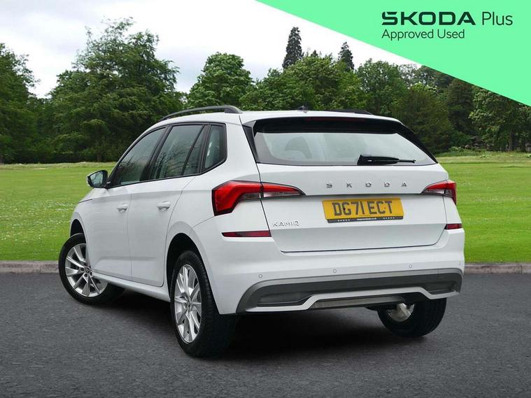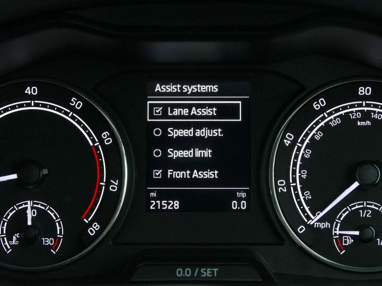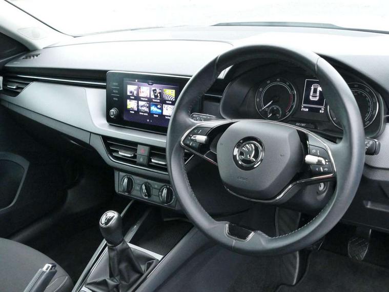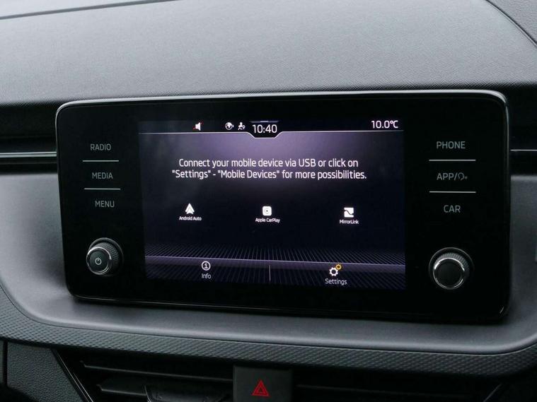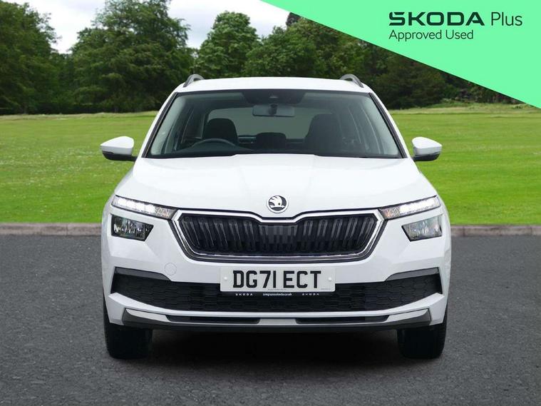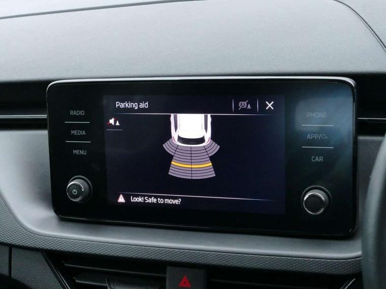 8" Digital display, Amundsen satellite navigation with 8" touchscreen display with maps Europe, WLAN and web radio, Care connect, Driver fatigue sensor, Electro-mechanical PAS, Emergency services call system, Outside temperature gauge, Service interval indicator, SmartLink wireless for Apple and wired for Android, Start/stop system with regenerative braking, USB C Port x 2 in front centre console, 8 speakers, DAB radio with Bluetooth, USB connection, Acoustic glass, Aero front windscreen wipers with intermittent function, Auto dimming rear view mirror with light and rain sensors, Black electric window control buttons, Body colour door mirrors and handles, Dynamic headlight range control with cornering light function, Electric front and rear windows with child proof lock, Electrically adjustable heated folding and auto dimming door mirrors, Front fog lights, Heated rear windscreen, LED daytime running lights, LED Headlights, LED rear lights with high functionality welcome effect and dynamic indicators, Light assistant (coming/leaving home/tunnel light), Plastic scuff plates, Privacy glass, Rear side wing doors, Rear window wiper with washer system and intermittent control, Safety reflectors on front doors, Third brake light, 1.5 litre bottle holders in driver and front passenger door panels, 12V socket in boot, 12v socket in front centre armrest with storage compartment and rear air vents, 2 x Tablet holder, 3 rear height adjustable headrests, 3 seat bench in 2nd row, 4 foldable roof handles with rear coat hooks, Black floor carpet, Chrome inner door handles, Double sided boot floor, Driver/front passenger reading lights, Foldable hooks in the boot, Folding tables on the front seat backrests, Front head restraints, Height adjustable driver and passenger seat, Height adjustable front three point seats belts with tensioners, Height/reach adjust steering wheel, Ice scraper, Illuminated glovebox, Illuminated luggage compartment, Isofix child seat preparation for front passenger seat, Isofix child seat preparation outer rear, Manual lumbar support for front seats, Pearl grey interior ceiling, Pen holder, Pollen filter, Rear boot cover, Rear reading lights, Rubbish bin door, Safety vest holder, Single front passenger seat, Storage box in upper central dashboard closed, Sunvisors with illuminated vanity mirrors, Textile floor mats, Ticket holder, Tool kit, Umbrella under passenger seat, Boot pack - Karoq, Automatic door unlocking in case of crash, Automatic fuel cut off in case of crash, Child locks on rear doors, Driver airbag, Electronic parking brake with auto hold function, Emergency rear braking signal, ESC including ABS, MSR, ASR, EDS, HBA, DSR, RBS, MKB and traction control, Front side airbags, Hill hold control, Knee airbags, Passenger airbag with switch-off function, Pedestrian monitor, Seatbelt reminder signalisation and pretensioner for all seats, Three point seatbelts rear, Two tone horn, Tyre pressure display, Tyre pressure monitor, Alarm with interior monitoring, back up horn and tilt sensor with safe function, Electronic engine immobiliser, Remote central locking with 2 remote folding keys, Black centre console, Chrome framed air vents, Satin black dashboard, Satin black door trim, Anti-theft wheel bolts protection, Storage on wheel cover,
