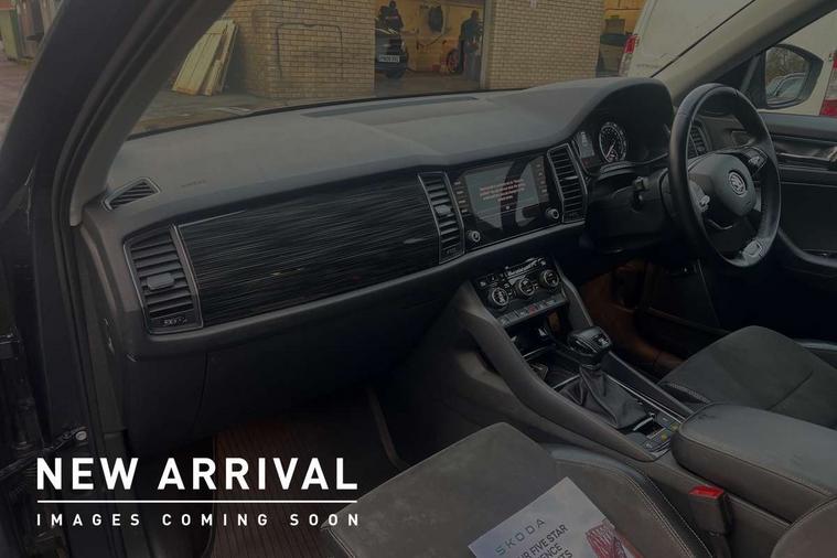 Bluetooth system, Digital voice enhancement, ECO Stop/start function, Exterior temperature indicator, Map care, Smartlink wireless for apple carplay and wired for android auto, Speed limiter, USB C Port x 2 in front centre console, Bolero Radio, DAB Digital radio, DVD System, Aero front windscreen wipers with intermittent function, Aero rear window wiper, Auto dimming rear view mirror, Automatic activation of hazard warning lights, Black electric window control buttons, Black wheel arch surrounds, Body colour bumpers, Body colour door mirrors and handles, Electric front and rear windows, Electrically adjustable, heated and folding door mirrors, Front and Rear door steps, Full LED Headlights with adaptive front light system and LED daytime running lights, Headlight washers, Heated rear window, Invisible tailpipe, LED front fog lights with static cornering light function, LED rear fog light, LED third brake light in rear spoiler, Light assistant (coming home/tunnel light), Radiator grille frame in matt black with chrome strip, Rain and light sensors, Rear spoiler, Safety reflectors on front and rear doors, Sunset privacy glass, 12V socket in boot, 2 rails with 2 hooks including 4 hooks for net programme, 4 foldable roof handles with rear coat hooks, 4 lashing points on luggage floor, 60:40 foldable rear seat with sliding adjustment and backrest angle adjustment, Bottle holders in door panel in the 1.5 litre front and 1 litre rear, Cargo storage compartments, Centre console with open storage box, cup holder and 12V socket, Chrome headlight control button, Chrome interior door handles, Coat hooks on B pillar, Covered storage compartment on driver side, Front and rear door armrest with black adductor trim, Front and rear height adjustable headrests, Front centre armrest with storage compartment, cup holder and 12V socket, Front courtesy lights, Gear shift lever with chrome frame and black gloss insert, Illuminated and cooled glovebox, Illuminated luggage compartment, Isofix child seat fittings in outer rear seats with top tether, Manually adjustable steering column, Net programme in boot (1x horizontal Net, 2x vertical Nets), Overhead glasses storage compartment, Pollen filter, Rear centre armrest with cupholders, Roll up luggage compartment cover with intermediate position, Small Bags on the inner sides of the front backrests, Storage compartment in lower middle instrument panel with closing, Three rear height adjustable headrests, Ticket holder on A Pillar, Umbrella in door panel, Chrome pack - Kodiaq, Auto door release and activation of warning lights, Driver and passenger airbags, Electronic parking brake with hill hold control, Emergency rear braking signal, ESC (incl. ABS+MSR+ASR+EDS+HBA+DSR+RBS+MKB), Front and rear three point safety belt on all seats, Front assist includes AEB city/urban, Front passenger airbag deactivation switch, Front side airbags, Fuel cut off safety device, Head and knee airbags, Rear disc brakes, Safety vest holder in door, Seat belt reminder for all seats, Tailgate unlocking from outside, Two tone horn, Tyre pressure monitor, Warning lights in front doors, Alarm with interior monitoring and tilt sensor with safe function, Immobiliser, Keyless entry and start system (KESSY), Remote central locking,