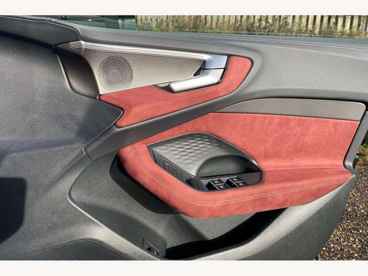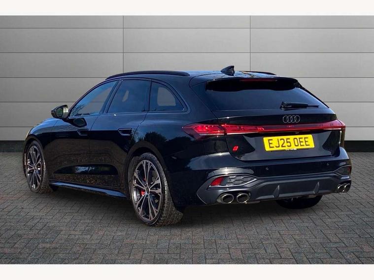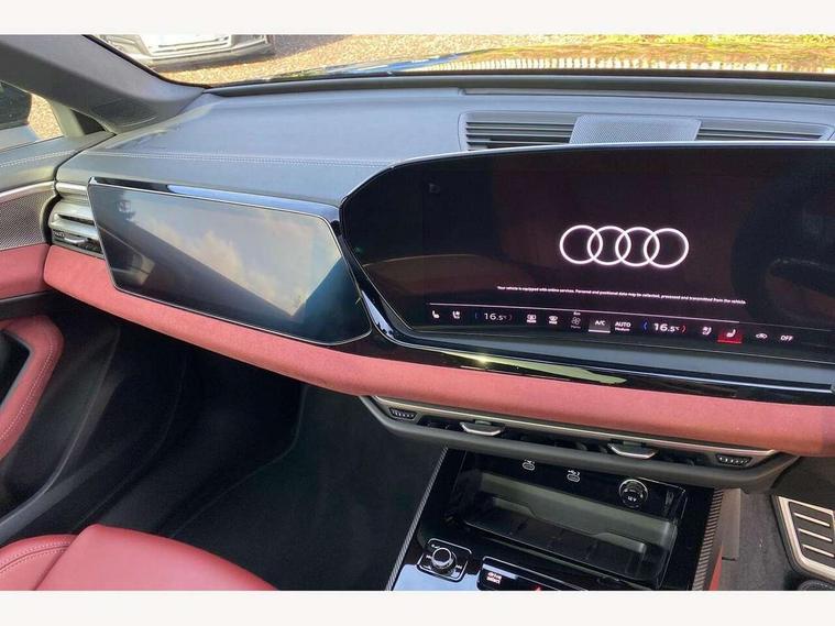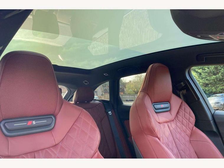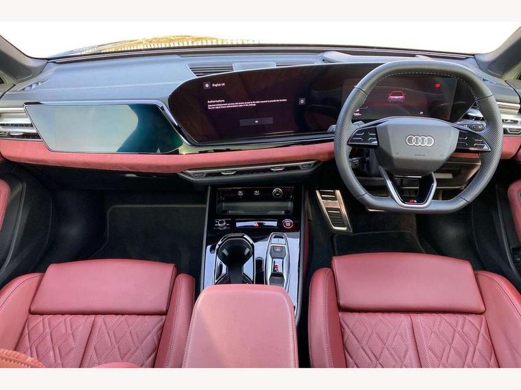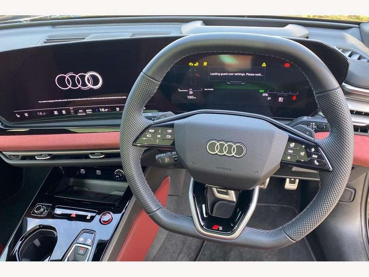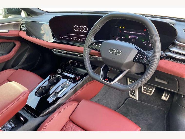 Adaptive cruise assist plus with steering intervention, Advanced driver attention and fatigue montior, Audi application store, Audi assistant, Audi connect emergency call and service, Audi drive select, Audi smartphone interface, Audi virtual cockpit plus with 11.9" OLED colour display, Automatic start/stop system with coasting functionality, Camera based traffic sign recognition, Garage door opener, Intersection assist, Lane change assistant with exit warning system, rear cross traffic alert and rear turn assist, Lane departure warning with emergency assist, MMI 10.9" front passenger touch display, MMI navigation plus with high resolution 14.5" OLED touchscreen colour display, Park assist plus, Parking system plus with 360 display, Progressive steering with servotronic, Swerve assist and turn assist, Top view camera, Traffic sign based speed limiter, Quattro with sport differential, S sports suspension with damper control lowered by 20mm, 2 USB-C ports in both the front and rear, DAB digital radio reception, Smartphone compartment with wireless charging, Aluminium window trims, Auto dimming rear view mirror, Black door handles, Black roof rails, Dark chrome-plated tailpipe trims, Digital OLED tail lights including communication light, Door mirrors - electrically adjustable, heated, folding and auto dimming on both sides, Front and rear electric windows, Front door sill trims with aluminium inlays, illuminated with 'S' logo, Headlight cleaning system, High beam assist, LED daytime running lights, LED third brake light, Matrix LED headlights with eight light signatures selectable via the MMI or the myAudi app, Panoramic glass roof with switchable transparency, Privacy glass, Rear and side windows with heat insulating glass, Rear side wing doors, Rear wash/wipe, Red S rhombus badging with S lettering on rear, S bumpers, radiator grille and diffuser in titanium matt black and diffuser insert in matt silver, White rhombus logo projection light in exterior mirrors, Windscreen with acoustic glazing, 3 rear headrests, 3 seat rear bench, 3 spoke leather steering wheel with multi-function buttons with touch control, flattened on top and bottom, with S badging and contrast stitching, 3-zone automatic climate control, 40:20:40 split folding rear seat bench with centre armrest and cup holders, Comfort front centre armrest, Electric steering wheel adjustment, Electrically adjustable front seats, Front and rear floor mats, Front sport seats plus with integrated headrest and S embossed logo, Headlining in black cloth, Heated front and outer rear seats, Heated steering wheel, i-Size child seat mounting on the front passenger side and outer rear seats, i-Size and top tether on the outer rear seats, Luggage compartment lid, electrically opening and closing, Memory function for driver seat, Pearl Nappa leather upholstery, Pneumatically adjustable lumbar support, Single front passenger seat, Stainless steel pedals and footrest, Steering wheel grips in perforated leather and shift paddles, Ventilation seat and massage function for the driver and front passenger, Black styling package plus - A5, Sound and vision pack - A5, 3x3 point rear seat belts, Acoustic vehicle alerting system, Convenience key with safelock, Driver airbag, Electric child safety locks, First aid kit with warning triangle and vests, Front emergency brake assist, Front passenger airbag, Front passenger airbag deactivation, Hill hold assist, Occupant detection in rear seat area, Proactive passenger protection system for front, sides and rear, Red brake calipers, Seat belt monitoring with rear seat occupant reminder, Side airbags in front and rear with head airbag system and front interaction airbag, Tyre pressure loss indicator, Anti theft alarm, Anti-theft wheel bolts, Keyless Go, Accent surfaces and control buttons in gloss black, Black dashboard with contrast stitching, Softwrap in Dinamica with contrast stitching, Upper and lower interior elements in dinamica microfiber, 20" 5 twin spoke design Audi Sport alloy wheels in metallic black and gloss turned finish, Tyre repair kit,