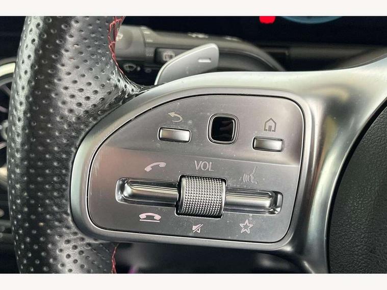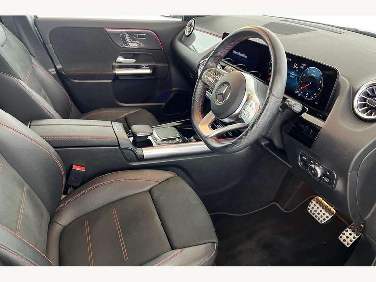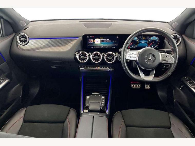 10.25 inch touchscreen central media display, 10.25" Digital instrument cluster display screen, Active lane keeping assist, Attention assist, Direct steering, DYNAMIC SELECT with a choice of driving modes (ECO, Comfort, Sport and Individual), ECO start/stop function, Fluid level warning indicator for fuel, oil, coolant and washer fluid, Hard-disk navigation, Hey Mercedes Voice activation, Lamp failure indicator, Mercedes me connect including emergency call system, accident recovery, breakdown and maintenance management, Mercedes me remote services, Multi function trip computer, Outside temperature gauge, Owners manual and service booklet in English, Pre-installation of private car share, Radio aerial integrated into front and rear windshields, Service indicator (ASSYST), Smartphone integration with Apple CarPlay and Android auto, Status display for rear seat belts in instrument cluster, Traffic sign assist, Lowered comfort suspension, Rear axle multi-link, 2 USB ports (type C) in rear stowage compartment and one in front of center console, Bluetooth connectivity including audio streaming, DAB Digital radio, MBUX multimedia system, Media interface, Mercedes-Benz sound system - 100W, Adaptive brake lights, Aerial for GPS, Aluminium roof rails, AMG front and rear apron, AMG specific/dual flow exhaust pipes in chrome (non-functional), Automatic headlamp activation, Beltline strips and weather strip in chrome, Black grained claddings with chrome parts, Body colour bumpers, Body colour door mirrors, Body coloured door handles with chrome insert for keyless entry, Car wash function, Dark privacy glass from B-pillar backwards, Electric front windows, Electric rear windows, Electrically adjustable and heated door mirrors with integrated LED indicators, Heated glass rear windscreen + timer control, Heated windscreen wash system, Interior mirror with black reading lamps and frameless, LED third brake light, Matt titanium grey front and rear apron trim, Multibeam LED headlamps with adaptive highbeam assist and cornering function, Panoramic sunroof, Pre-installation for trailer coupling, Rain sensor windscreen wipers, Rear fog lights, Roof spoiler, Single lamella raditor grille with chrome dotted diamond grille and inlay, 12V power socket in centre console, 3 spoke multifunction sports steering wheel in nappa leather with flattened bottom and perforated grip area, 40:20:40 split folding rear seat backrests, Adjustable head restraints, Air conditioning - Two zone thermotronic luxury automatic climate control with display, Ambient lighting in front headrests, AMG floor mats with AMG lettering and stiched edging, Artico man-made leather/Microfibre Dinamica upholstery with red contrast stitching, Auto Mercedes-Benz child seat recognition sensor, Black roof lining, Brushed door pulls in silver chrome, Courtesy light in boot, Electrically adjustable front memory seats with four way lumbar support, Front centre armrest with stowage, Galvanished gear shift paddles on steering wheel, Heated front seats, illuminated door sills with changeable cover, Illuminated glovebox, Interior lighting - 64 colour Ambient lighting, Leather trimmed gearknob, Luggage net on driver/front passenger seat backrest, Manually height and reach adjustable steering column, Multi-gesture touchpad control on center console, Sports pedals in brushed stainless steel with black rubber studs, Sports seats, Stowage compartment in centre console, Stowage compartment with retractable cover, Sunvisors with illuminated vanity mirrors, Twin front cup holders, Two outer rear seat isofix and top tether child seat fixing points, AMG body styling pack - GLA, Interior lighting with light and sight pack - GLA, Load compartment pack - GLA, Mirror pack - GLA Class, Parking pack - GLA, 3 rear 3 point seatbelts, ABS with Brake Assist, Active bonnet pedestrain safety measure which detects an impact and raises bonnet by 65mm, Active brake assist includes forward collision warning system with autonomous braking, Adaptive brake assist with hold function and hill start assist, Bonnet with power domes, Brake pad wear warning indicator, Childproof locks manually operated for rear doors and electrically operated for rear power windows, Crash responsive emergency lighting, Driver and passenger head and side airbags, Drivers knee airbag, Dual stage driver/passenger airbags, Electronic parking brake, ESP curve dynamic assist, ESP with ASR, Front and rear seatbelt reminder, Front brake callipers with Mercedes Benz logo lettering on front, Front brake discs internally ventilated and perforated, Front passenger seat occupancy sensor, Tyre pressure monitoring system, Warning triangle and first aid kit, Window airbags, Alarm system with immobiliser and interior protection -Thatcham category 1, Keyless Go starting function, Remote central locking and crash sensor with emergency opening function, Urban guard vehicle protection, Vehicle key with decorative surround in chrome, Carbon structure trim, Chrome air vent surrounds, 19" AMG 5 twin spoke light alloy wheels aerodynamically optimised painted in tantalite grey with a high sheen finish, Summer tyres, Tirefit tyre sealant kit,