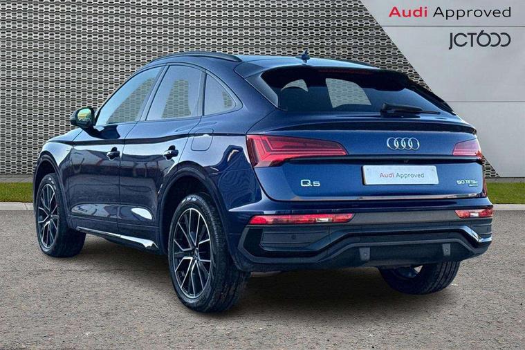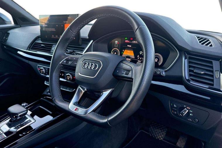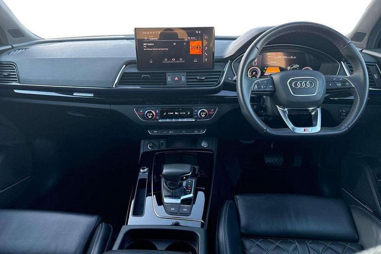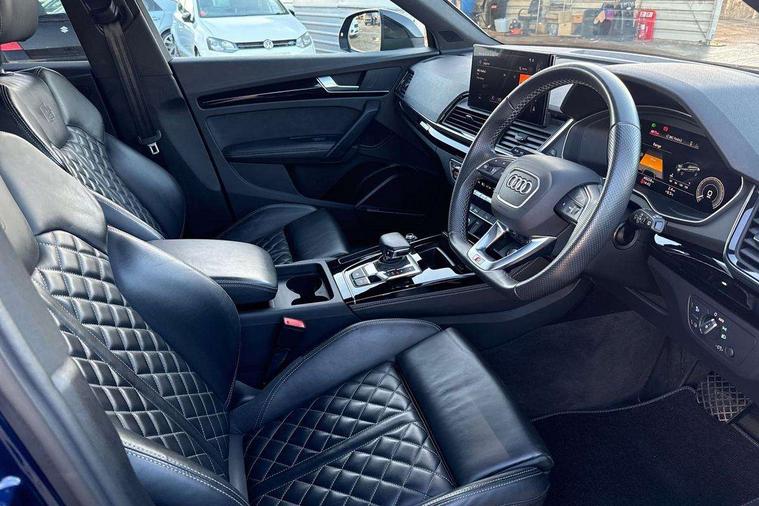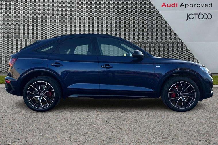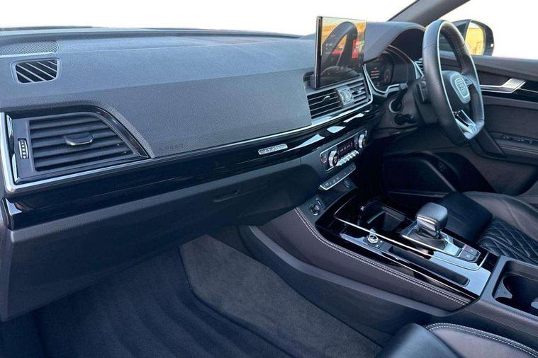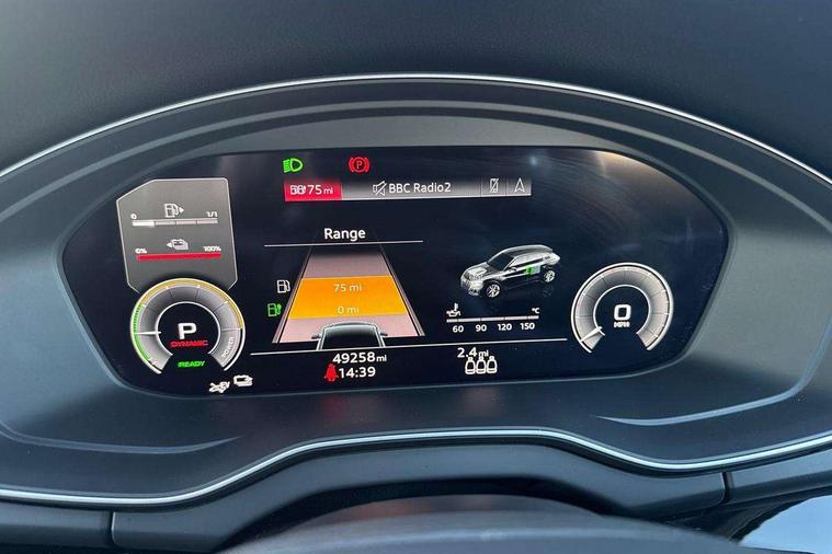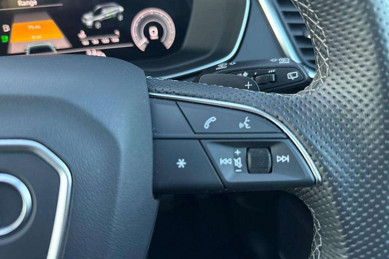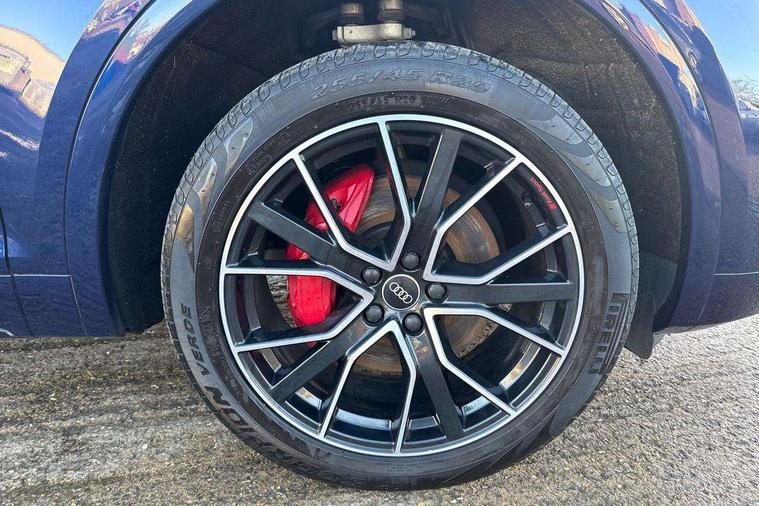 Acoustic front and rear parking sensor, Audi connect safety and service (e-call), Audi connect with Amazon Alexa Integration, Audi drive select, Audi virtual cockpit with 12.3" screen with specific display, Audi wireless smartphone interface, Automatic start-stop system with coasting functionality and efficiency programme, Bluetooth interface, Electro - mechanical power assisted steering, MMI navigation plus with 10.1" touch screen, Power tailgate, Reversing camera, Service interval indicator, Voice control system with Audi hotword activation "Hey Audi", 3 pin 10 amp domestic charging cable, 7.4 kW onboard charger, Dynamic suspension, Industrial connector CEE 32A, 230V, Quattro on demand, Type 2 mode 3 22kW 32 amp charging cable, Type 2 socket for AC charging, 2 x USB charging port with aux input socket, 8 loudspeakers, DAB Digital radio, Acoustic windscreen, Audi matrix LED headlights with dynamic front and rear indicators, Auto dimming door mirrors, Auto dimming frameless rear view mirror, Automatic headlight adjustment, Automatic headlights and windscreen wipers, Black roof rails, Body colour bumpers, Body colour underbody protection, Chrome plated exhaust trims, Daytime running lights, Door sills in Selenite silver, Electric adjustable/heated/folding door mirrors, Front air inlet surrounds in anthracite black, Front and rear electric windows, Headlight washers, High gloss black B pillar trims and triangular rear door trim, High level LED brake light, Rear chrome trim strip below lights, Rear privacy glass and rear side windows, Rear side wing doors, Rear spoiler, Rear wiper, Roof bars, 3 rear headrests, 3 seater rear seat bench, 4 way electric lumbar support for driver and front passenger, Black cloth headlining, Comfort front centre armrest, Contrast stitching on seats, steering wheel and gear lever gaiter, Deluxe 3 zone electronic climate control, Electrically adjustable front seats, Fine Nappa leather upholstery with diamond pattern contrast stitching + front sport seats with S embossed logo, Front/rear floor mats, Gear lever in black leather, Heated front seats, Height adjustable front head restraints, Height/reach adjustable steering column, Illuminated door sill trims with S logo, Rear seat bench plus-adjust for forwards/backwards position/backrest angle, cupholders in the armrest, load through hatch and remote backrest release, Single front passenger seat, Sunvisors with vanity mirrors, Trunk roller cover, Black styling package - Q5 Edition 1, Extended interior upholstery pack - Q5, Extended LED Interior multi coloured Lighting Pack - Q5, 3 point seatbelts on all seats, 6 airbags - Driver, front passenger, curtain and side airbags, Electrically operated child locks on rear doors, Electromechanical parking brake, Electronic stabilisation control including ABS, ASR and EDL, First aid kit with warning triangle and vests, Front and rear brake calipers painted in red, Front passenger airbag deactivation, Hill descent control, Hill hold assist, ISOFIX child seat mounting for front passenger seat and ISOFIX child seat mounting with Top Tether for outer rear seats, Multi collision brake assist, Pop-up bonnet for pedestrian protection, Pre sense city, Seat belt force limiter, Seatbelt monitoring, Tyre pressure warning, Anti theft alarm, Anti-theft wheel bolts, Keyless Go access/ignition system, Remote central locking, Air vents inserts and centre console in gloss black, Piano black finish inlay, Tool kit, Tyre repair kit,