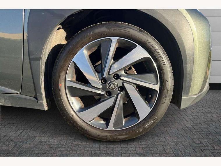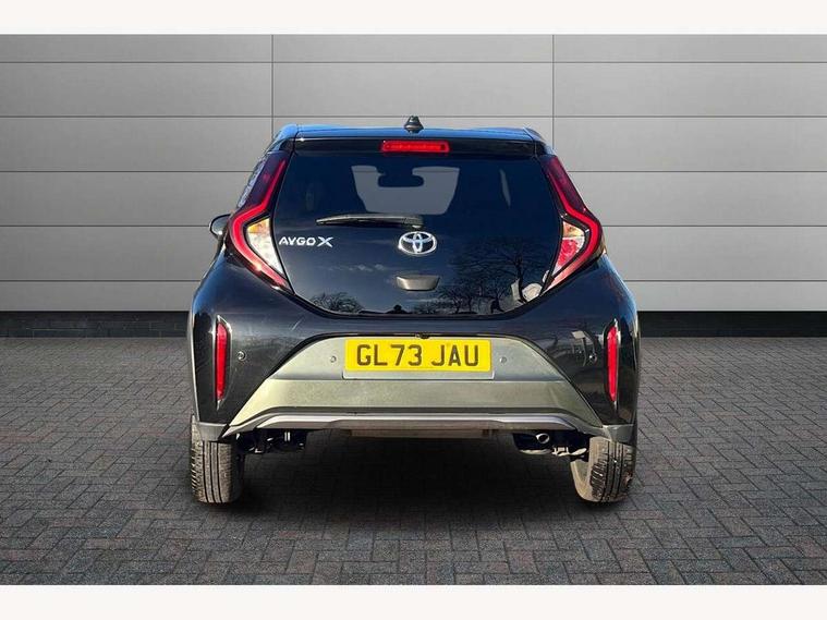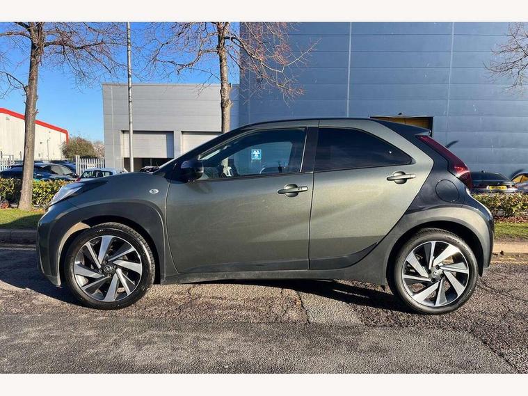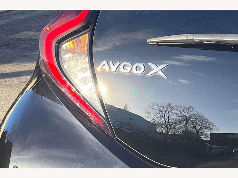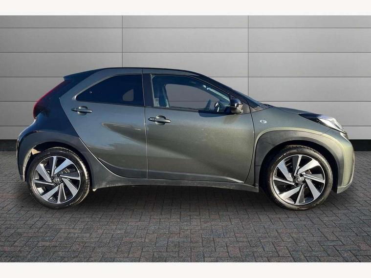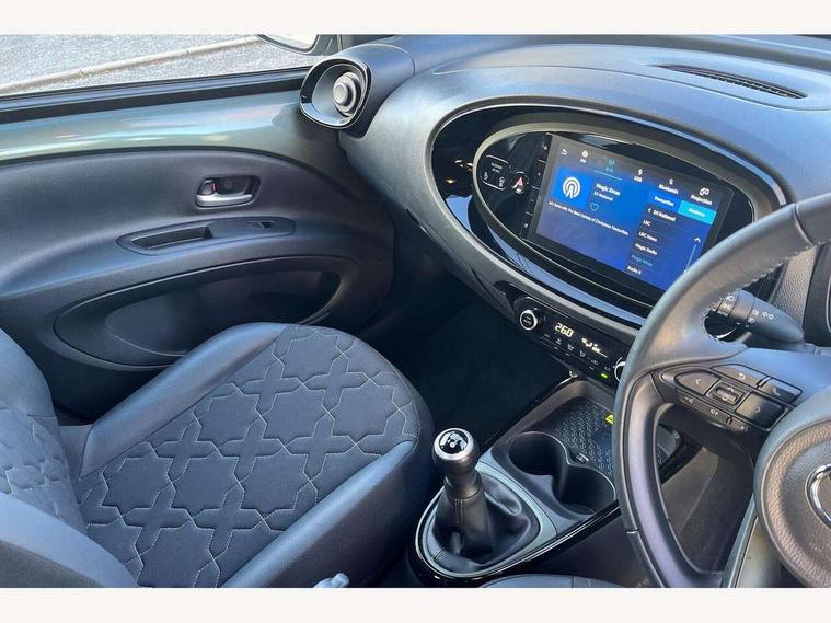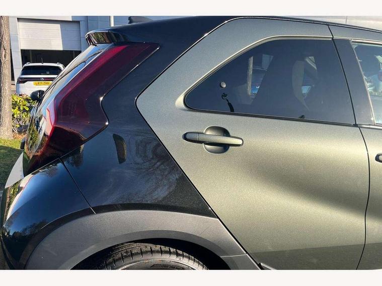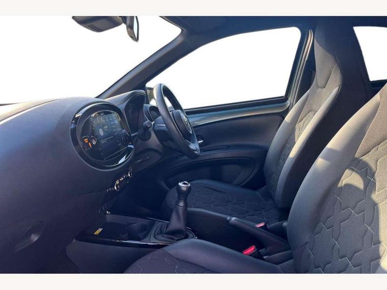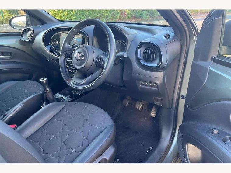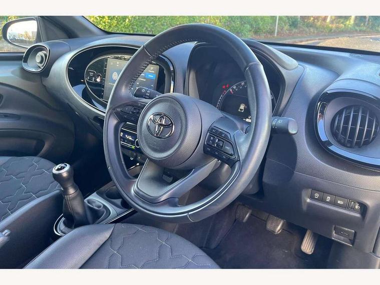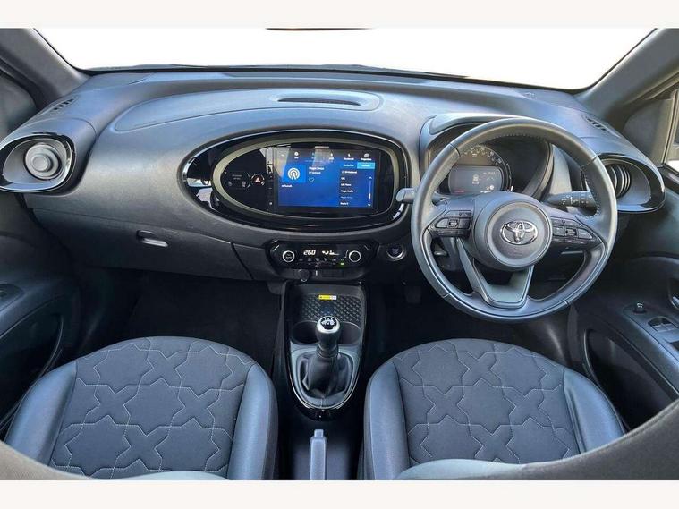 4.2" TFT colour screen, Adjustable speed limiter, Analogue speedometer, Bluetooth connectivity, Digital tachograph, Driver attention alert system, eCall emergency call system, Electric power steering, Front and rear parking sensors with auto brake, Intersection turn assist, Key reminder warning, Noise reduction kit, Pre collision system with emergency steering assist, Remote boot door release on key, Reversing camera with static guide lines, Smart entry and push button start, Smart phone integration with Apple car play/Android Auto, Speed limit display, Start and stop, Wireless charger, Vehicle Stability Control (VSC), 10.5" HD multimedia display touch screen with Toyota smart connect, 4 speakers, DAB digital audio broadcast, USB connector, Auto headlights, Auto wipers, Automatic headlights cut-off, Automatic high beam On/Off switch, Bicycle towing hook, Black contrast roof, Black fog light surrounds, Black side protection mouldings, Black wheel arch mouldings, Body colour door handles, Body coloured front bumper, Boot door scuff plate, Eclipse black rear bumper, Electric heated door mirrors, Follow me home headlights, Front and rear underruns in silver, Front fog lights, Front power windows, Gloss black door mirrors, Gloss black upper front grille, Headlight cut-off reminder, LED daytime running lights guide, LED front light guide, LED High mounted stop lamp, LED projector headlights, Manual day/night rear view mirror, Manual headlight levelling, Pagoda roof, Power adjustable door mirrors, Power back door, Privacy glass, Rain sensor, Rear combination lights LED bulb type, Rear side wing doors, Rear windscreen defogger, Rear windscreen wiper, Remote hazard lights system, Short antenna, Variable intermittent windscreen wipers, 12v power outlet - front, 2 seat bench in 2nd row, 3 spoke leather steering wheel, 50/50 split folding rear seat, Adhesive roof headlining, Adjustable speed limiter switch on steering wheel, Audio and telephone switches on steering wheel, Auto air conditioning, Black roof lining, Body colour satin anodised insert on steering wheel, Boot light, Centre room light, Chrome interior door handles, Chrome surround on air conditioning buttons, Clean air filter, Console box storage, Floor mats, Front and rear cup holders, Front head rest deco art, Front head restraints, Height adjustable driver seat, Intelligent adaptive cruise control switch on steering wheel, ISOFIX child restraint system on rear seats, Lane departure alert switch on steering wheel, Leather gearshift knob, Light blue ambient lighting in centre console, Manual tilt steering wheel, Manually reclining and sliding driver seat, Manually reclining and sliding front passenger seat, Multimedia switches on steering wheel, Partial synthetic leather upholstery, Pollen filter, Rear door pockets, Rear head restraints, Satin silver insert on gear shift knob, Single compartment glovebox with lights, Single front passenger seat, Soft tonneau cover, Sun visors with mirror on driver and passenger side, Voice recognition switch on steering wheel, Toyota safety sense pack - Aygo X, Anti lock braking system + Electronic brake force distribution, Child safety door lock, Emergency brake light signal (EBS), Hill start assist control (HAC), Passenger airbag on/off switch, Seat belt reminder for front and rear seats, Supplement restraints system (SRS) - 6 airbags, Traction control, Tyre pressure warning system, Immobiliser, Remote power door locks, Black wheel centre caps, Tyre repair kit,