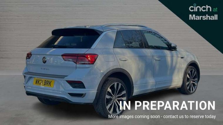 'Lights On' Reminder warning buzzer, Adaptive cruise control with front assist, radar sensor controlled distance monitoring, city emergency braking, Automatic start/stop system, Bluetooth telephone and audio connection for compatible devices, Car information display, Digital Cockpit Pro - Active info display, Discover navigation including 8" touch screen display, streaming and internet, Driver alert system with audible and visual fatigue detection system, Driver tips and journey analysis, Lane assist with warning text instrument cluster, Modified key software - reduce switch off time for key status change to Long no motion, Multifunction computer with visual gear change recommendation for fuel consumption, Service interval indicator, Think blue trainer driver tips and journey analysis, Voice activation, Wireless app connect for apple carPlay, Battery regeneration during braking, Centre arm rest including USB type C interface and USB charging socket, DAB Digital radio, Diversity antenna for FM reception, Front USB type C Interface 2X and USB charging socket, Music playback - MP3, WMA and AAC files, Premium USB cable in choice of either Apple or Android smartphone compatibility, SD card slot, Simultaneous pairing of 2 compatible mobile devices, SMS functionality - read, compose and send SMS messages using touch-screen display, Storage compartment with longitudinal and height adjustable in armrest and two rear air vents, Three route options - Fast, Short, Eco, Title and cover art display, Auto dimming interior rear view mirror, Automatic hazard lights activation under emergency braking, Black grained lower door protectors, Body colour door handles, Body colour rear roof spoiler, Chrome effect left and right trapezoid exhaust tailpipe fascia surround, Chrome trim on upper and lower radiator grille, Dusk sensor, Electrically foldable, adjustable and heated door mirrors with puddle lights and reverse activated kerb-view adjustment on passenger's door mirror, Front and rear electric windows, Front fog lights with static cornering function, Front windscreen wiper with intermittent wipe and 4 position delay, Fully galvanised body, Heated rear window, High level 3rd brake light, LED darkened rear light clusters, LED dipped and main beam headlights with automatic range adjustment including signature LED daytime running lights, LED rear number plate lights, Manual coming/automatic leaving home lighting function, Rain sensor, Rear tinted glass from B-pillar backwards approx 65% tinted, Rear wash/wipe with intermittent wipe setting, Volkswagen roundel, 2 Front and rear reading lights incorporating LED technology, 3 rear head restraints, 4 load lashing points in luggage compartment, Aluminium pedals, Ambient lighting in front footwell and light strips below trim in front doors, Black roof lining and sun visors, Branded points of interest, Carbon flag cloth upholstery, Climate control - 2 zone electronic air conditioning with automatic air recirculation and allergy filter, Drawer under drivers seat, Front + rear carpet mats, Front cupholders x 2, Front seat back storage pockets, Front sports seats with R-Line logo on seat backrest, Glovebox, Height adjustable front seats, Height/reach adjust steering wheel, Illuminated vanity mirrors, Instrument lighting, white adjustable panel illumination, Interior light delay, Isofix easy fit child seat preparation for 2 outer rear seats, Load through provision with single cup holder when folded down, Luggage compartment cover, removable, Luggage compartment lighting, R Line badge, Split folding rear seat backrests with centre armrest, Storage compartment in left and right luggage area, Storage compartment in rear doors, Storage compartments in driver and front passenger doors, Three spoke multi-function leather trimmed steering wheel and gearknob, Unique R Line door sill protectors, R line styling pack - T-Roc, Winter pack - T-Roc, 3 rear three point seatbelts, ABS, Curtain airbags, Driver and front passenger safety-optimised head restraints, Drivers and front passengers airbags with passengers deactivation switch, Drivers seatbelt reminder, Electronic parking brake with auto hold, Electronic stability control (ESC) includes ASR, EDL, EDTC and trailer stabilisation function, Front seat side impact airbags, Predictive pedestrian protection, Rigid safety cell with front and rear crumple zones, Three point height adjust front seatbelts + pretensioners, Tyre pressure loss indicator, Ventilated front and rear disc brakes, Volkswagen roadside assistance, Alarm with remote central locking and interior protection, Electronic engine immobiliser, Remote central locking with 2 remote folding keys, Shadow grey decorative inserts in dash and door panel, 19" Suzuka alloy wheels with low rolling resistance tyres and anti wheel bolts,