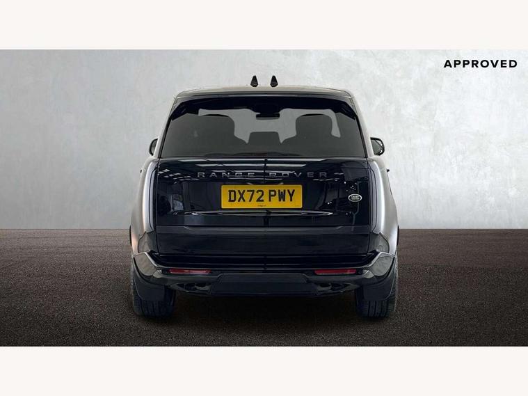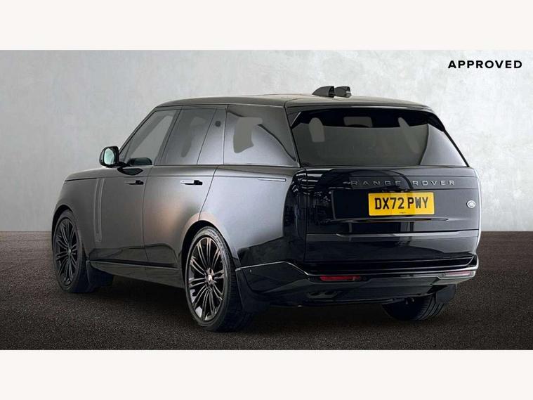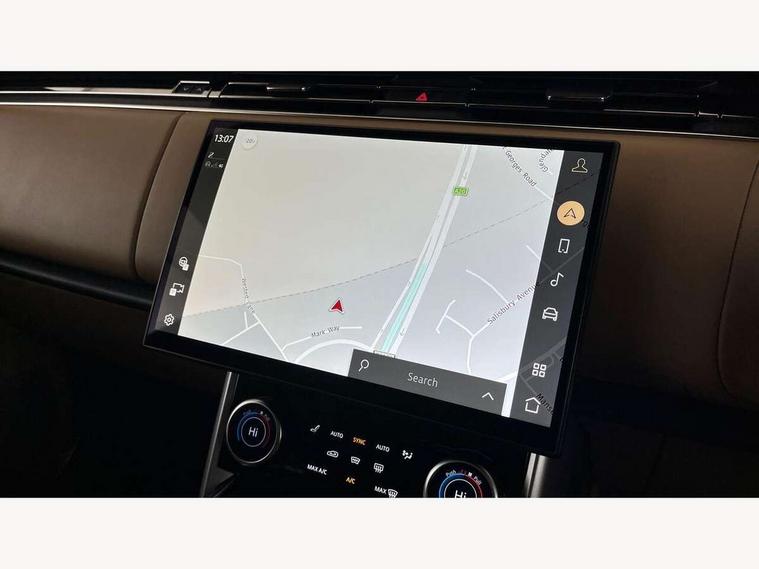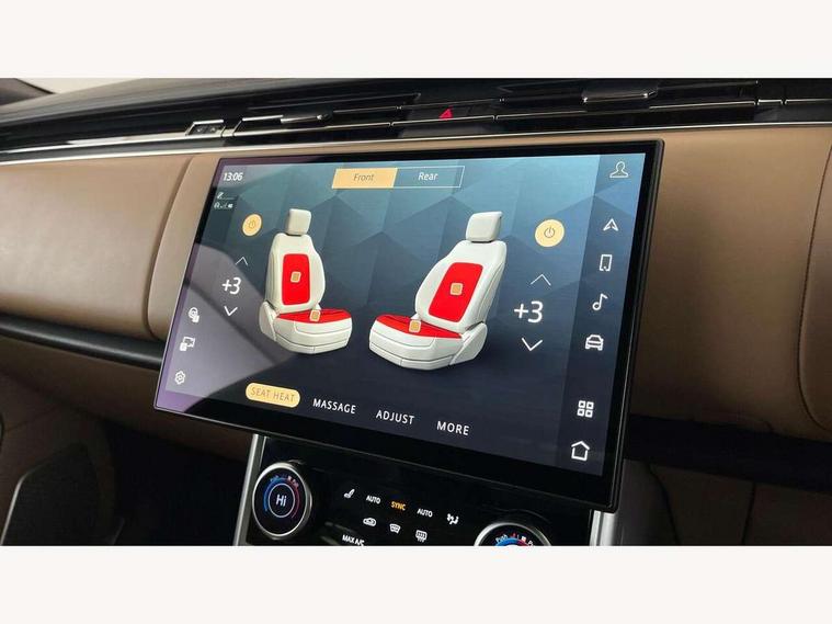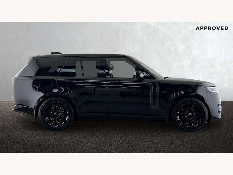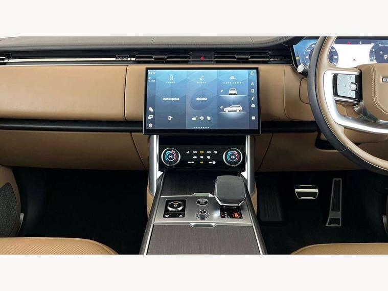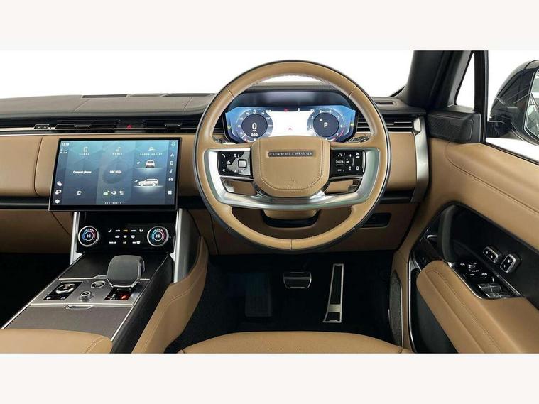 13.1" Touchscreen, 3D surround camera inc frwd traffic detection, vehicle clearance guidance, 3D view, clearsight ground view, manoevure light, 360 parking aid, wade sensing, Adaptive cruise control with steering assist, All Terrain Info Centre, All wheel steering, Android Auto, Apple car play, Blind spot assist, Bluetooth connectivity streaming, Configurable programs, Driver condition response, Eco mode, Electric power assisted steering (EPAS), Emergency call service, Front and rear parking aid, Head up Display, Interactive driver display, Lane keep assist, Occupant protection assist, Powered gesture tailgate/boot lid, Rear collision monitor, Rear traffic monitor, Remote, Traffic sign recognition with adaptive speed limiter, Wi-Fi Enabled with data plan, Wireless device charging with phone signal booster, 8 speed automatic transmission, Active damper technology system, Adaptive dynamics, All terrain progress control, All Wheel Drive (AWD), Automatic access height, Electronic active differential with torque vectoring by braking, Electronic air suspension with dynamic response, Terrain Response 2 Auto, Twin speed transfer box, Digital Audio Broadcast radio-DAB, Meridian 1600W signature sound system, Pivi pro including smart settings, Connected navigation pro, nuance speech, USB socket, Acoustic laminated windscreen, Animated directional indicators, Automatic headlights, Automatic levelling headlights, Centre high mounted stop light, ClearSight interior rear view mirror, Electric windows with one touch open/close and anti trap, Electrical towing preparation, Flush deployable exterior door handles, Front and rear recovery eyes, Front fog lights, Headlamp power wash, Heated rear window, Heated washer jets, Illuminated metal tread plates with Autobiography script, Laminated front and rear side glass, LED tail lights, Power fold, auto-dimming, heated door mirrors with approach lights, Rain sensing windscreen wipers, Rear boot, Rear fog lights, Rear side wing doors, Rear wash/wipe, Side repeater indicators in mirror, Solar attenuating windscreen, Trailer stability assist, Winter wiper park position, 12V power sockets, 3 seat bench in 2nd row, Air quality sensor, Auto folding loadspace cover, Bright metal pedals, Cabin air purification pro, Cabin lighting, Customer configurable single point entry, Driver and passenger front seat armrests, Easy boot loading, Ebony Carpet, Electric rear side window sunblinds, Four zone climate control, Front and rear cupholders, Front and rear grab handles, Front head restraints, Gearshift paddles, Heated steering wheel, Hook in load space, Loadspace light, Luggage tie down in loadspace, Multifunction steering wheel, Rear centre armrest, Rear head restraints, Rear ISOFIX, Single front passenger seat, SV bespoke carpet mats, Twin blade sunvisors with Illuminated vanity mirrors, Upper and lower glovebox, Versatile loadspace floor in tailgate, Online pack with data plan - Range Rover, 3x3 point rear seat belts, Anti-lock braking system (ABS), Black brake calipers, Brake hold function, CBC - (Cornering brake control), Customer configurable autolock, DSC - Dynamic Stability Control, Electronic brake force distribution, Electronic parking brake, Electronic traction control, Emergency brake assist, Emergency braking, Front airbags with passenger seat occupant detector, Front side airbags, Hill descent control, Hill launch assist, Illuminated seat belt buckles, Low traction launch, Power operated child locks, Roll stability control, Tyre pressure monitoring system (TPMS), Immobiliser, Intrusion sensor and alarm, Keyless entry, Locking wheel nuts, Remote central locking, Noble chrome controls,