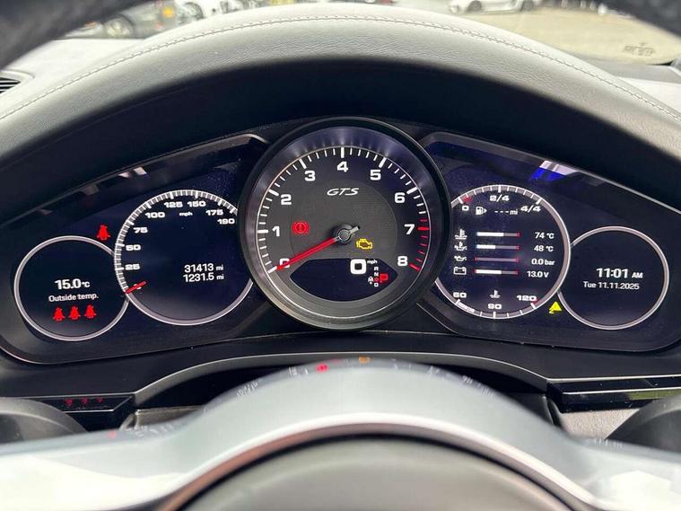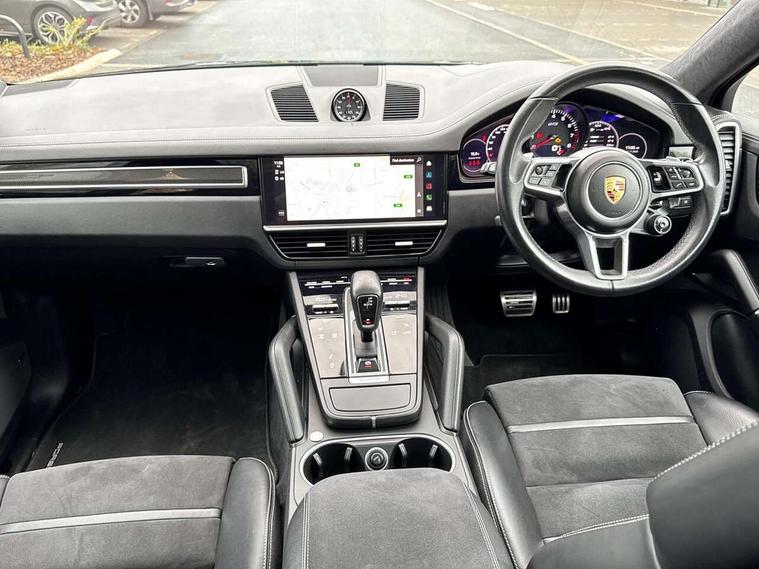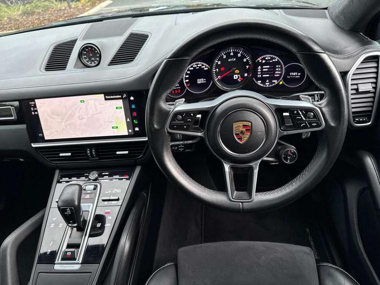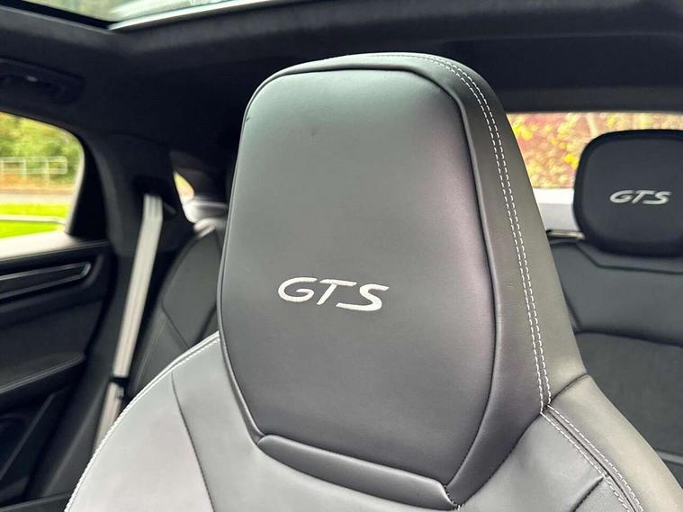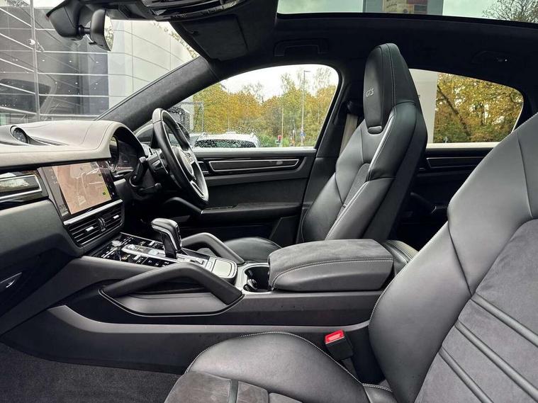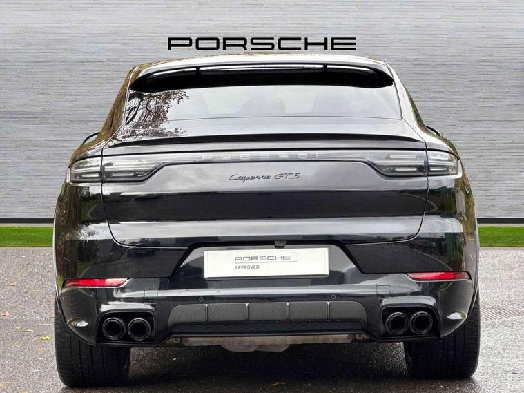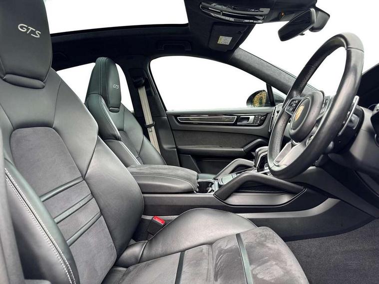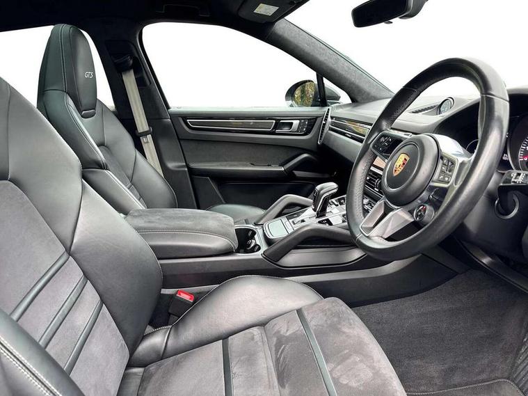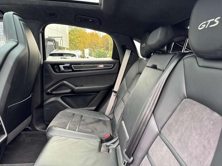 Android Auto, Apple car play, Auto start/stop function and coasting, Brake pad wear indicator, Central analogue rev counter with black dial face and GTS logo, Driver personalisation for climate, audio and communication, assistance systems and other customisable car systems, E-call, High resolution 12.3-inch touchscreen display in full HD resolution, Individual mode for individual selection of vehicle drive settings, Instrument cluster with two high-resolution displays, Mobile phone preparation with Bluetooth interface for telephone and music, Porsche Communication Management (PCM) including online navigation module, mobile phone preparation, audio interfaces and voice control system, Power steering plus, Power tailgate, Vehicle electrical system recuperation, Warn and brake assist including pedestrian protection, 8 Speed Tiptronic S transmission with auto Start-Stop and coasting function, 90 litre fuel tank, Adaptive cylinder control, Aluminium cylinder heads and engine block, Direct fuel injection (DFI) with central injector position, Front and rear aluminium multi link axles, Gasoline particulate filter, Panoramic roof with fixed glass panel, Porsche Torque Vectoring Plus (PTV Plus), Sport mode, Turbocharger with twin scroll turbine, VarioCam, Water cooled with thermal management, AM radio, Digital radio, Two USB charge ports in rear compartment, Two USB charging and connectivity ports in the front centre console storage compartment, Active air intake flaps, Automatic headlight activation including welcome home functionality, Bumper system with high strength cross members and two deformation elements + Two receptacles with screw threads towing lug + onboard tool kit, Door lower cladding trim in exterior colour, Electric windows + anti trap protection + one touch open/close drivers side, Electrically adjustable, folding and heated exterior mirrors, aspherical on drivers side including courtesy lights, Exclusive tinted LED tail lights with three dimensional lighting graphic including light strip and integrated four point brake lights, Extensive aerodynamic underbody protection, Exterior colour door side trim, Four point signature LED daytime running lights, Front end with integrated air intakes and airblades for the side air intakes, Front light modules including position lights and direction indicators in LED light guide technology, Front windscreen wipers with two speeds, intermittent wipe and rain sensor, Gloss black side window trims, Heated rear window with automatic switch off, LED High level third brake light integrated into roof spoiler, Porsche active aerodynamics (PAA) with adaptive roof spoiler, Porsche logo and cayenne GTS model designation on tailgate in matt black, Porsche logo integrated into rear taillight strip, PORSCHE' lettering integrated in tailgate strip, Preparation for the roof transport system, Rear apron lower cladding painted in exterior colour, Rear side wing doors, Rear window wiper with intermittent function and washer jet, 2 seat bench in 2nd row, Alcantara roof lining, B-pillar clothes hooks on driver and passenger's side, Charge air cooling, Double sun visors for driver and front passenger, Driver/passenger sunvisors and vanity mirrors, Elevated centre console with handles, Front and rear bottle holders in door panels, Front head restraints, GTS logo on door sills front, left and right in black, GTS logo on front door lower trim in black, GTS model logo on headrests front and rear in conjuction with GTS sports seat interior, GTS sports design in bench rear seat with 2 comfort outer seat, third centre seat + 2 way headrest on outer seat, manual fore/aft, backrest angle adj, Height adjustable rear headrests, Isofix fastening system for child seats on outer rear seats, LED interior light with switchoff delay function, footwell + glove compartment light, ashtray + ignition lock illumination, front + rear reading light, Manual height adjust for driver and front passenger seat belt, Particle/pollen filter with active carbon filter, Rear seat split folding design 40:20:40, Fold out centre armrest with integrated cup holder, manual fore/after adjust and backrest angle adjust, Rigid integrated and removable parcel shelf, Sideskirts in black plastic, Single front passenger seat, Stainless steel pedals, Storage compartments - Cooled glove compartment, front centre console, door and map pockets on front seat backrests + side luggage compartment, Three 12V power sockets - front below the glove compartment, centre console and at side of luggage compartment, Two integrated cup holders in front and rear with variable diameter, Sport design package - Cayenne, 3 point automatic seatbelts with front and outer rear seats pretensioners and front force limiter, 4 piston aluminium monobloc fixed caliper brakes at rear and internally vented brake discs, 6-piston aluminium monobloc fixed caliper brakes at front, internally vented brake discs, Active bonnet, Auto hold function, Brake discs with diameter 390mm at front 358mm at rear, Curtain airbags along roof frame and side glazing from the A-pillar to the C-pillar, Distance warning, Electronic parking brake, Front passenger airbag deactivation function for front seat mounting of child seat, Front side airbags integrated into seat, Full size driver and front passenger airbags, Knee driver and passenger airbags, Manual child lock in rear doors, Mounting points on passenger seat for ISOFIX child seat mounting system, Multi-Collision braking, Porsche hill control (PHC), PTM Porsche Traction Management active all-wheel drive with an electronically variable, map-controlled multi-plate clutch, ABD and anti-slip regulation, Rollover detection for activation of curtain airbags and seat belt pretensioners, Seat belt warning system for driver and front passenger and rear seat system, Side impact protection in doors, Tyre pressure monitoring system, Vehicle stability system, Porsche stability management (PSM) including ABS, ASR, ABD, MSR and