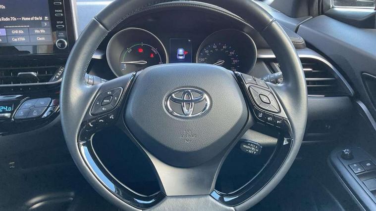 4.2" coloured TFT screen for multi-information display, Adaptive cruise control, Bluetooth connectivity, E-call, Electric power steering, Hybrid system indicator, Lane departure alert with steering control, Lane trace assist, Push button start, Push button tailgate release, Remote boot door release in cabin, Remote boot door release in key, Reversing camera, Road sign assist - RSA, Smart voice assist, Trip computer, Voice recognition, Vehicle Stability Control (VSC), 6 speakers, AM/FM radio, DAB Radio (Digital Audio Broadcasting), Toyota touch 2 multimedia system with 8" display, USB connector, Wi-fi connectivity, Anti-jam protection on power windows, Auto high beam, Auto up and down function on all power windows, Automatic headlights, Automatic headlights cut-off, Black and body coloured rear bumper, Black lower front grille, Black upper front grille, Body colour door handles, Body colour door mirrors, Body colour front spoiler lip, Body coloured front bumper, Boot door release with push button, Electric heated door mirrors, Follow me home headlights, Front and rear power windows, Front fog lights, Headlight cut off reminder, Honeycomb lower front grille, LED daytime running lights, LED High mounted stop light, LED rear brake lights, LED rear combination lights, Manual headlight levelling, Manually retractable door mirrors, Noise reduction layer on front windows and windscreen, Power adjustable door mirrors, Rear side wing doors, Rear spoiler, Rear tailgate, Rear window defogger, Rear window wiper, Reflective LED headlights, Shark fin antenna, UV-filter on driver and passenger windows, UV-filter on rear windows, 12v power outlet - front, 3 rear headrests, 3 seat bench in 2nd row, 3 spoke leather steering wheel, 60/40 split folding rear seat, Adjustable rear headrests, Adjustable speed limiter switch on steering wheel, Assist grips front and centre pillar, Audio and telephone switches on steering wheel, Black front door assist grips, Boot light, Chrome interior door handles, Cloth upholstery, Driver and front passenger personal light, Driver and front passenger Whiplash Injury Lessening seats, Dual zone automatic air conditioning, Floor mats, Front cupholders, Front head restraints, Front sports seats, Glovebox with internal light, Hard tonneau cover, Hooks for luggage holding net, Humidifying Nanoe air purifier, Illuminated entry system, Isofix attachments on outer rear seats, Leather gearshift, Light on driver sun visor, Light on passenger sun visor, Manual telescopic steering wheel, Manual tilt steering wheel, Manually adjustable lumbar support on driver seat, Manually height adjustable driver seat, Manually height adjustable front passenger seat, Manually reclining driver seat, Manually reclining front passenger seat, Manually sliding driver seat, Manually sliding front passenger seat, Microphone on front personal light, Mirror on driver sun visor, Mirror on passenger sun visor, Multimedia switches on steering wheel, Pollen filter, Shopping bag hooks, Single front passenger seat, Slow opening on lower glovebox, Voice recognition switch on steering wheel, 16 Disk front wheel brake, 3x3 point rear seatbelts, ABS+EBD+Brake assist, Electronic parking brake, Front and rear seatbelt reminder, Front passenger airbag on/off switch, Hill start assist control (HAC), Pre collision system with pedestrian detection, Pre-tensioners and force limiters, Rear door child safety locks, SRS Airbags - Driver + Front passenger, front side, front and rear curtain and driver's knee airbags, Toyota safety sense, Tyre pressure monitoring system, Tyre pressure warning system, Acoustic vehicle alert system (AVAS), Glass-breaking alarm sensors, Immobiliser, Intrusion alarm, Intrusion sensor, Motion sensor alarm, Power door locks, Power passenger window lock, Remote central locking, Black lower dashboard, Black upper dashboard, Grey deco line on upper dashboard, Matte black centre console, Tyre repair kit,