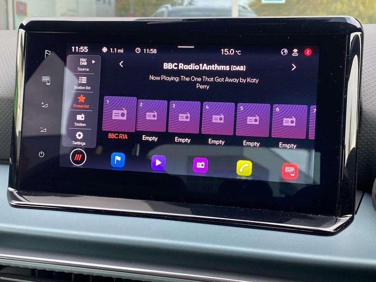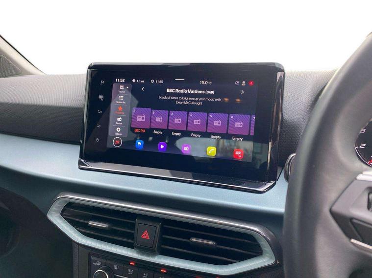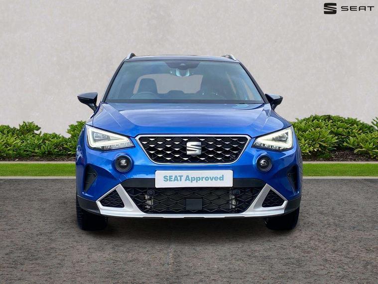 'Lights On' Reminder warning buzzer, 10" Digital cockpit, Digital clock, E-call, Electric speed sensitive power steering, Front parking sensor, Full Link Smartphone Integration with Mirror Link, Apple Car Play, Google Android Auto with USB Type C cable for Apple and Android compatibility, Lane keeping system, Low fuel warning light, Outside temperature display, Park assist system, Rear parking sensor, Rear view camera, RPM counter, Seat connect with safety, service, remote and online, Trip computer, Wireless phone charger, 9.2" colour touchscreen with navigation system, voice control and USB port (type c), Bluetooth interface for hands free and audio streaming, DAB digital radio and AM/FM radio, Steering wheel mounted audio controls, Anti theft roof antenna, Auto dimming interior rear view mirror, Automatic activation of hazard warning lights, Body coloured bumpers, Body coloured door handle inserts, Chrome roof rails and window surrounds, Electric front/rear windows, Electrically adjustable, heated and folding door mirrors, Front fog lights with cornering function and rear fog light, FULL LED automatic headlights with dynamic headlight range control, coming and leaving home, LED daytime running lights, Hidden exhaust pipe, LED rear tail lights and licence plate lights, Protective side mouldings, Rain sensing wipers, Rear side wing doors, Rear spoiler, Rear window wash/wipe, Roof colour door mirrors, Third brake light, Visible VIN plate, Windshield wiper with intermittent control and potentiometer, 2 cupholders, 3 seat bench in 2nd row, 60/40 split folding rear seat, Aircare filter, Black interior roof, Double boot floor, Driver sunvisor with covered mirror + card holder, Dual zone climate control, Flat bottomed leather steering wheel/gear knob/handbrake, Front comfort seats, Front courtesy light with front reading lights, Front seat back storage pockets, Gear shift indicator, Heated front seats, Height adjustable front seats, Height/reach adjustable steering column, Illuminated boot, Instrument lighting with brightness control, Interior ambient lighting, Interior light in footwell, central console and door panel, ISOFIX points in outer rear seats with top tether anchorage points, Leather steering wheel/gear knob/handbrake, Microsuede cloth upholstery, Passenger sunvisor with vanity mirror, Single front passenger seat, Storage net on centre console, Two front and three rear height adjustable headrests, Interior chrome pack - Arona, Safety and driving pack (M) - Arona, Storage pack - Arona, 3 point seatbelts on all rear seats, ABS, Active front headrests, Child locks on rear doors, Driver and front passenger airbags with front passenger airbag de activation, front side and curtain airbags, Electronic stability control, Emergency Brake Assist (EBA) and front assist, Front and rear seatbelt reminder, Hill hold control, Multi-Collision braking, Tiredness recognition system, Traction control, Tyre pressure monitoring system, Alarm with back-up horn, Electronic engine immobiliser, KESSY Keyless entry and go, Locking wheel bolts, Remote central locking + deadlocks, Tow away protection, Titan black dashboard, 18" Performance Nuclear grey alloy wheels,