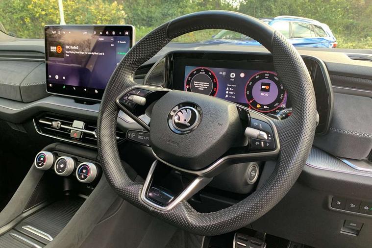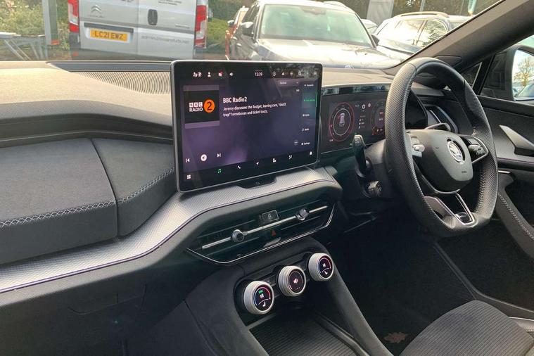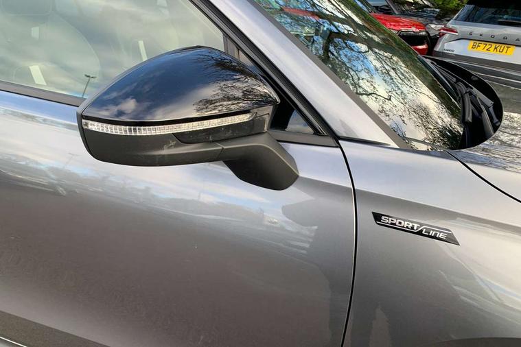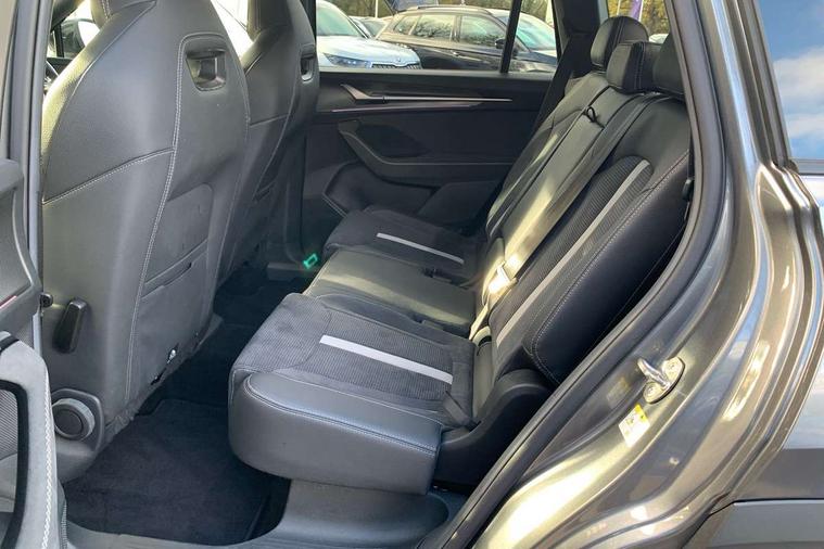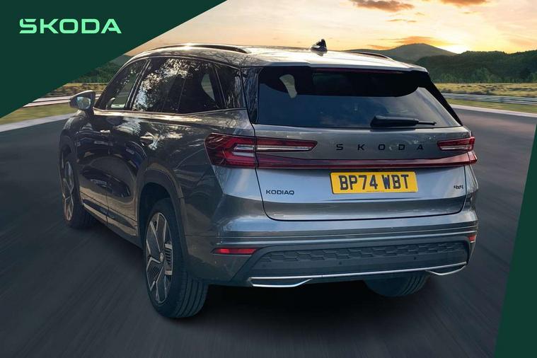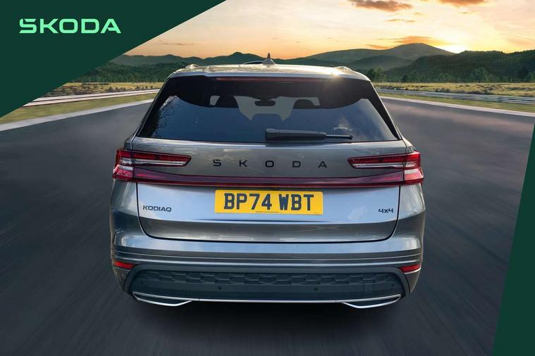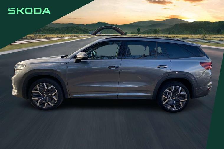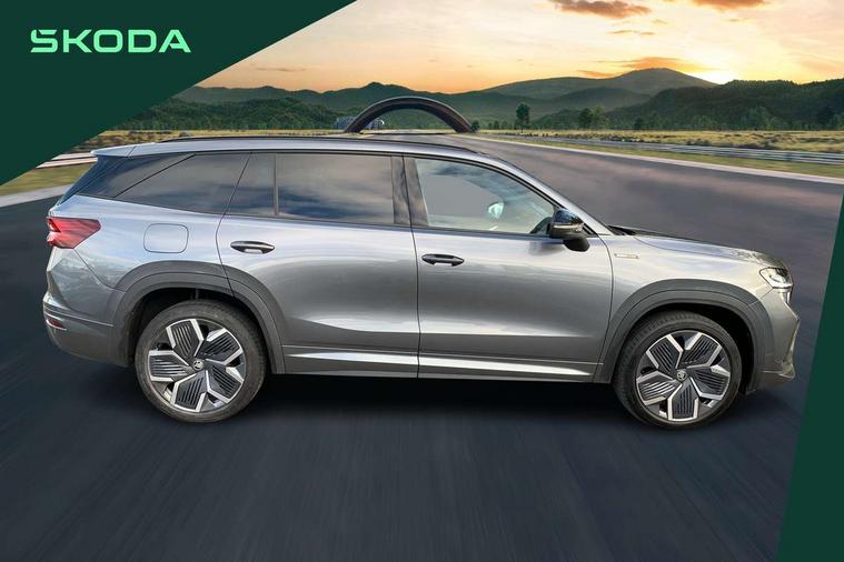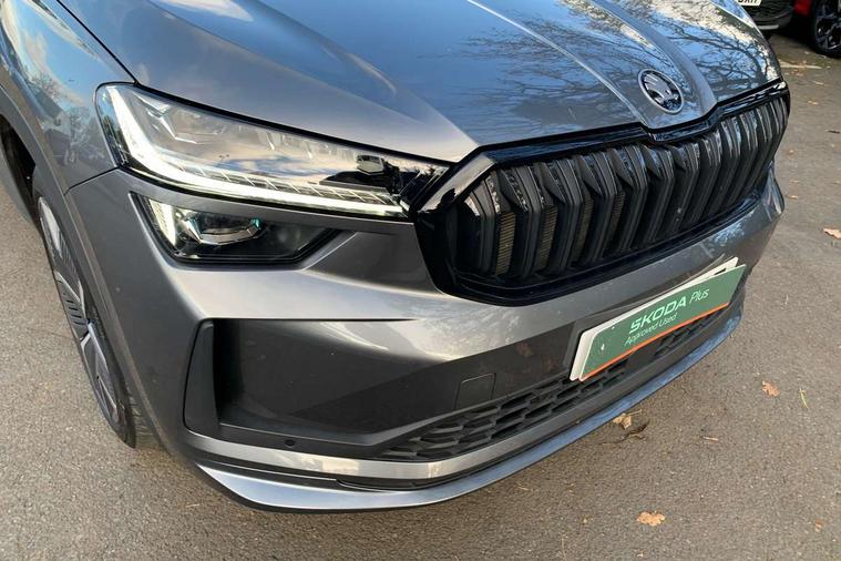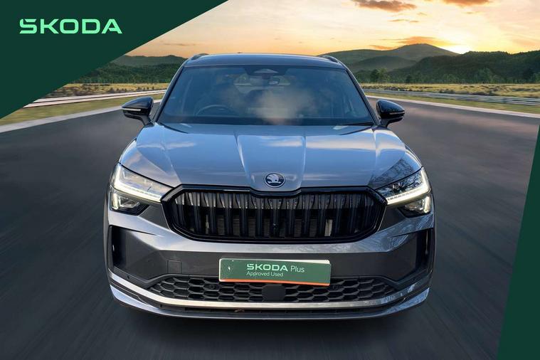 13" satellite navigation touchscreen display, Blind spot detection with door exit warning, Bluetooth system, ChatGPT functionality, Driver alert - Fatigue and drowsiness monitor, Dry display cleaner, Emergency call, Front and rear parking sensors, Front cross traffic assist, Lane assist, Off road modes, PAS, Rear traffic assist, Tailgate unlocking from outside, Traffic sign recognition, USB C Port x 2 in front centre console, Virtual Cockpit - 10.25" digital display, Voice control system, Wireless charging for two smartphones (15W) with cooling function, Wireless SmartLink for Apple CarPlay and Android Auto, Stop/start function, 2x USB-C in the rear, DAB Digital radio, Aero front windscreen wipers with intermittent function, Auto dimming rear view mirror, AWL (all weather lighting) and all weather light with cornering function, Black diffuser and decorative tailpipe with a unique dark chrome finish, Black roof rails, Black sports styling including front grille and window surrounds, Black wheel arch surrounds, Body colour door handles, Cornering light and poor weather light, Electric folding /adjustable/separted heated/folding door mirrors, auto dimming with boarding sports and memory function, Electric front and rear windows, Exterior black decorative trims, Front and rear sports bumpers including lower rear chrome strip, Gloss black door mirrors, Gloss black window frame and D pillar, Heat insulating glass in windshield, Heated rear window, Ice scraper in fuel tank cap, LED daytime running lights, LED third brake light in rear spoiler, Light assistant with automatic headlight control and coming home feature, Logo projection in door mirrors, Privacy glass, Rear roof spoiler, Rear side wing doors, Rear window wiper, Red decorative strip between rear LED lights, Safety reflectors on front and rear doors, Sportline badge on front fenders, Tailgate lettering in Black, Unique dark chrome design logo on alloy wheels, Window control switches with black trim, Windscreen wipers with rain sensor, Without engine designation, 1.5l bottle holder points in all door, 1x centre rear reading light, 2 seat bench in 3rd row, 3 configurable smart dials with 32mm coloured display, 3 seat bench in 2nd row, 4 foldable roof handles with rear coat hooks, Aluminium pedals, Ambient interior lighting - Dashboard, front-door stowage compartments, front and rear door panels and footwell lighting, Automatic gear selector on steering column, Chrome interior door handles, Driver/front passenger reading lights, Fabric headlining, Fixed bench 40:60:40 split folding backrests, Front and rear floor mats, Front centre armrest with jumbo box storage compartment, cup holder and 12V socket, Front sport seats, Height adjustable front headrests, Interior black decorative trims, Isofix child seat fittings in outer middle row rear seats and front passenger with top tether, Manually adjustable steering column, Pollen filter, Rear centre armrest with cupholders, Rear seat boot backrest release, Single front passenger seat, Skoda lettering on steering wheel, Storage pocket including mobile phone pockets on the backs of the front seats, Sunvisors with illuminated vanity mirrors, Three rear height adjustable headrests, Ticket holder on A Pillar, Tri zone climate control, Umbrella in door panel x1 made from sustainable materials, Upper and lower glovebox with card holder and coin compartment, USB C port by rear view mirror for charging only (15W), Acoustic package - Kodiaq, Performance package - Kodiaq, Sportline design selection pack - Kodiaq, Auto door release and activation of warning lights in the event of an accident, Driver and front passenger airbag with knee airbag and front passenger airbag deactivation, Electric child locks, Electronic parking brake, ESC (incl. ABS+EMD+MSR+ASR+EDL+HBA+DSR+RBS+ESBS+MCB+TSA+XDS), Front assist with braking reaction to vehicles, pedestrians and cyclists, Front disc brakes, Fuel cut off safety device, Height adjustable front 3 point seatbelts + pretensioners, Hill hold assist, Junction assist with automatic emergency braking, Rear disc brakes, Safety vest holder in door, Seat belt reminder for all seats, Three point rear seat belts, Two tone horn, Tyre pressure monitor, Alarm with interior monitoring and tilt sensor with safe function, Anti-theft wheel bolts, Immobiliser, Remote central locking with 2 keys, 20" Rila anthacite polished alloy wheel with black matte aero covers,