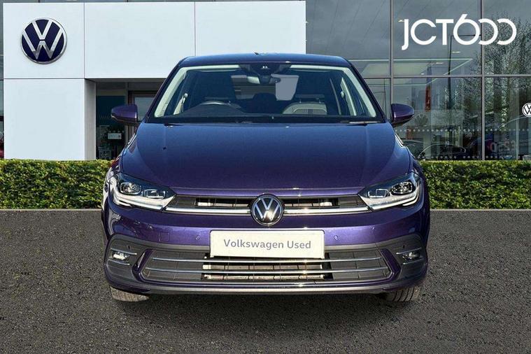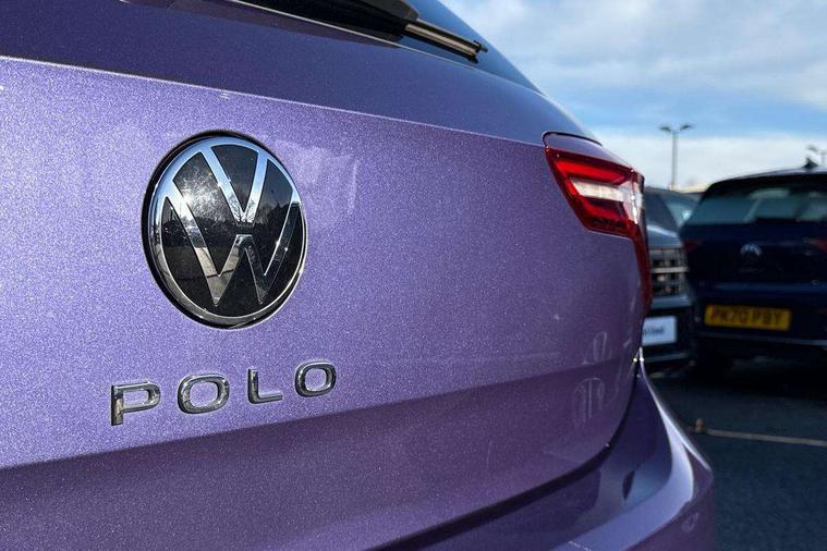 Adaptive cruise control without follow-to-stop and speed limiter, Bluetooth mobile phone interface, Digital Cockpit Pro with 10.25" Display, Driver alert system, Dynamic road sign display, Emergency call service, Power assisted speed sensitive steering, Preparation for We connect and We connect plus, Speedo and rev counter, electronic odometer, trip, service interval display and fuel gauge, Standard rear axle, Travel Assist - Lane keeping system and traffic jam assist, Travel assist including emergency assist, Trip computer, Warning signal and warning light for front and rear seatbelts not fastened, Washer fluid level indicator, Wireless app connect, Front wheel drive, Rear shock absorpion, Start-stop system with battery regeneration (recuperation - energy recovery during braking), DAB Digital radio, Diversity antenna for FM reception, Front and rear 6 speakers, Automatic dimming interior rear view mirror, Automatic headlights, Body colour door handles, Body coloured bumpers and radiator grille with chrome trims, Electric front windows, Heat insulating darkened glass in side and rear windows, Heat insulating glass windscreen, LED separate daytime running lights with coming/leaving home function, Power folding adjustable/heated exterior mirrors and front passenger exterior mirror lowering function, Rain sensor, Rear electric windows, Rear fog light, Rear side wing doors, Rear windscreen washer and wiper with interval delay, Third brake light, 12V power socket in centre console, 2 USB-C ports in the front, 2 USB-C charging sockets on the center console in the rear, 3 rear head restraints, 60/40 split folding rear seat and rear seat bench not split, Air care climatronic air conditoning system with active combination filter and 2-zone temperature control, Ambient lighting, Chrome plated radiator grille inserts, air vent surrounds and light switch surrounds, Door and side trim panel, Driver and front passenger seat height adjustment, Driver/passenger sunvisors with illuminated vanity mirrors, Front + rear carpet mats in recycled material, Front centre armrest, Front footwell illumination, Front seat backrest storage pockets, Front sports comfort seats, Handbrake lever handle in leather, Headliner in recycled material, Isofix child seat preparation easy-fit (for two outer rear seats, and front passenger seat) compatible with I-size, Leather trimmed gear knob, LED interior light with switch off delay and dimmer, 2 reading lights front and rear, Luggage compartment cover, Luggage compartment floor, Luggage compartment lighting, Lumbar adjustment for front seats, Multifunction steering wheel, Single front passenger seat, Standard pedal cluster, IQ LED matrix headlights pack - Polo, Light and vision pack - Polo, 3 point height adj front seatbelts + pretensioners, 3x3 point rear seatbelts, ABS, Driver and front passenger airbag with front passenger airbag deactivation, Drivers and front passengers safety optimised head restraints, ESC (Electronic stability control) + EDL (Electronic Differntial lock) and ASR (Traction control), Extended and predictive pedestrian/ cyclist protection, Front curtain and side airbags with center airbag, Front disc brakes, Hill hold control, Manual child lock in rear doors, Rear drum brakes, Single tone horn, Tyre pressure loss indicator, Alarm with interior protection, Anti-theft alarm system with interior monitoring, backup horn, and towing protection, Anti-theft wheel bolts, Electronic engine immobiliser, Chrome applications on rotary light, mirror adjustment, window regulator switches, outlet with frame in black, Low rolling resistance tyres,