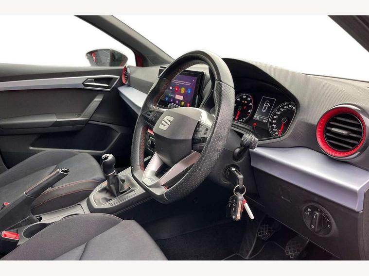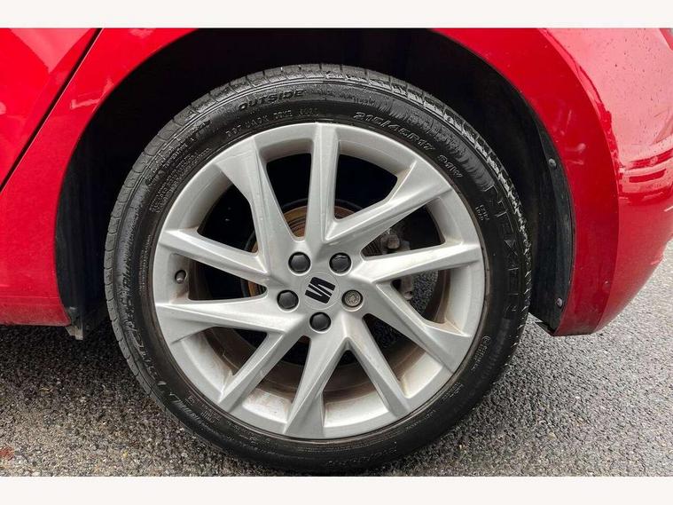'Lights On' Reminder warning buzzer, 9.2" touchscreen navigation system with type C USB socket, Voice control and DAB/AM/FM radio, Auto start and stop system, Bluetooth audio streaming with handsfree system, Digital clock, E-call, Full link smartphone integration with mirror link, wireless apple carplay, Google android auto + USB Type C cable for apple and android devices, Lane assist, Low fuel warning light, Outside temperature gauge, Power Steering, Seat connect with safety, service, remote and online, SEAT drive profiles and ECO function, SEAT logo boot release, Speed limiter, Trip computer, Sports suspension, Auxiliary input socket, Radio/MP3 player, SD card slot, Steering wheel mounted controls, Anti theft roof antenna, Auto dimming rear view mirror, Automatic rain sensing wipers, Black door mirrors, Body colour bumpers, Body colour door handles, Brilliant black window surrounds, Dark tinted rear windows, Electric adjustable/heated/folding door mirrors, Electric front windows, Electric headlight adjustment, Electric rear windows, Front/rear fog lights, FULL LED automatic headlights with dynamic headlight range control, coming and leaving home, LED daytime running lights, LED tail lights, Rear roof spoiler with FR twin exhausts, Rear side wing doors, Rear wiper, Third brake light, 3 seat bench in 2nd row, 60/40 split folding rear seat, Ambient interior lighting, Chrome detailing and black headlining, Cloth upholstery, Dual zone climate control with combination filter, Front courtesy lights, Front cupholders x 2, Front reading lights, Gear shift indicator, Glovebox, Height adjustable front and rear headrests (five), Height adjustable front seats, Height/reach adjust steering wheel, Illuminated air vent surrounds, Illuminated boot, Instrument lighting with brightness control, Isofix, Leather multifunction flat bottomed sports steering wheel, Passenger sunvisor, Single front passenger seat, Sports seats, Sunvisors with mirror and driver side card holder, 3 point seatbelts on all 3 rear seats, ABS, Active front headrests, Child locks on rear doors, Electronic stability control, Energy recovery system, Front assist forward collision warning and autonomous emergency braking, Front driver and passenger side airbags with curtain airbag and front passenger airbag deactivation, Hill hold control, Multi-Collision braking, Seat belt reminder for front and rear seats, Tiredness recognition system, Tyre pressure monitoring system, Electronic engine immobiliser, Locking wheel bolts, Perimeter alarm and interior monitoring with backup horn and tow away protection, Remote central locking + deadlocks, 17" Alloy wheels in Brilliant silver,