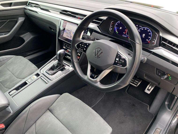 Adaptive cruise control (ACC) with speed limiter, front assist (reacting vehicles pedestrian and cyclists) and follow to stop, App connect including wireless Apple CarPlay, Camera for warning system, Digital cockpit with 10.25" high resolution TFT display screen with customisable menus and information, Driver alert system with fatigue detection, Driver profile selection including ECO function, Dynamic road sign display, eCall - Emergency call service for SOS calls to emergency response, Emergency assist, Hands free boot opening, Press and drive key, Progressive steering, Speedo and rev counter, electronic odometer, trip, service interval display and exterior temperature gauge, Tailgate, Travel assist - Lane keeping assist and traffic jam assist, Voice activation for telephone and navigation, Start/stop function with battery regeneration, External, USB type C data sockets with increased charging performance front (45 Watt), Premium USB cable in choice of either Apple or Android smartphone compatibility, Auto dimming interior rear view mirror, Automatic headlights, Body colour door handles, Body colour side skirt, Body coloured top and matt black lower door mirrors with integrated indicators, Chrome plated radiator grille inserts and light switch surrounds, Chrome side window surrounds, Dynamic headlight range control, Electric folding door mirror, adjustable, heated with front passenger exterior mirror lowering function, Front and rear electric windows, Front and rear stainless steel door sill protection, Front windscreen washers and wipers with 4x interval delay, Heat insulating side and rear windows, Heated rear windscreen, Heated windscreen washer jets, LED 3rd brake light, LED rear combination lamp with dynamic indicators, LED rear number plate lights, Panoramic sunroof with tilting and sliding including integrated roller blind, R Line design body coloured bumpers, Rain sensor, Rear fog lamp on one side and reversing lamp on both sides, Rear side wing doors, Rear tinted glass from B pillar backwards, approx 65% tinted, Rear windscreen washer and wiper with interval delay, Roof spoiler, Tailpipes behind rear bumper, 12V socket in front centre console, 12V socket on rear of front centre armrest, 3 rear head restraints, 3 seat bench in 2nd row, 30 colours options interior ambient lighting, 60:40 split folding rear seat backrests with centre armrest, Air care climatronic 3 Zone electronic air conditioning with automatic air recirculation, Black roof lining, Chrome trim on upper and lower air vents extending across cockpit, Driver and front passenger sunvisor with vanity mirror, Front + rear carpet mats, Front cupholders x 2, Front footwell illumination, Front sports comfort seats, Glovebox, Heated front seats, Height/reach adjust steering wheel, Isofix child seat preparation easy fit for two outer rear seats, Luggage compartment lighting, Removable luggage compartment cover, Single front passenger seat, Split folding front seat backrest with front centre armrest, Stainless steel pedals, Two LED front reading light, 3 rear three point seatbelts, ABS+EBD+Brake assist, Child locks on rear doors, Driver airbag and front passenger airbags with deactivation switch including driver knee airbags, Electronic parking brake, Electronic stability control (ESC) and Electromechanical brake booster, Front disc brakes, Front side airbags with curtain airbags, Hill start assist, Pro active occupant protection to detect critical situations with elevated accident potential from the front, Rear disc brakes, Three point height adjust front seatbelts + pretensioners, Two tone horn, Tyre pressure loss indicator, Warning buzzer for seatbelts if unfastened, Warning triangle, Alarm with interior protection with deactivation via infotainment system, Electronic engine immobiliser, Keyless entry system including start/stop button on centre console, Remote central locking, Aluminium decorative inserts, Chrome trim on lower doors in front and rear, Leatherette insert on door and side trim panel in foam film, Piano black decorative inserts in centre console,