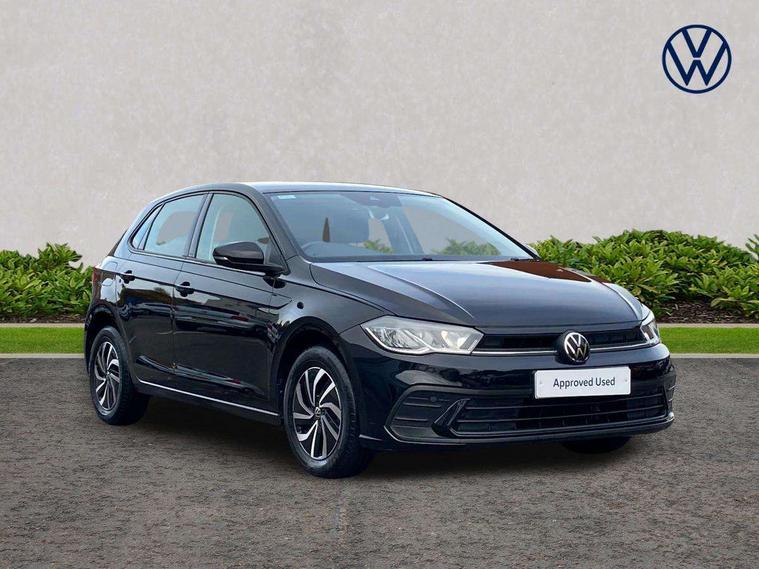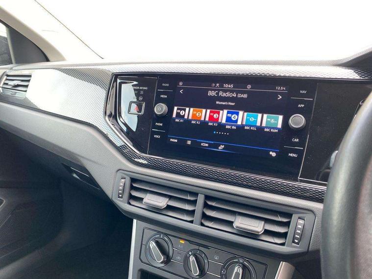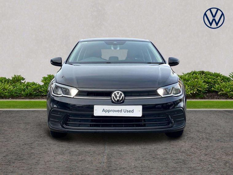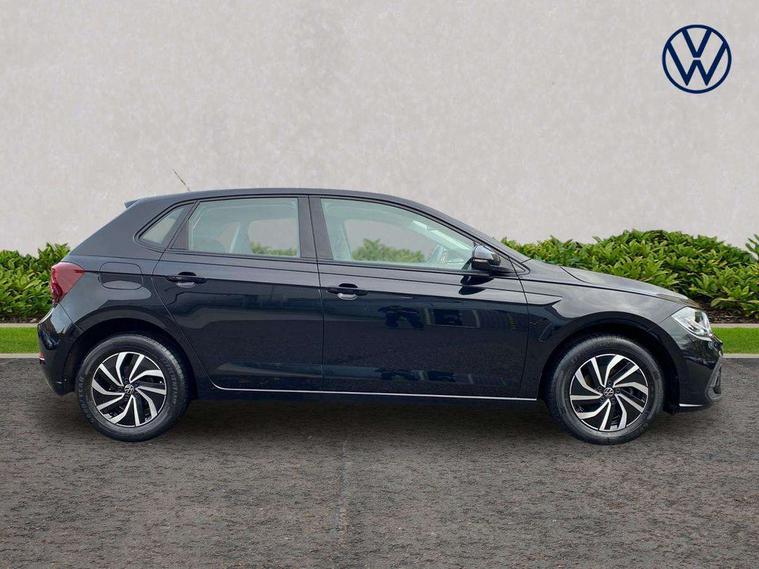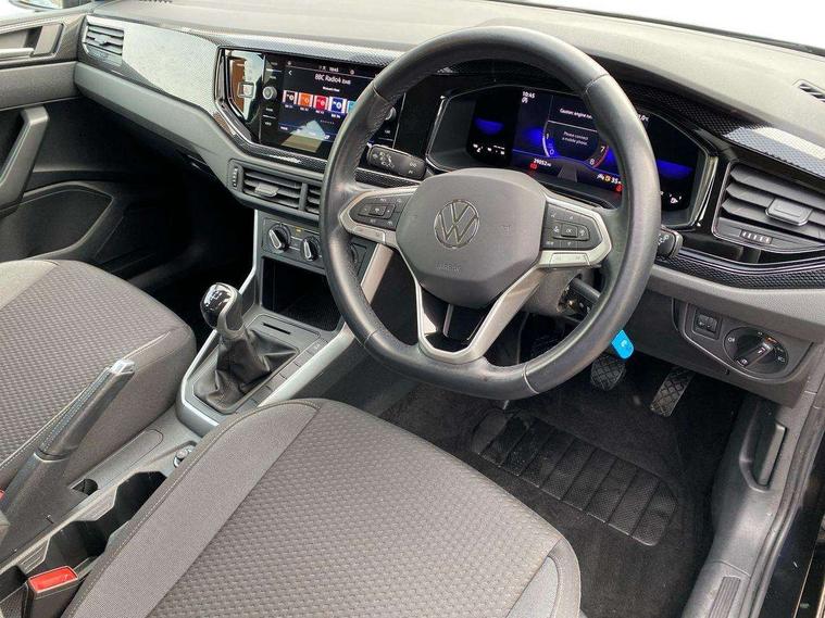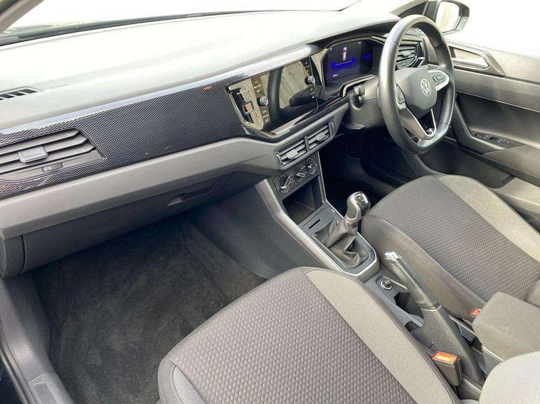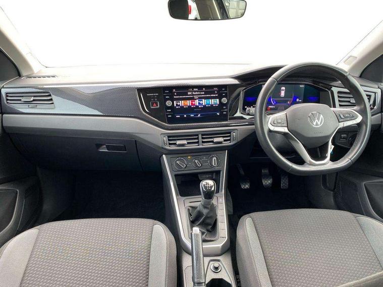 Adaptive cruise control without follow-to-stop and speed limiter, Bluetooth mobile phone interface, Driver alert system, Emergency call service, Front assist system, Power assisted speed sensitive steering, Preparation for We connect and We connect plus, Speedo and rev counter, electronic odometer, trip, service interval display and fuel gauge, Standard rear axle, Travel Assist - Lane keeping system and traffic jam assist, Travel assist including emergency assist, Trip computer, Warning signal and warning light for front and rear seatbelts not fastened, Washer fluid level indicator, Wireless app connect, Front wheel drive, Rear shock absorpion, Start-stop system with battery regeneration (recuperation - energy recovery during braking), DAB Digital radio, Diversity antenna for FM reception, Automatic dimming interior rear view mirror, Body colour bumpers, Body colour door handles, Body colour door mirrors, Electric front windows, Heat insulating darkened glass in side and rear windows, Heat insulating glass windscreen, Power folding adjustable/heated exterior mirrors and front passenger exterior mirror lowering function, Rain sensor, Rear electric windows, Rear fog light, Rear side wing doors, Rear windscreen washer and wiper with interval delay, Third brake light, 12V power socket in centre console, 2 front and 2 rear reading lights, 2 USB-C ports in the front, 2 USB-C charging sockets on the center console in the rear, 3 rear head restraints, 60/40 split folding rear seat and rear seat bench not split, Ceramique headliner, Chrome plated radiator grille inserts, air vent surrounds and light switch surrounds, Door and side trim panel, Driver and front passenger seat height adjustment, Driver/passenger sunvisors with illuminated vanity mirrors, Front centre armrest, Front seat backrest storage pockets, Front standard seats, Handbrake lever handle in leather, Hartley/Thomas cloth upholstery, Isofix child seat preparation easy-fit (for two outer rear seats, and front passenger seat) compatible with I-size, Leather trimmed gear knob, Luggage compartment cover, Luggage compartment floor, Luggage compartment lighting, Multifunction steering wheel, Single front passenger seat, Standard pedal cluster, Light and vision pack - Polo, 3 point height adj front seatbelts + pretensioners, 3x3 point rear seatbelts, ABS, Driver and front passenger airbag with front passenger airbag deactivation, Drivers and front passengers safety optimised head restraints, ESC (Electronic stability control) + EDL (Electronic Differntial lock) and ASR (Traction control), Extended and predictive pedestrian/ cyclist protection, Front curtain and side airbags with center airbag, Front disc brakes, Hill hold control, Manual child lock in rear doors, Rear drum brakes, Single tone horn, Tyre pressure loss indicator, Alarm with interior protection, Anti-theft alarm system with interior monitoring, backup horn, and towing protection, Anti-theft wheel bolts, Electronic engine immobiliser, Lava stone black gloss/matt decorative inserts in dash and front door panels, Low rolling resistance tyres,