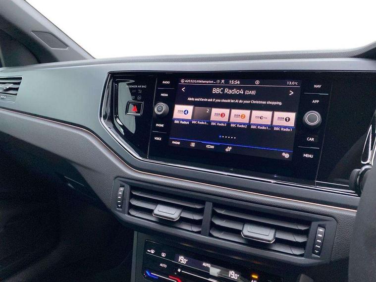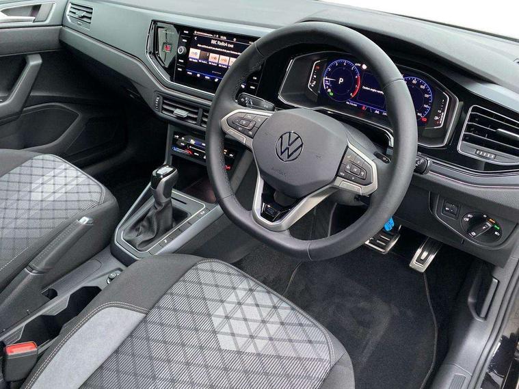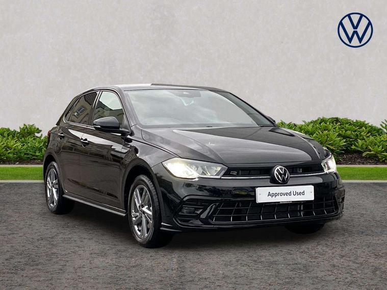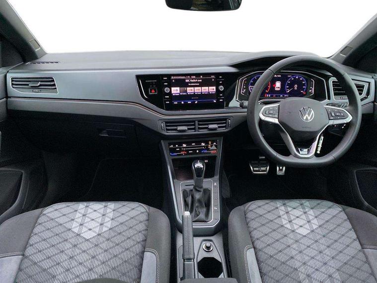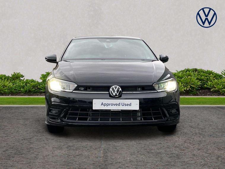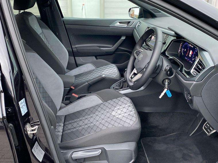 Adaptive cruise control with follow-to-stop and speed limiter, Advanced driver attention and drowsiness monitor, Bluetooth mobile phone interface, Digital Cockpit Pro with 10.25" Display, Dynamic road sign display, Emergency call service, Multifunction camera, Power assisted speed sensitive steering, Preparation for We connect and We connect plus, Speedo and rev counter, electronic odometer, trip, service interval display and fuel gauge, Standard rear axle, Travel Assist - Lane keeping system and traffic jam assist, Travel assist including emergency assist, Trip computer, Warning signal and warning light for front and rear seatbelts not fastened, Washer fluid level indicator, Wireless app connect, Front wheel drive, Rear shock absorpion, Start-stop system with battery regeneration (recuperation - energy recovery during braking), DAB Digital radio, Diversity antenna for FM reception, Front and rear 6 speakers, Body colour bumpers, Body colour door handles, Electric front windows, Front scuff plates with R-Line logo, Heat insulating glass windscreen, Power folding adjustable/heated exterior mirrors and front passenger exterior mirror lowering function, Rear electric windows, Rear fog light, Rear side wing doors, Rear windscreen washer and wiper with interval delay, Third brake light, 12V power socket in centre console, 2 USB-C ports in the front, 2 USB-C charging sockets on the center console in the rear, 3 rear head restraints, 60/40 split folding rear seat and rear seat bench not split, Air care climatronic air conditoning system with active combination filter and 2-zone temperature control, Black roof lining, Carpet mats, front and rear, Chrome plated radiator grille inserts, air vent surrounds and light switch surrounds, Door and side trim panel, Driver and front passenger seat height adjustment, Driver/passenger sunvisors with illuminated vanity mirrors, Front centre armrest, Front footwell illumination, Front seat backrest storage pockets, Front sports comfort seats, Handbrake lever handle in leather, Headliner in recycled material, Isofix child seat preparation easy-fit (for two outer rear seats, and front passenger seat) compatible with I-size, Karoso artvelours cloth upholstery, Leather trimmed gear knob, LED interior light with switch off delay and dimmer, 2 reading lights front and rear, Luggage compartment cover, Luggage compartment floor, Luggage compartment lighting, Lumbar adjustment for front seats, Single front passenger seat, Stainless steel pedals, Standard pedal cluster, Three spoke leather wrapped multifunction steering wheel with shifting paddles, Light and sight pack - Polo R-Line/Black Edition, 3 point height adj front seatbelts + pretensioners, 3x3 point rear seatbelts, ABS, Driver and front passenger airbag with front passenger airbag deactivation, Drivers and front passengers safety optimised head restraints, ESC (Electronic stability control) + EDL (Electronic Differntial lock) and ASR (Traction control), Extended and predictive pedestrian/ cyclist protection, Front curtain and side airbags with center airbag, Front/rear disc brakes, Hill hold control, Manual child lock in rear doors, Single tone horn, Tyre pressure loss indicator, Alarm with interior protection, Anti-theft alarm system with interior monitoring, backup horn, and towing protection, Anti-theft wheel bolts, Electronic engine immobiliser, Chrome applications on rotary light, mirror adjustment, window regulator switches, outlet with frame in black, Dark grey anodised matt decorative inserts in dash and front door panels, 16" Coventry alloy wheels, Low rolling resistance tyres,