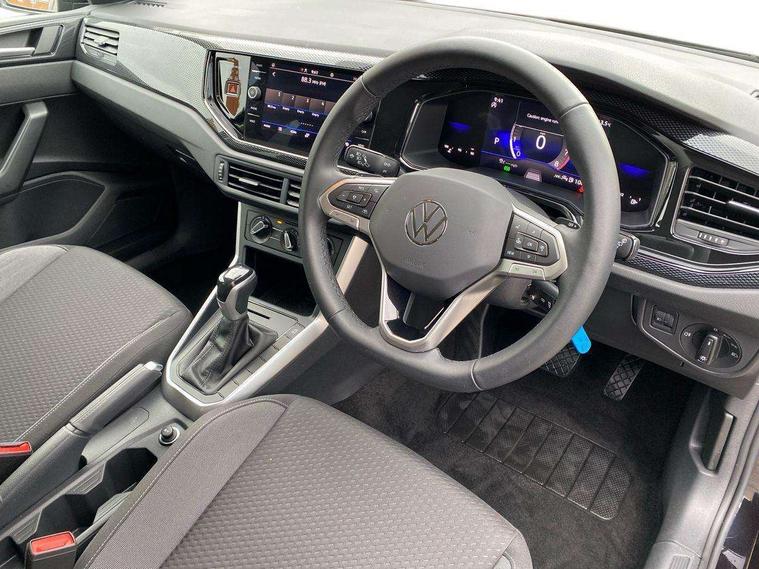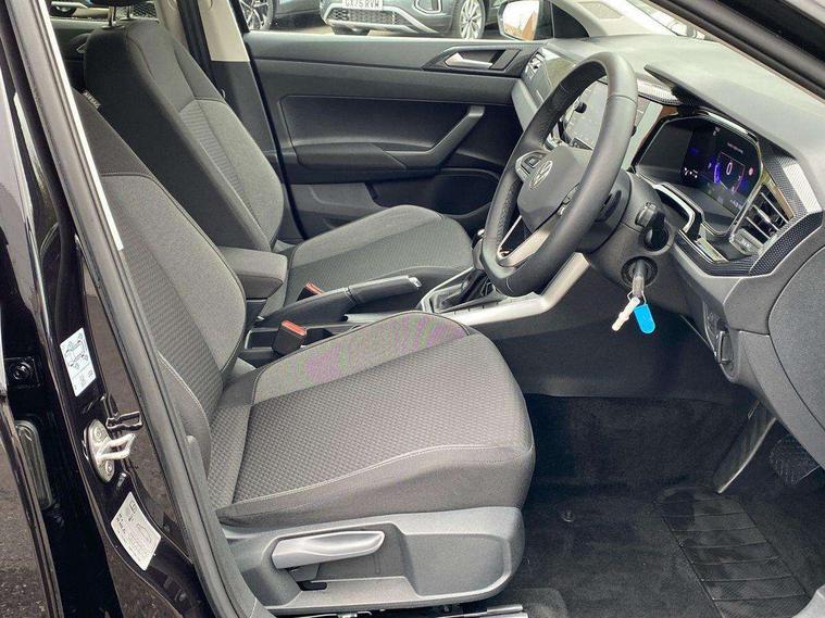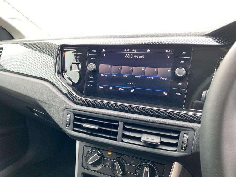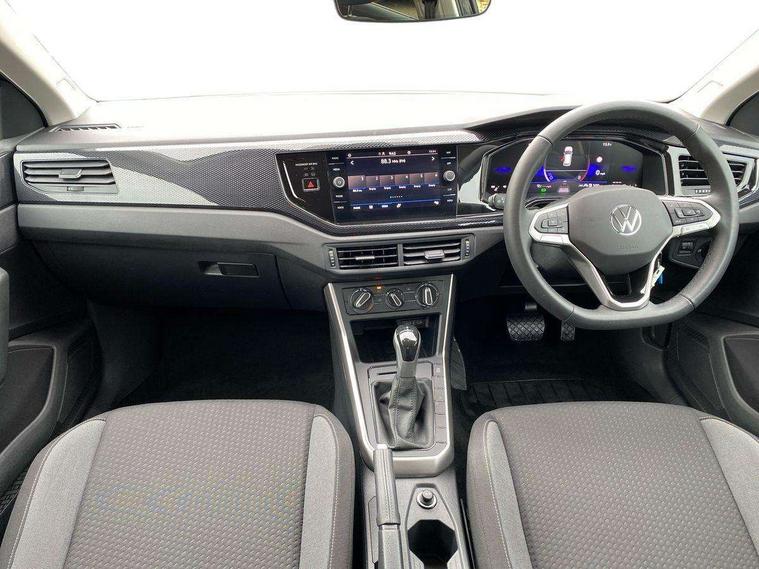 Advanced driver attention and drowsiness monitor, Bluetooth mobile phone interface, Dynamic road sign display, Emergency call service, Multifunction front facing camera for distance control, Park distance control, Power assisted speed sensitive steering, Predictive adaptive cruise control without follow-to-stop and speed limiter, Preparation for navigation system with media and internet package, Preparation for We connect and We connect plus, Rear view camera, Speedo and rev counter, electronic odometer, trip, service interval display and exterior temperature gauge, Standard rear axle, Travel Assist - Lane keeping system and traffic jam assist, Travel assist including emergency assist, Trip computer, Warning signal and warning light for front and rear seatbelts not fastened, Washer fluid level indicator, Wireless app connect, Front wheel drive, Rear shock absorpion, Start-stop system with battery regeneration (recuperation - energy recovery during braking), DAB Digital radio, Diversity antenna for FM reception, Front and rear 6 speakers, Automatic dimming interior rear view mirror, Automatic headlight control with LED separate daytime running lights with coming/leaving home function, Body colour bumpers with chrome inserts, Body colour door handles, Body colour door mirrors, Electric front windows, Engine badge deletion, Headlight range adjustment, Heat insulating and laminated safety glass windshield, LED Headlights, LED rear combination lamps, Power folding adjustable/heated exterior mirrors and front passenger exterior mirror lowering function, Rain sensor, Rear electric windows, Rear fog light, Rear side wing doors, Rear tinted glass from B-pillar backwards approx 65% tinted, Rear windscreen washer and wiper with interval delay, Third brake light, 12V power socket in centre console, 2 front and 2 rear reading lights with switch off delay and dimmer, 2 USB-C ports in the front, 2 USB-C charging sockets on the center console in the rear, 3 rear head restraints, 60/40 split folding rear seat and rear seat bench not split, Ceramique roof lining, Chrome plated radiator grille inserts, air vent surrounds and light switch surrounds, Door and side trim panel, Driver and front passenger seat height adjustment, Driver/passenger sunvisors with illuminated vanity mirrors, Front centre armrest, Front seat backrest storage pockets, Front standard seats, Handbrake lever handle in leather, Hartley/Thomas cloth upholstery, Headliner in recycled material, Isofix child seat preparation easy-fit (for two outer rear seats, and front passenger seat) compatible with I-size, Leather trimmed gear knob, Luggage compartment cover, Luggage compartment lighting, Removable luggage compartment floor, Single front passenger seat, Standard climatic zones, Standard pedal cluster, Three spoke leather wrapped multifunction steering wheel with shifting paddles, Light and vision pack - Polo, 3 point height adj front seatbelts + pretensioners, 3 point seat belt for centre rear seat, 3 point seatbelts, outer rear with ECE lable, ABS, Driver and front passenger airbag with front passenger airbag deactivation, Drivers and front passengers safety optimised head restraints, ESC (Electronic stability control) + EDL (Electronic Differntial lock) and ASR (Traction control), Extended and predictive pedestrian/ cyclist protection, Front assist with autonomous emergency braking (for Adaptive Cruise Control ACC up to 130 mph), Front curtain and side airbags with center airbag, Front disc brakes, Hill hold control, Manual child lock in rear doors, Rear drum brakes, Single tone horn, Tyre pressure loss indicator, Alarm with interior protection, Anti-theft alarm system with interior monitoring, backup horn, and towing protection, Anti-theft wheel bolts, Electronic engine immobiliser, Lava stone black gloss/matt decorative inserts in dash and front door panels, 16" Torsby alloy wheels, Low rolling resistance tyres,