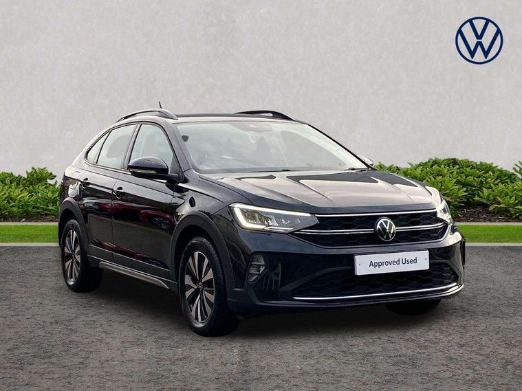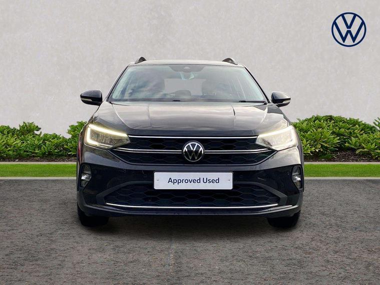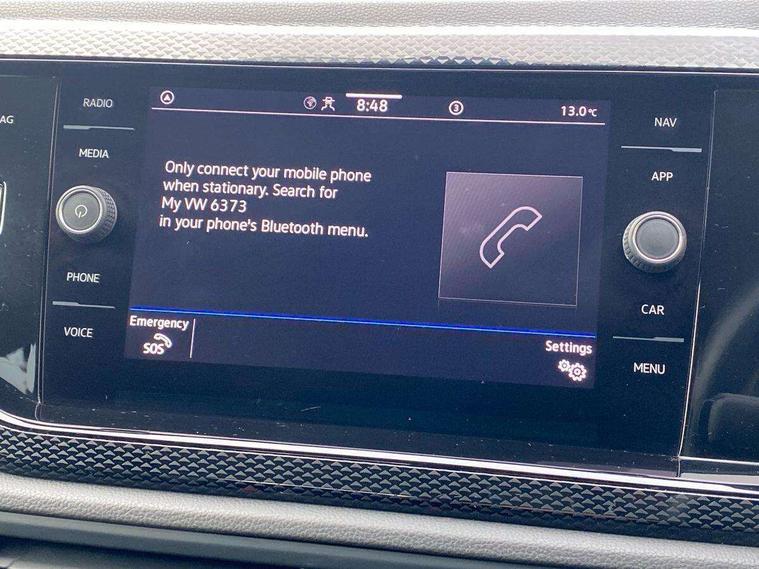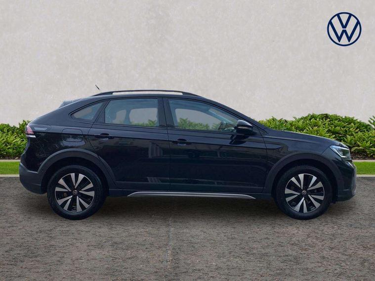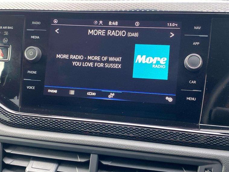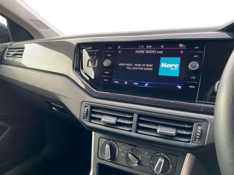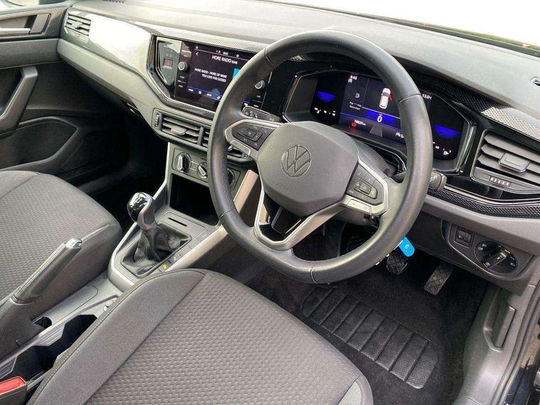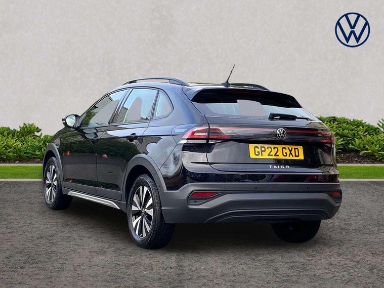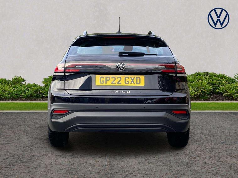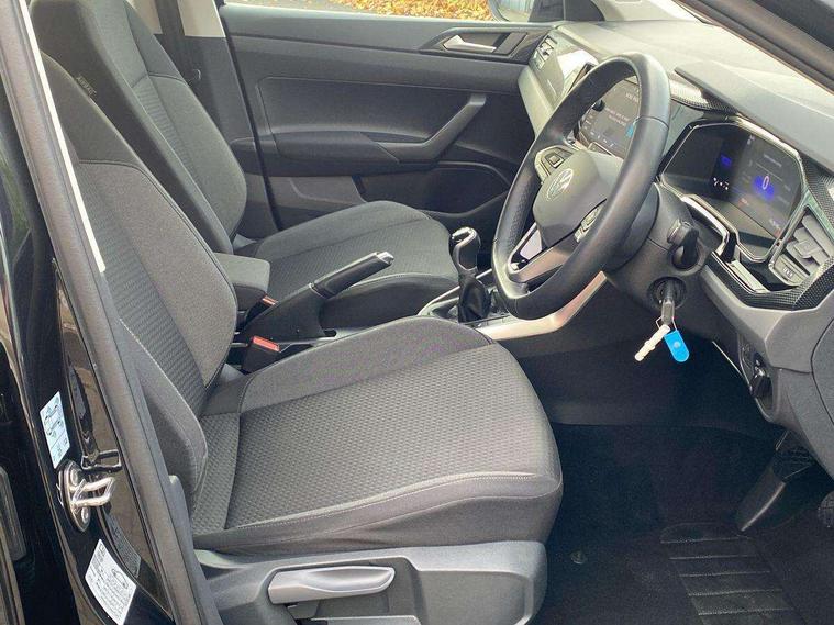 App-Connect including App-Connect Wireless, Driver alert system, e-Call (emergency call), Power Steering, Travel assist including emergency assist, Washer fluid level indicator, Wireless Charging including Bluetooth, Start-stop system with battery regeneration (recuperation - energy recovery during braking), Digital radio reception (DAB+), Diversity antenna for FM reception, WeConnect plus, Ambient lighting with logo projection, Aspherical driver's exterior mirror, Auto headlights, Body coloured bumpers, Body coloured exterior mirror housings and door handles, Electric windows, External USB type C socket and charging sockets, Front fog lamps with cornering function, Headlight range control, Heat insulating glass windscreen, LED headlamps, LED rear combination lamp, LED third brake light, Left convex exterior mirror, Power folding adjustable/heated exterior mirrors and front passenger exterior mirror lowering function, Rear fog light on one side, reversing light on both sides, Rear side wing doors, Rear wash/wipe with intermittent wipe setting, 'Slash/ Austin' Cloth upholstery, 12V socket in centre console, 2 front reading lights, 3 rear head restraints, 3 seat bench in 2nd row, Black carpets, Child seat anchor for child seat system i-Size, 2x top tether and child seat anchor in front on front passenger side, Door and side trim panels in titan black, Driver and front passenger seat height adjustment, Front centre armrest, Handbrake lever handle in leather, Height and reach adjustable steering wheel, Leather trimmed gear knob, Leather wrapped multifunction steering wheel, Luggage compartment floor, Luggage compartment light, Lumbar support for driver's and front passengers seat, Seat covers in titanium black, Single front passenger seat, Split folding backrest with centre armrest and unsplit rear seat bench, Storage compartment under front seats, Sun visors with illuminated vanity mirrors, Chrome Package - Taigo, Drivers assistance pack - Taigo, Light and Sight pack including High beam assist - Taigo, 2 x 3-point seatbelts/outer rear seats with ECE label, 3-point seat belts in front with pretensioner and height adjustment, 3-point seatbelt for centre rear seat, Driver and front passenger airbags with front passenger airbag de-activation, front side and curtain airbags, Driver and front passenger safety-optimised head restraints, Electronic stability control, Extended and predictive pedestrian/ cyclist protection, Front and rear disc brakes, Front curtain and side airbags with center airbag, Hill start assist, Manual rear child locks, Single tone horn, Tyre pressure loss indicator, Anti-theft alarm system with interior monitoring, backup horn, and towing protection, Anti-theft wheel bolts, Lava stone black gloss/matt decorative inserts in dash and front door panels, Low rolling resistance tyres,