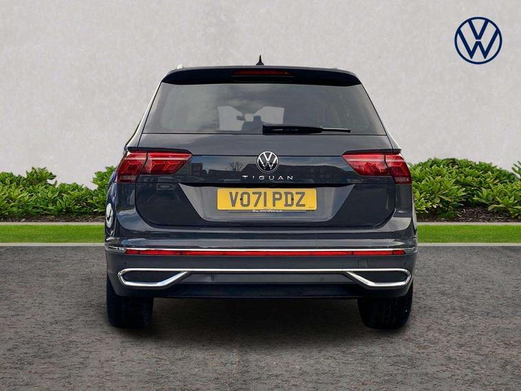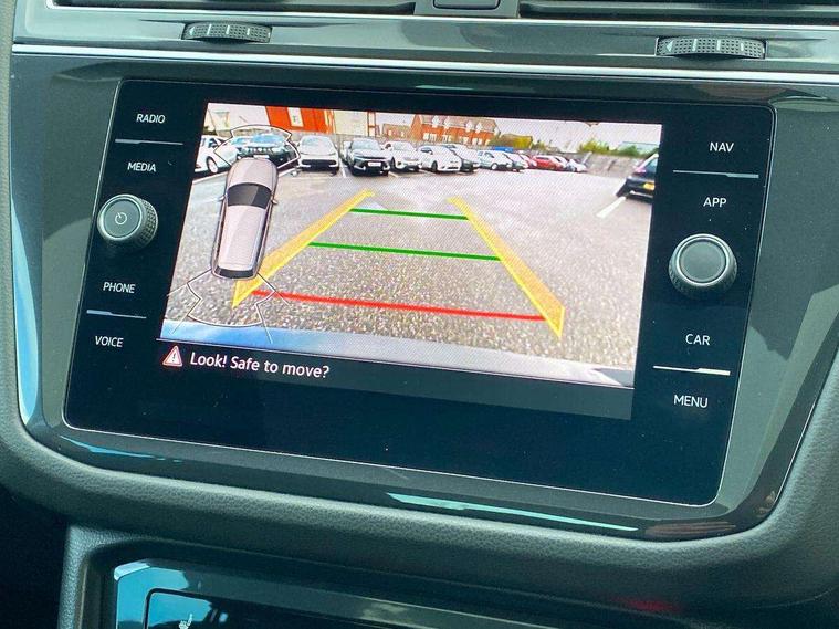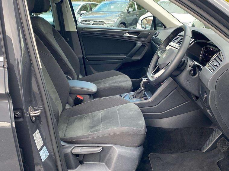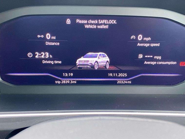 Adaptive cruise control ACC stop and go including speed limiter, App-Connect incl. App-Connect Wireless for Apple CarPlay and Android Auto, Bluetooth phone integration system, Digital Cockpit Pro - Active info display, Distance control assist, Driver alert system, Driver profile selection, Dynamic road sign display, eCall emergency call system, Electromechanical speed sensitive power steering, Engine start/stop button, Lane keeping system Lane Assist, Lights on warning, Motorised electric tailgate operated via key fob, drivers door and foot movement under tailgate, Multifunction front facing camera, Outside temperature display, Premium multifunction display with multi colour display, Remote control boot opening, Rev counter, Revision / skills operating concept travel assistant, Service interval indicator, Speed limit display, Start/stop system with regenerative braking, Tailgate/trunk lid unlocking from outside, Trip computer, Warning sound and light for doors and tailgate open, Battery regeneration during braking, XDS electronic differential lock for improved traction and handling, 2 USB-C ports in the front, 1 USB-C charging socket on the center console in the rear, Diversity antenna for FM reception, Radio, SD card slot, Simultaneous pairing of 2 compatible mobile devices, SMS functionality - read, compose and send SMS messages using touch-screen display, Title and cover art display, Aluminium door sill protectors, Auto dimming interior rear view mirror, Automatic headlight control system, Body colour door handles, Body coloured bumpers, Body coloured door mirrors with integrated indicators, Coming/leaving home lighting function, Dynamic headlight range control, Front and rear electric windows, Heated rear window, High level 3rd brake light, IQ light with advanced high beam control and dynamic light assist for LED matrix headlamps + Dark red rear combination lamp in LED technology, Laminated safety glass windshield, heat and sound insulating, LED rear number plate lights, LED separate daytime running light, Poor weather light and cornering light, Privacy glass for rear side windows and rear window, Rain sensor windscreen wipers, Rear exhaust tailpipe, Rear fog lamp, Rear windscreen washer and wiper with interval delay, Side and rear windows in heat insulating glass, Third brake light, Tilting and sliding panoramic sunroof with rear panoramic sunroof, Trailer Stability Programme, Windscreen wipers/ intermittent wipe + 4 position delay, 12V outlet in center console rear and in luggage compartment, 2 cup holders in front, 2 LED front reading lights, 2 LED rear reading lights, 3 rear headrests, 4 load lashing points, 40:20:40 split folding rear seats, Air Care Climatronic 3 zone automatic climate control with enhanced air filter and controls in the rear, Backrest release for left front seat, Climate control unit rear with touch function, Door and side trim panel in foam film and woven fabric, Front + rear carpet mats, Front centre armrest, Front footwell illumination, Front seats head restraints (x-adjustment), Height adjustable front seats, Height/reach adjust steering wheel, Instrument lighting white adjustable panel illumination, Interior light with delay, Isofix Preparation 2 Rear child seats, Leather gear knob, Lockable cooled glovebox, Luggage compartment lighting, Luggage net, Rear bench seat asymetrically split folding, longitudinally movable and folding with load-through hatch and center armrest, Remote unlocking for rear seat backrest, Removable luggage cover, Safety optimised front head restraints, Sliding/reclining rear seats, Standard rear seat release, Storage compartment in driver's door, Storage compartment in passenger's door, Storage compartment in rear doors, Storage compartments in luggage area left and right, Storage tray on dashboard, Sun visors with illuminated vanity mirrors, Variable boot floor, height adjustable and removable, Ambience pack - Tiguan, Chrome pack - Tiguan, Easy open and close pack with safelock - Tiguan, 3 point seat belt for centre rear seats, 3 point seat belts with seat belt pretensioners for the outer rear seats, Active bonnet, Curtain airbags for front and rear passengers, Driver/Front Passenger airbags, Drivers knee airbag, Electronic parking brake with auto hold, Electronic Stability Control with driver steering recommendation, ABS, ASR, EDL, EDTC and trailer stabilization, Front assist with autonomous emergency braking (for Adaptive Cruise Control ACC up to 130 mph), Front disc brakes, Front passenger airbag deactivation, Front side airbags, Height adjustable front 3 point seatbelts + pretensioners, Hill hold control, Pedestrian monitoring system, Power assisted brakes, Proactive passenger protection system in combination with front assist, Rear disc brakes, Rigid safety cell with front and rear crumple zones, Two tone horn, Warning sound and light for front seat belts if unfastened, Anti theft alarm system with interior monitoring, backup horn and towing protection, Anti theft wheel bolts, Central locking system with safelock radio remote control and 2 remote control folding keys, Electronic engine immobiliser, Tool kit,