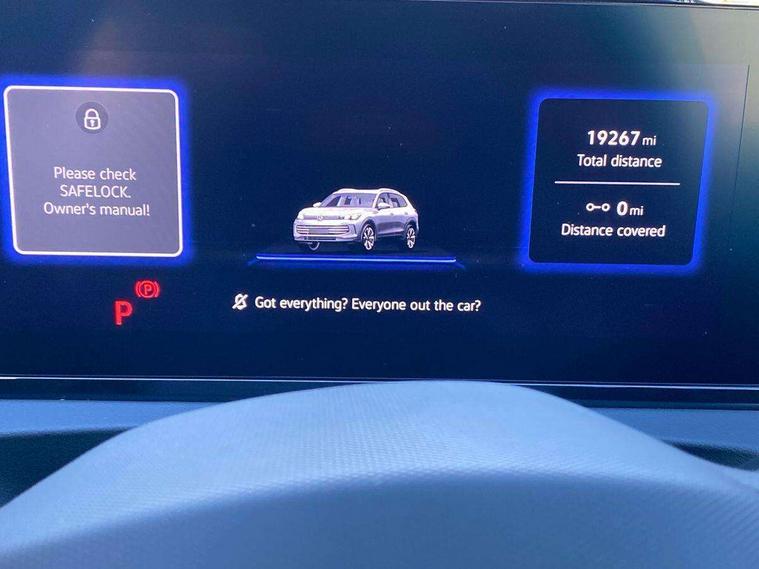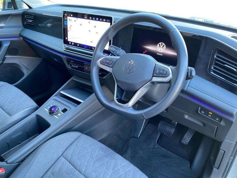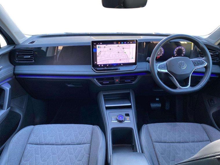 Adaptive cruise control (ACC), Advanced driver attention and drowsiness monitor, Bluetooth mobile phone interface, Car2X technology, Digital Cockpit Pro - 10.25" high resolution dash display screen with customisable menus and information, Dynamic road sign display, E-Sim card for online connectivity, eCall emergency call service, Front Assist - Autonomous emergency braking with pedestrian and cyclist monitoring, Lane change system, Side assist, Rear traffic alert and Exit warning system, Lane keeping system Lane Assist, Multifunction front facing camera, Oncoming vehicle braking when turning including swerve support, Park assistance plus with front and rear parking sensors, Power assisted steering with speed sensitive, Start/stop system with regenerative braking, Warning signal and warning light for front and rear seatbelts not fastened, Wireless App-Connect, Front wheel drive, Digital radio reception (DAB), Diversity antenna for FM reception, Ambient lighting with logo projection, Auto dimming interior rear view mirror, Automatic headlight control system, Body coloured bumpers and air intake with chrome trim, Body coloured door handles, Body-coloured exterior mirror housings, Coming/leaving home lighting function, Heat insulating glass in side and rear windows, Heat insulating windshield, Heated rear window, High level 3rd brake light, Illuminated door handle recesses, Illuminated lightline between headlamps, Rain sensor windscreen wipers, Rear fog light on one side, reversing light on both sides, Rear side wing doors, Rear wiper, 12V outlet in center console rear and in luggage compartment, 12V socket in centre console, 3 bench rear seats in 2nd row, Air care climatronic 3 zone air conditioning system with rear air conditioning control panel, Carpet mats, front and rear, Centre console with illuminated storage compartment with sliding cover and two drinks holders, Ceramique headlining, Door and side trim panel in foam film and woven fabric, Front centre armrest, ISOFIX anchors for child seats on outer rear seats and front passenger seat compatible with i-Size, Mechanical rear seat release, Power adjustable lumbar support in front, Rear bench seat, split folding, longitudinally movable and folding with load-through hatch and centre armrest, Safety optimised front head restraints, Single front passenger seat, Sun visors with illuminated vanity mirrors, Three rear head restraints, Variable luggage compartment floor, Comfort package with park assist plus and Safelock - Tiguan, Design package - Tiguan, 3 point seat belt for centre rear seats, 3 Point seat belts in front with pretensioners, 3 point seatbelts in outer rear with ECE label, Driver and front passenger airbag with front passenger airbag deactivation, Electronic parking brake with auto hold, Front and rear curtain airbags, Front and rear side airbags, Front centre airbag, Front disc brakes, Manual child proof rear door locks, Rear disc brakes, Two tone horn, Warning triangle, Anti theft wheel bolts, Soul instrument panel,