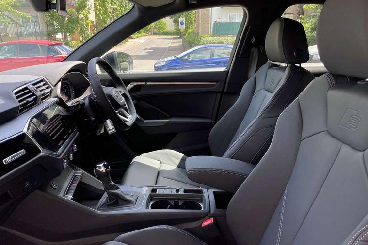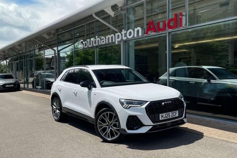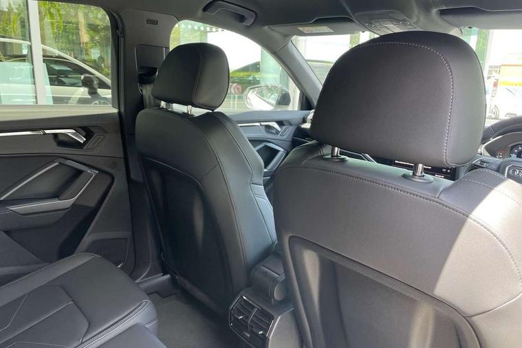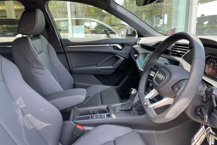 Amazon alexa Integration, Audi connect safety and service, Audi drive select, Audi lane departure warning, Audi Virtual Cockpit - 10.25" display, Bluetooth interface, Camera based traffic sign recognition, Distraction and Fatigue warning, Legal emergency call, MMI Navigation Plus with high resolution 10.1 inch touchscreen colour display, Power operated tailgate, Progressive steering, Service interval indicator, Smartphone interface includes wireless Apple carplay/Android Auto, Start stop system with recuperation, Voice control system with natural language interaction, Sports suspension, 2 USB-C ports with charge and data functions, 6 passive loudspeakers, DAB digital radio module, Acoustic windscreen, Audi Beam uses LEDs to project the Audi logo onto the ground as you exit your Q3, Auto dimming door mirrors, Auto dimming frameless rear view mirror, Black roof rails, Electrically folding, adjustable and heated door mirrors with integrated LED side indicators and kerb view function for passenger side, Front and rear electric windows, Front fog lights, Grille vertical bars in aluminium silver/Matt, High gloss black finish B and C pillars, LED Dynamic rear indicators, LED headlights with LED daytime running lights, LED rear lights, LED third brake light, Privacy glass dark tinted rear and rear-side windows (from B-pillar backwards), Rain and light sensors, Rear diffuser grille in grained matt black, Rear diffuser strip in matt anthracite black, Rear side wing doors, Rear wiper, S line bumpers in contrasting Manhattan grey, Variable front intermittent wipers, 12V socket in rear centre console, 3 seat bench in 2nd row, 40:20:40 folding with manual adjustment for 60:40 forwards/backwards position and backrest angle, Adjustable rear seat bench/backrest with centre armrest and cupholder, Black cloth headlining, Dual zone electronic climate control, Electric lumbar support, Front and rear black floor mats with contrast stitching in rock grey, Front and rear headrests, Front centre armrest, Height and reach adjustable steering wheel, Illuminated door sill trims with S logo, ISOFIX child seat mounting for front passenger with airbag deactivation and outer rear seat including top tether attachment point for outer rear seats, Manual front seats with height adjustment, Perforated leather gearknob, Single front passenger seat, Stainless steel luggage compartment sill finisher, Stainless steel pedals, Twin leather upholstery with front sport seats + S embossing, Black styling pack - Q3, Non smoking pack - Q3, 3x3 point rear seatbelts, 6 airbags - Driver, front passenger, curtain and side windows, Audi pre-sense front with pedestrain and cyclist recognition, Electrically operated child locks on rear doors, Electromechanical parking brake, Electronic stabilisation control including ABS, ASR and EDL, Front seatbelt reminder, Hill descent control, Hill hold assist, Pre sense basic, Seatbelt monitoring, Tyre pressure warning, Warning triangle and first aid kit, Anti theft wheel bolts, Immobiliser, Remote central locking, Thatcham approved category 1 anti theft alarm, Aluminium look interior elements, Detail dashboard around MMI touch colour display in glass look, black with surround in aluminium look, Leatherette door armrest, Piano black inlay,