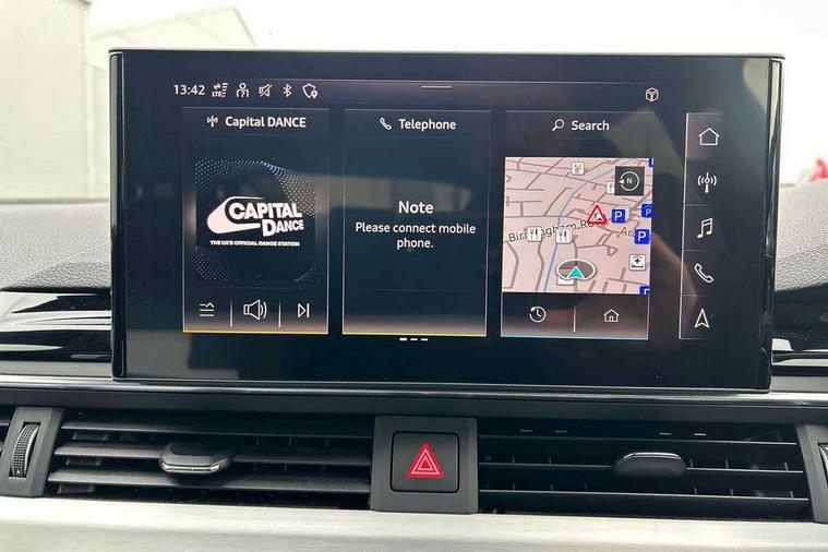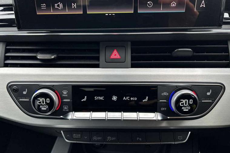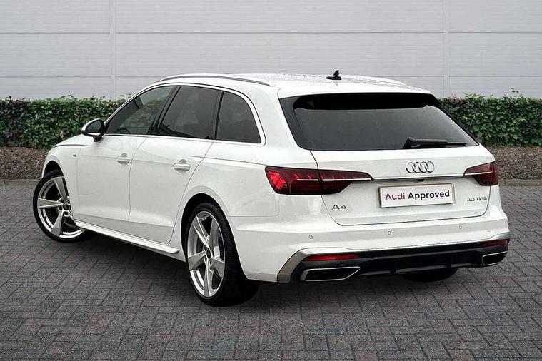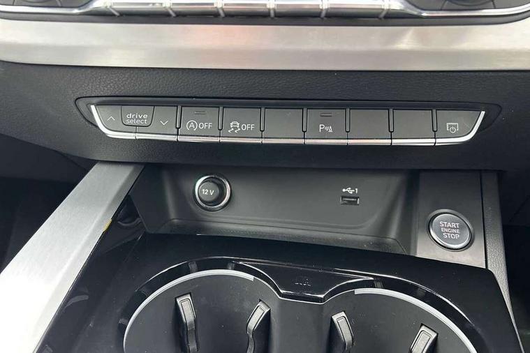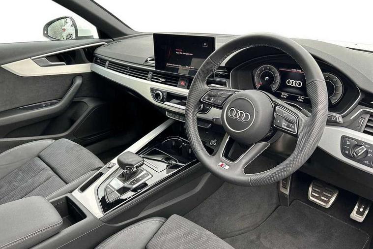 Audi connect safety and service (e-call), Audi drive select, Audi smartphone interface, Audi virtual cockpit, Automatic start-stop system with coasting functionality and efficiency programme, Bluetooth interface, Camera based traffic sign recognition, Electromechanical power steering, Email, calendar and text messages displayed via MMI, Front and rear parking sensors, Lane departure warning, MMI Navigation plus with MMI touch includes 10.1" high resolution colour MMI display, 3D map, Power operated tailgate, Rear view camera, Voice control system, 54 litre fuel tank, Sports suspension lowered by 23mm, 2 USB charging ports, 8 passive loudspeakers, DAB digital radio reception, Aluminium roof rails, Auto dimming rear view mirror, Body colour door handles, Body colour front spoiler lip, Body colour side sill trim, Body coloured door mirrors, Electric adjustable/heated/folding door mirrors with auto dimming, Grained matt black side air inlets with matt aluminium silver inlay, High beam assistant, Honeycomb structure radiator grille in grained matt black, LED headlights with LED rear lights + dynamic rear indicators + headlight adjustment and high beam, turning light + LED daytime running lights, LED third brake light, Matt aluminium silver tailpipe trim, Privacy glass, Rain and light sensors, Rear side wing doors, Rear wiper, S Line badges on the front wings, S line front and rear bumpers with side skirts, S Line rear diffuser in matt anthracite black with trim strip in matt aluminium silver, S Line roof edge spoiler, Variable intermittent front wash/wipe, Windscreen with acoustic glazing, 3 spoke high multi-function sports leather steering wheel grips in perforated leather with S badging including paddle shift, 4 way electric lumbar support for driver and front passenger, 40/20/40 split folding 3 rear seat bench in 3 parts with rear centre armrest, Black carpets, Black cloth headlining, Black perforated leather gearknob, Contrast stitching on seats, steering wheel and gear lever gaiter, Deluxe 3 zone electronic climate control, Electric load area cover, Front and rear head restraints, Front centre armrest, Heated front seats, Illuminated door sill trims with S logo, ISOFIX child seat mounting and top tether, Manual seat adjustment, Single front passenger seat, Stainless steel pedals and foot rest, High gloss package - A4, LED Interior light pack - A4/S4, 3 rear seatbelts, 6 airbags - Driver, front passenger, curtain and side windows, Attention and drowsiness assist, Electronic Stabilisation Control (ESC) including ABS, ASR and EDL, Hill hold assist, Multi collision brake assist, Pop-up bonnet for pedestrian protection, Pre sense city, Rear door child safety locks, Seatbelt monitoring, Warning triangle and first aid kit, Anti theft alarm, Anti theft wheel bolts, Central locking, Keyless Go, Matt brushed aluminium inlays, Tool kit, Tyre repair kit,