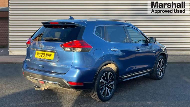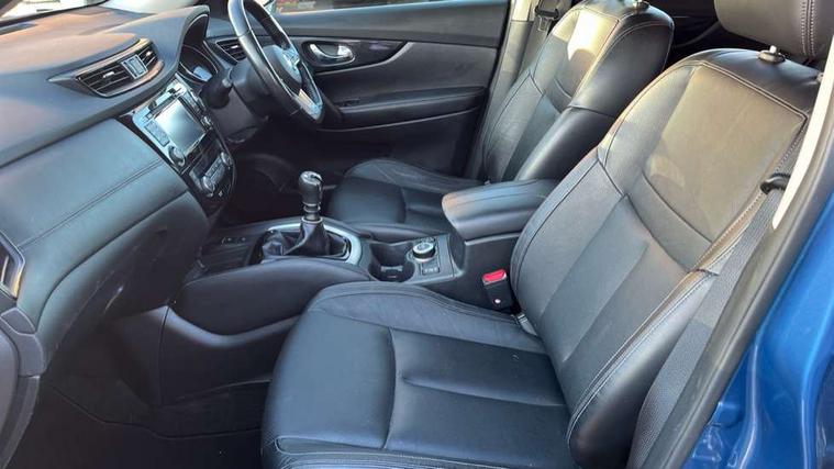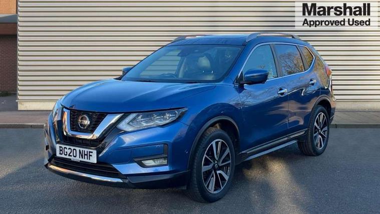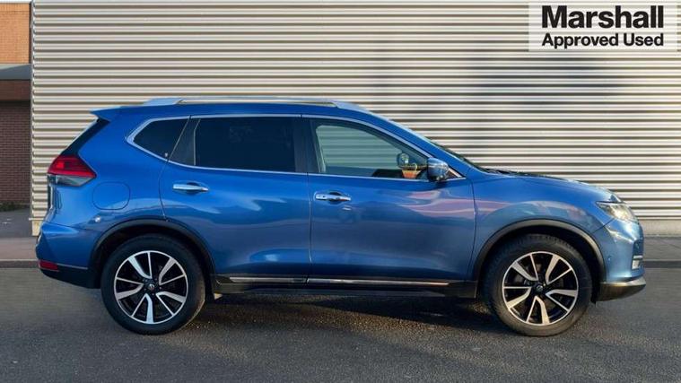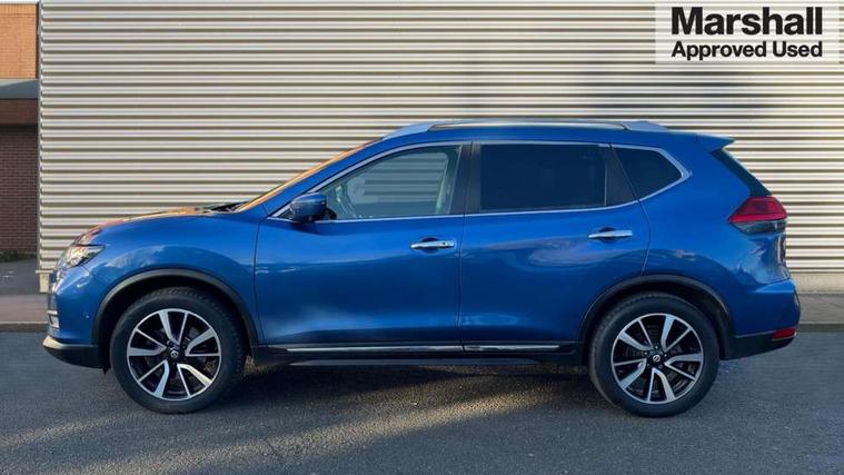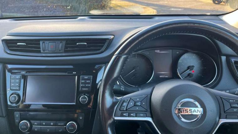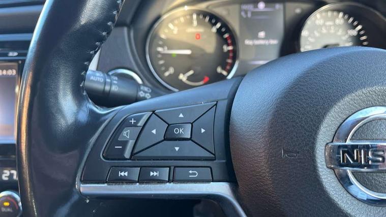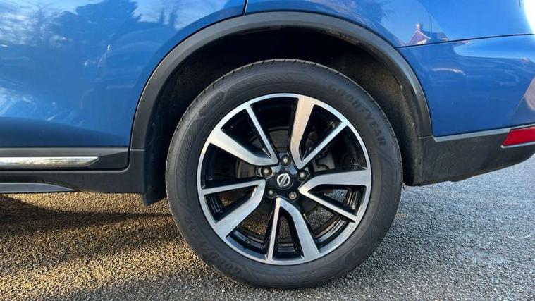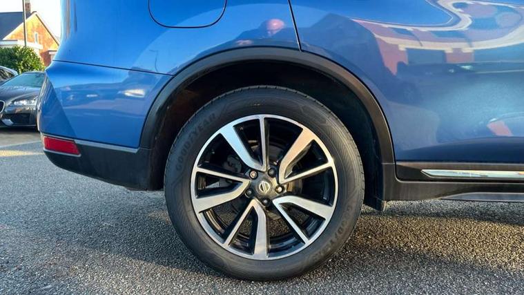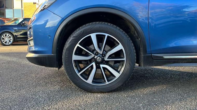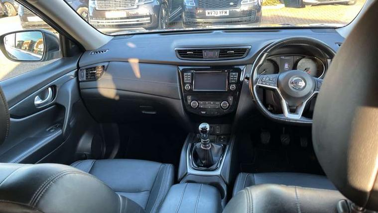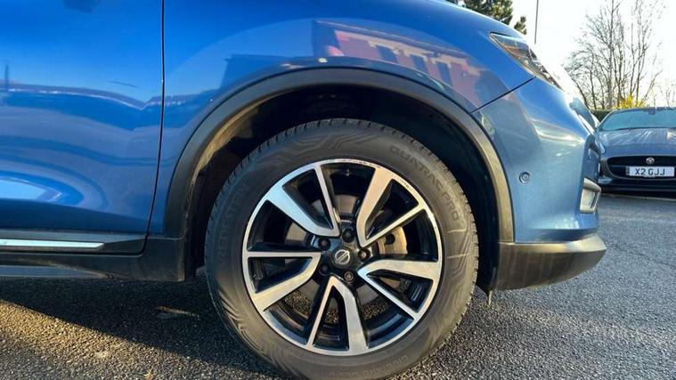 5" TFT driver information centre, Automatic tailgate opening, Blind spot monitoring, Bluetooth phone integration system, Driver attention alert system, Front and rear parking sensors, Intelligent around view monitor, Intelligent parking assist, Lane departure warning system, Moving object detection, Nissan connect evo 7" touchscreen navigation and entertainment system, PAS, Push button start, Stand still assist auto hold function, Traffic sign recognition, Trip computer, Nissan chassis control (intelligent ride control, intelligent trace control, intelligent engine brake), 6 speakers, DAB Digital radio, Radio/CD, Smartphone apps, Steering wheel mounted audio controls, USB/aux input socket, Adaptive front lighting system, Anti dazzle rear view mirror, Automatic headlights, Automatic rain sensing wipers, Black honeycomb front grille, Body colour door mirrors, Chrome door handles, Chrome side mouldings, Chrome window surround, Electric folding door mirrors, Electric heated door mirrors, Front and rear electric windows, Front fog lights, LED daytime running lights, LED Headlights, Panoramic sunroof with one touch shade, Rear privacy glass, Satin silver roof rails, Shark fin roof aerial, 3 rear headrests, 60/40 split rear bench seat, Centre console storage box/armrest, Configurable luggage board system, Driver's electric lumbar adjustment, Dual zone climate control, Electric adjustable front seats including height adjust, Front and rear door pockets with bottle holders, Front cupholders, Front/rear armrests, Heated front seats, Heated rear seats, Height adjustable front headrests, Individual rear reading lights, Isofix child seat attachment, Leather D shaped steering wheel, Leather steering wheel and gear knob, Pollen filter, Tilt/telescopic adjustable steering wheel, 3 point seatbelts on all seats, 6 airbags - Driver, front passenger, curtain and side airbags, ABS, Child locks on rear doors, EBD + Brake Assist, Electric parking brake, ESP + traction control, Intelligent emergency braking with pedestrian recognition, Seatbelt warning, Tyre pressure monitoring system, Immobiliser, Intelligent Key, Remote central locking, Thatcham Cat.1 alarm, Full size spare wheel,