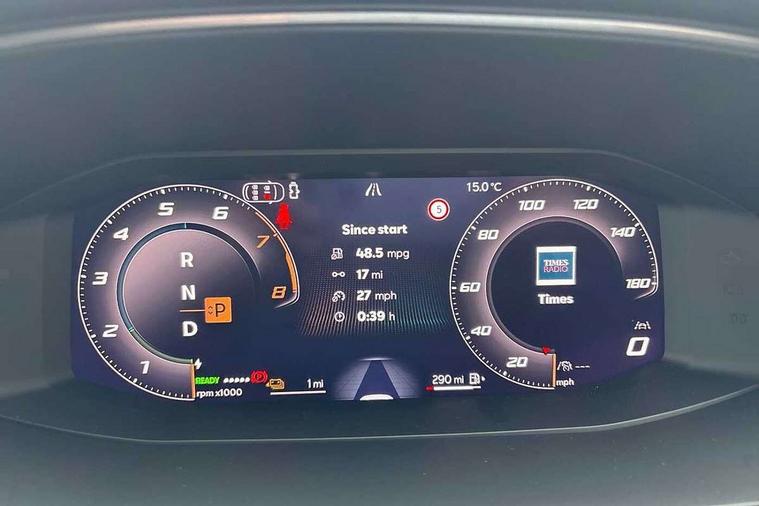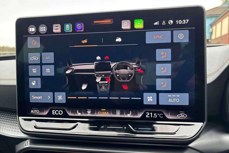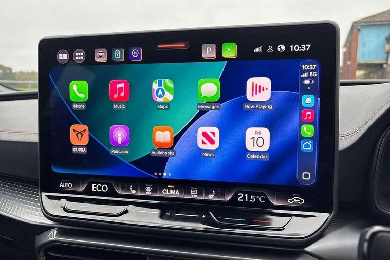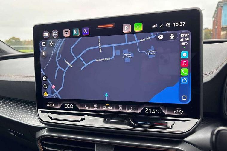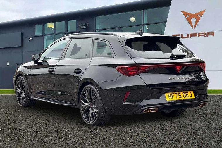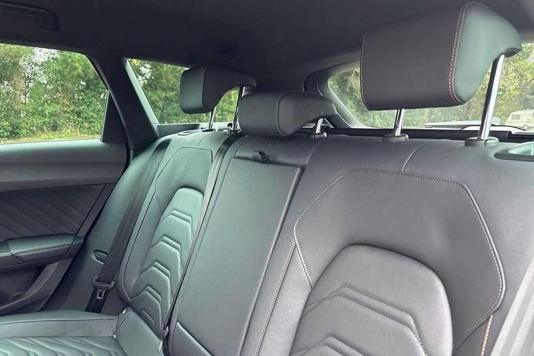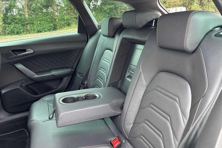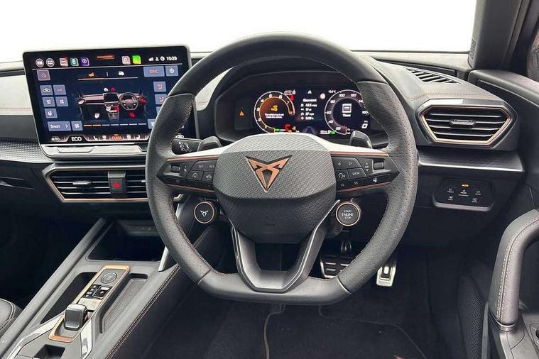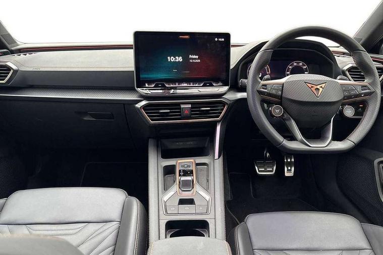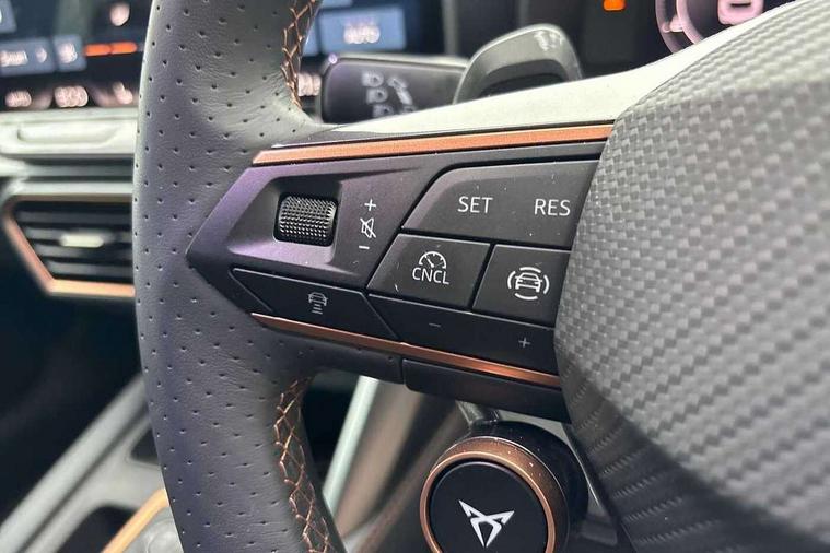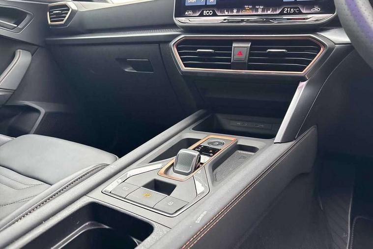 Adaptive cruise control with follow-to-stop and speed limiter, CUPRA drive profile selection with (Comfort/Performance/Individual), throttle response and gearshift mode, Digital cockpit, Driver alert system, Dynamic road sign display, E-call, Four x USB Type C ports (2 in front and 2 in rear), Front and rear parking sensors, Front assist with forward collision warning braking reaction to vehicles, pedestrians and cyclists, Front cross traffic assist, Full link smartphone integration with Mirror Link, wireless Apple CarPlay and wired Google Android Auto, Intelligent park assist, Lane change assist with emergency assist, Lockable tailgate, Rear view camera, RPM, trip computer, outside temp gauge, instrument light brightness, low fuel warning light, lights on reminder, gearshift indicator, Service interval indicator, Side and exit assist, Start/stop system with regenerative braking, Virtual pedal with electric tailgate, Wireless phone charger, 10 amp mode 2 charging cable, 16 amp mode 3 charging cable, Auxiliary input socket, Auto dimming rear view mirror, Black roof spoiler, Body colour door handles, Body coloured bumpers, Cupra matrix LED ultra headlight with variable light distribution, high definition LED w/signature w/ceremony, Cupra side skirts painted in obsidian black, Cupra sports bumpers, Dark tinted rear windows, Electric front/rear windows, Electrically adjustable, heated and folding door mirrors, Gloss black roof rails, High beam assist, High-resolution matrix beam plus digital projection, LED front fog lamps with cornering function, LED rear fog lamp, Rain sensing wipers, Rear diffuser with copper simulated exhaust pipes, Rear side wing doors, Rear wash/wipe, Separate daytime running light with automatic headlight control and coming home feature, Third brake light, Welcome light with logo projector in door mirrors, 12v power supply in centre console, 3 seat bench in 2nd row, 5 headrests, 60/40 split rear bench seat with armrest, Ambient lighting (glovebox, footwell, ambient lighting multicoloured), Black headlining, Cupra sports pedals, CUPRA Supersports, heated steering wheel with satellite buttons, Electrically adjustable driver seat and lumbar support with memory function + manually adjustable passenger seat, Front and rear reading lights X 4, Front centre armrest, Heated front seats, Height/reach adjust steering wheel, Illuminated interior front door sills, Interior wraparound lighting, ISOFIX points in outer rear seats with top tether anchorage points, Leather upholstery, Single front passenger seat, Sliding boot cover, Storage pockets on rear of front seats, Sunvisors with illuminated mirror, Three zone climate control, Dynamic and comfort pack - Leon Cupra, Media system plus with 12.9" display + navigation pack - Leon Cupra, 3 point seatbelts on all rear seats, ABS, Brake control system - ESC and brake booster, Child proof door locks, Cupra black brake calipers, Disc brakes in front, Driver and front passenger airbags with front passenger airbag de-activation, front side and curtain airbags, Electronic parking brake, Hill hold control, Pre-crash front and rear seat belt tensioner, window closure and hazard lights, Rear disc brakes, Seat belt reminder for front and rear seats, Tiredness recognition system, Tyre pressure monitoring system, Anti theft alarm system with interior monitoring in cab, backup horn and towing protection, KESSY Advanced - Keyless start, keyless entry, Locking wheel bolts, Chrome and copper interior detailing, 19" Sport Matte black alloy wheel, Breakdown kit, Tool kit,