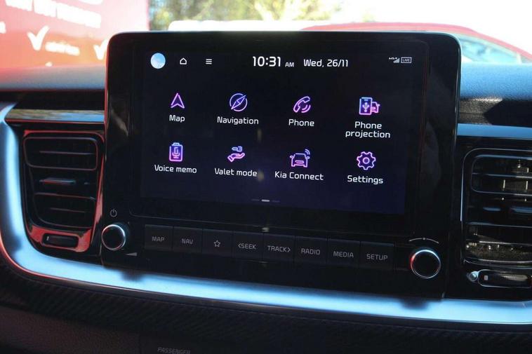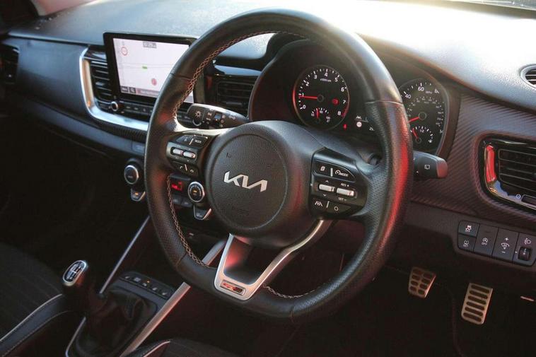 4.2" supervision colour cluster display, 8" touchscreen navigation, Apple car play/Android Auto with voice control, Blind spot collision warning, Cruise control + speed limiter, Drive mode selector, Electric power steering, Emergency call service, Emergency stop signalling system, External temperature display, Forward Collision-Avoidance Assist (FCA) - City/Pedestrian/Cyclist, Front parking sensors, Intelligent speed limit warning, Lane keeping assist system (LKAS), Driver attention warning (DAW) and High beam assist (HBA), Rear parking sensor, Reversing camera system, Trip computer, Intelligent Stop and Go, Audio system with 6 speakers, Bluetooth with music streaming, Front USB port, Steering wheel mounted controls, All round electric windows with drivers auto up/down function, Auto dimming rear view mirror, Automatic defog system, Automatic headlights control, Black side sill, door garnish and wheel arch trims, Black/body colour bumpers, Body coloured exterior door handles, Chrome side window trim, Electrically adjustable/heated/folding door mirrors with LED indicators, Front and rear silver skid plates, Gloss black door mirrors with matt black lower housing, GT-Line body kit, Headlight levelling device, Heated rear window, High gloss black and satin radiator grille, LED Bi-function projection headlights with static bending, LED daytime running lights, LED front fog lights, LED position light, LED rear combination lights, Privacy glass - Rear windows and tailgate, Rain sensing front wipers, Rear fog lights, Rear side wing doors, Rear wash/wipe, Roof coloured rear spoiler with high mounted braking light, Roof rails, Shark fin antenna, Solar windshield glass, Speed variable front aeroblade wipers, Tinted glass, Welcome and follow-me home light functionality, Windscreen Washer Level Warning, 12V power point front, 3 seat bench in 2nd row, 60/40 split folding rear seat, Air filter, All-round height adjustable headrests, Aluminium pedals, Automatic air conditioning, Centre armrest storage box, Centre console with cupholders, D-Cut perforated leather trimmed steering wheel, Dash illumination dimmer switch, Driver's seat height adjuster, Front and centre cabin lights, Front and rear door map pockets with bottle holder, Gear shift indicator, Glovebox illumination, GT-Line cloth/faux leather upholstery, Heated front seats, Heated steering wheel, ISOFIX Child seat top tethers and anchor fixings outer rear seats, Leather trimmed gearshift, Luggage area light, Luggage area parcel shelf, Luggage net, Luggage net with hooks, Overhead console lamp, Overhead console with sunglasses cases, Passenger front seatback pockets, Passenger seat height adjuster, Rear USB charging port, Satin chrome interior door handles, Single front passenger seat, Sunvisors with vanity mirror illumination (Driver and front passenger), Tilt/telescopic adjustable steering wheel, ABS with Electronic Brakeforce Distribution (EBD) and Brake Assist System (BAS), All round 3-point seatbelts, Electronic stability control (ESC) and vehicle stability management (VSM), Front passenger airbag cut-off switch, Front seatbelt pretensioners + load limiters, Height adjustable front seatbelts, Hill start assist control (HAC), Impact sensing auto door unlocking, Manual child lock in rear doors, Rear seat Occupancy alert, Seatbelt reminder warning, Twin curtain airbags, Twin front airbags, Twin front side airbags, Tyre pressure monitoring system, Alarm system, Door deadlocks, Engine immobiliser, Locking wheel nuts, Smart key with engine start/stop button, Speed sensitive auto door locking, Visible vehicle identification number, High gloss black centre fascia, 17" GT-Line alloy wheels, Tyre mobility kit,