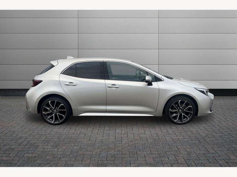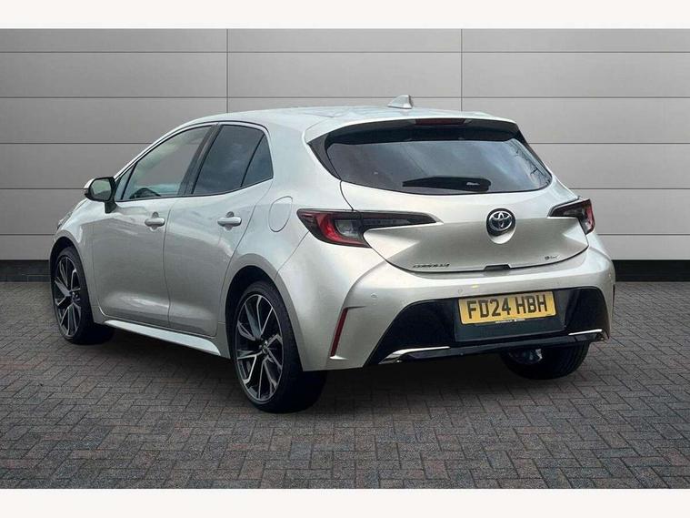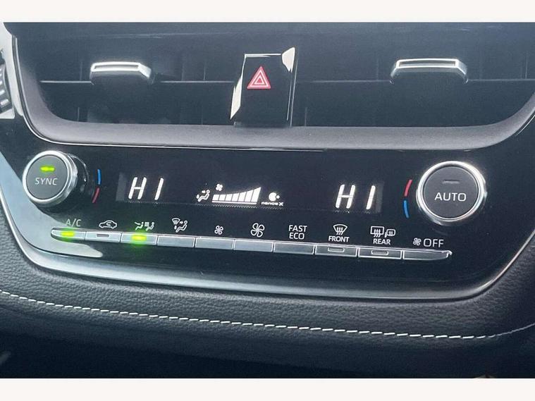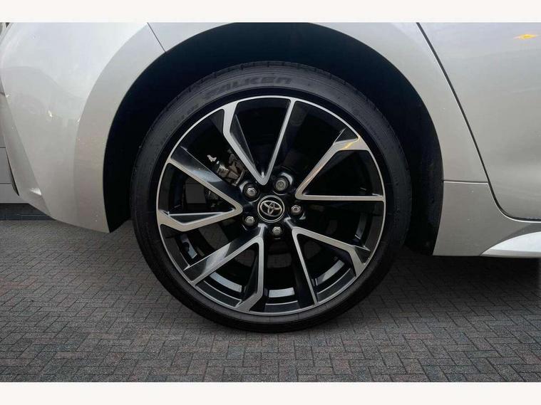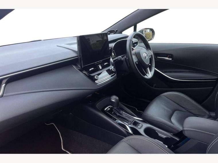 10.5" Multimedia display screen, Blind spot monitor and safe exit assist, Bluetooth telephone connectivity, Connected car functionality upgrade, tracker, remote status and e-care, Drive mode select (Eco, Normal), E-call, Electrically assisted power steering, EV drive indicator, Front and rear parking sensors with auto brake, Full Digital 12.3" TFT Digital Combimeter, Head up Display, Key reminder warning, Lane Departure Alert (LDA) switch on steering wheel, Memory on adjustable speed limiter, MyT connected services, Proactive driving assist (PDA), Rear cross traffic alert, Reversing camera, Smart entry and push button start, Smartphone integration with Apple CarPlay and wired android auto, Tailgate, Toyota remote services, Toyota smart connect navigation, Wireless charger, Gasoline particulate filter, Vehicle Stability Control (VSC), AM/FM radio, DAB Digital radio, Front USB-C in centre console, Front USB-C in dashboard, JBL Premium sound system with 8 speakers, Rear USB-C device charger, Smart voice assist/ Voice recognition, USB and Aux in connectors + 12V front outlet, Adaptive high beam system (AHS), Anti-jam protection on power windows, Auto headlight levelling system, Auto up and down function on all power windows, Automatic folding mirrors, Automatic headlights with high beam assist, Black centre and side air vents, Black metallic meshed front grille, Black toyota logo in front, Body coloured bumpers, Body coloured door mirrors, Body coloured front spoiler, Body coloured outside door handles, COROLLA alloy door scuff plates, Electrochromatic mirror, Follow me home headlights, LED daytime running lights, LED front fog lights, LED High mounted stop light, LED multi beam headlights, LED rear combi lights with LED lightguide, Noise reduction layer on windscreen, Piano black diffuser, Power adjustable heated door mirrors, Power front windows, Power rear windows, Privacy glass with UV filter, Rain sensing wipers, Rear bumper decoration with chrome plated inserts, Rear side wing doors, Rear under guard with chrome ornament, Rear window defogger, Rear window wiper, Reverse tilting door mirrors, Roof spoiler, Satin chrome insert on front air vents, Satin chrome insert on front door assist grips, Satin chrome inserts on rear passenger air vents, Shark fin antenna, Tailgate release with push button, Time adjustment on intermittent wiper, Turning signal integrated indicators in door mirrors, Unique grille pattern, Unique lower skirt, Unique side rocker with black insert, UV-filter on driver and passenger windows, 2 Shopping bag hooks in luggage compartment, 3 rear headrests, 3 seat bench in 2nd row, 3 spoke leather steering wheel with satin insert + gear knob, 4 tie down hooks in luggage compartment, 60/40 split folding rear seat, Adaptive cruise control (ACC) switch on steering wheel, Adjustable speed limiter switch on steering wheel, Audio, multimedia and telephone switches on steering wheel, Black armrest on centre console box, Black gear shift console, Boot light, Boot underfloor storage, Centre room light, Driver and front passenger personal light, Driver and passenger assist grip, Driver and passenger seatback pockets, Driver and passenger sun visor with mirror and light, Dual zone automatic air conditioning with ECO mode switch, Front and rear cup and bottle holders, Front door pockets, Front head restraints, Front passenger seat, Front sliding synthetic leather armrest, Heated seats, Illuminated entry system in room lamp, ISOFIX seat fixing (2 fixings on rear outer seats), Leather gear shift with satin chrome on gear shift console, Manual height adjustable for driver and front passenger seat, Manually tilt with sliding driver and front passenger seat, Nanoe-X air purifier, Paddle shifts, Parcel shelf, Perforated leather upholstery, Pollen filter, Power window switches with satin chrome inserts, Rear air conditioning, Rear armrest with 2 cupholders, Rear passenger coat hooks (2), Remote air conditioning, Satin chrome inside door handles, Satin chrome surround on heater control panel, Satin chrome surround on speedometer, Sliding armrest on centre console box, Slow opening glovebox with lights, Sports seats, Textile floor mats, Tilt/telescopic steering column, Voice recognition switch on steering wheel, Whiplash Injury Lessening (WIL) feature (active headrest) for seats, White ambient lighting on open tray and front cup holder, Toyota safety sense 3 pack - Corolla, 3x3 point rear seatbelts, Adjustable driver and front passenger seat belt extender to top anchor point, Anti lock braking system + Electronic brake force distribution, Brake assist function, Child locks on rear doors, Downhill Assist Control (DAC), Electronic parking brake, Emergency brake light signal (EBS), Front passenger airbag on/off switch, Front seatbelt reminder, HAC - Hill start assist control, Rear seat belt reminder, Seatbelt pretensioners and force limiters, Supplemental restraint system (SRS) 7 airbags - dual driver, dual side curtain, side impact and driver knee airbags, Traction control, Tyre pressure warning system, Acoustic vehicle alert system (AVAS), Alarm with motion sensor and immobilizer, Power passenger window lock, Remote central locking + deadlocks, Satin chrome dash trim, Soft touch texture on upper dashboard, Stitching on lower dashboard, Stitching on upper dashboard, 18" Dark grey machined face 5 double spoke alloy wheels, Tyre repair kit, Unique wheel finish with red wheel cap,