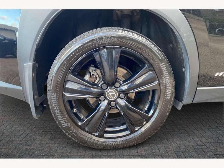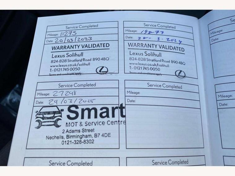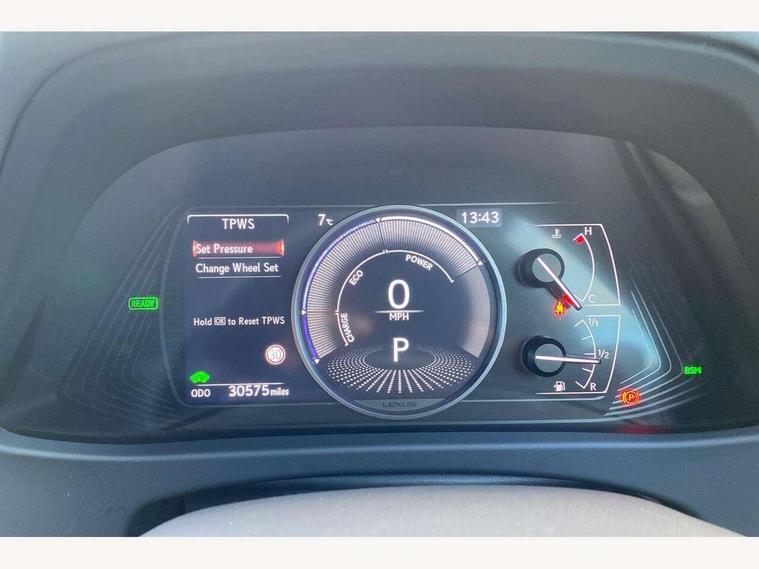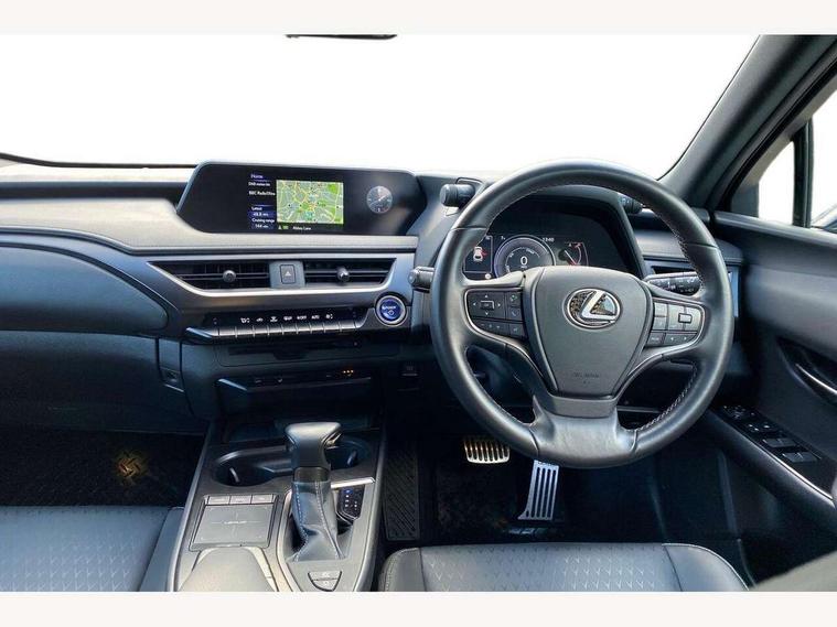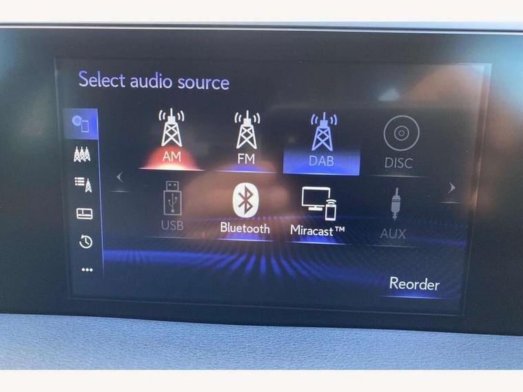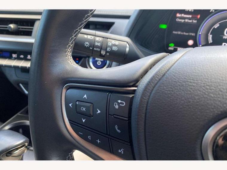 4 driving modes EV/Eco/Normal/Sport, 7" Lexus media display, 7" TFT instrument cluster, Analogue clock with GPS function, Apple car play/Android Auto, Compatible mobile phone bluetooth with audio streaming, E-call, Electric power steering (EPS) with speed sensitive features, Lane change flasher function, Lexus link connected services, Lexus safety systems + includes dynamic radar cruise control, pre collision system day and night, lane tracing assist, road sign assist, Push button start, Remote touch interface, Trip computer, Vehicle Dynamics Integrated Management (VDIM), Vehicle Stability Control (VSC), 2 front USB and 2 rear USB charging points, 6 speakers, AM/FM and DAB radio, AUX socket with VTR compatibility, CD player, Acoustic windscreen, Aero stabilising arch mouldings, Aero stabilising rear lights, Aero ventilated wheels, Bi-LED (low and high beam) headlights with Auto High Beam (AHB), Black roof drip mouldings, Black wheel arches, Body adhesive, laser screw welding and laser brazed roof structure, Body coloured bumpers, Electric adjustable/heated door mirrors, Front and rear one touch power windows, with anti-jam protection, Headlight cleaners, LED daytime running lights, LED tail lights, LED third brake light, Light green UV glass, Rain sensor windscreen wipers, Rear side wing doors, Rear wiper, Shark fin roof aerial, Single hidden exhaust pipe, Towing preparation, Variable front intermittent wipers, 12V accessory port centre console and luggage compartment, 2 cup holders in the front and rear centre console, 2 x folding shopping bag hooks in boot, 2 x sun visors with vanity mirror and lamp, 3 seat bench in 2nd row, 4 x tie down hooks in the boot, 5 headrests, 6 way driver and passenger manually adjustable front seats, 60/40 split folding rear seat, Card holder installed in driver and passengers sun visors, Centre armrest with storage, Driver and passenger door pocket, Dual zone electronic climate control + Nano-E humidity sensor, Glovebox, Illuminated entry system, Leather gear lever, Leather steering wheel, LED interior illumination, Map pockets in the rear of passenger's front seat, Premium fabric upholstery, Rear air vents with 2 USB chargers, Rear armrest with 2 cupholders, Single passenger seat, Storage tray under audio panel, Textile carpet mats, Tilt/reach adjustable steering column, Under deck storage, Under desk side storage, 2 x Isofix child rear seat restraints, 3x3 point rear seatbelts, Anti-lock braking system (ABS), BAS (Brake Assist System), Driver and front passenger 2 stage airbag, Driver and front passenger knee airbag, Driver/front passenger side airbags, EBD - Electronic brakeforce distribution, ECB (Electronically Controlled Brake System), Electric child locks, Electric parking brake, Front adjustable seatbelt anchor points, Front and rear curtain shield airbags, Front outer seatbelt+pre-tensioners, force limiter+tension reduction: 3-point with active safety link to PCS, Hill start assist control (HAC), Passenger airbag cut-off device, Rear outer seatbelt+pre-tensioners, force limiter+tension reduction: 3-point with active safety link to PCS, Centre belt w/o pre tensioner+force limiter, Secondary Collision Brake (SCB), TRC (Traction Control), Tyre pressure warning, 2 x remote key fobs, Anti theft system : Alarm instruction sensor, glass breakage sensor and engine immobiliser, Locking wheel nuts, Remote central door locking, Speed sensitive auto door locking, Two motion door lock with double lock, VIN Window etching, 17" Alloy wheels, Tyre repair kit,