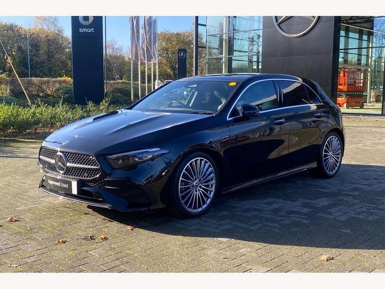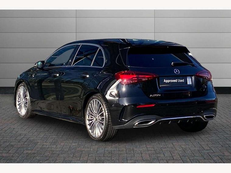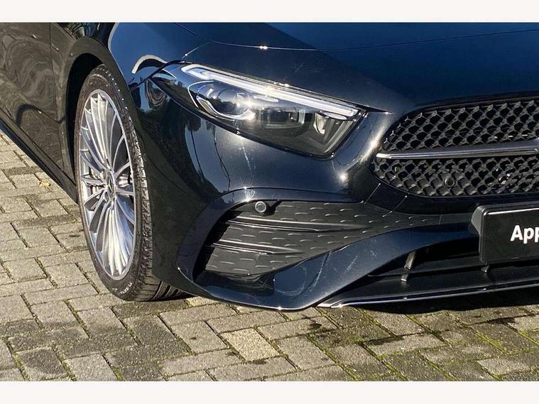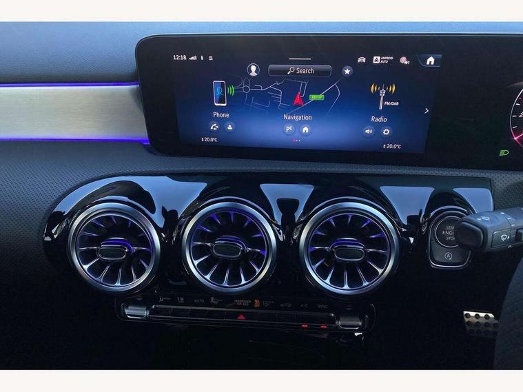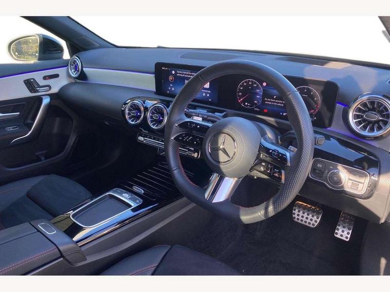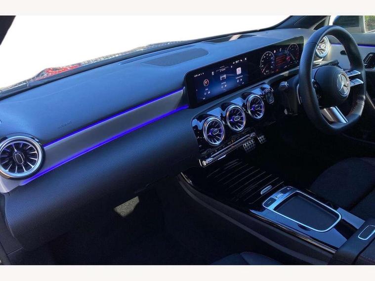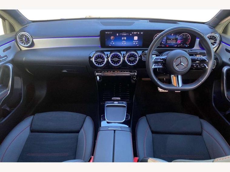 10.25 inch touchscreen central media display, 10.25" Digital instrument cluster display screen, Attention assist, Brake pad wear indicator warning light, Car wash mode, Direct steering, Direction indicators with lane change function, Dual bluetooth interfaces, DYNAMIC SELECT with a choice of driving modes (ECO, Comfort, Sport and Individual), ECO start/stop function, Engine start/stop button, Fingerprint scanner, Fluid level warning indicator for fuel, oil, coolant and washer fluid, Fluorescent jacket for driver, Hard-disk navigation, Head up Display, Hey Mercedes Voice activation, Lamp failure indicator, Mercedes me connect including emergency call system, accident recovery, breakdown and maintenance management, Mercedes me remote services, Outside temperature gauge, Owners manual in English, Pre-installation of private car share, Remote boot closing, Service indicator (ASSYST), Smartphone integration with Apple CarPlay and Android auto, Speed sensitive power steering, Tailgate, Traffic sign assist, Trip computer in multifunction display with current consumption indicator, Wireless charging, Lowered comfort suspension, DAB Digital radio, MBUX multimedia system, Mercedes Benz advanced sound system (225 W) with 10 speakers, 1 central speaker, speakers on doors, a tweeter on door, one sub woofer + boost amplifier, 4 Electric Front and Rear windows, Adaptive brake lights, AMG body styling - AMG front apron with front splitter and AMG rear apron and visible exhaust tailpipe trim elements, Body colour bumpers, Body colour door handles with chrome inserts, Body colour side skirt, Chrome beltline strips, Diamond radiator grille with pins in fine star pattern, Electric adjustable and heated door mirrors with integrated LED side indicators, Exhaust system with 2 visible tailpipe trim elements and rear apron, Headlamp assist automatic headlamp activation, Heated glass rear windscreen + timer control, LED daytime running lights, LED High level third brake light, LED tail lamp, Multibeam LED headlamps with adaptive highbeam assist and cornering function, Panoramic sliding sunroof, Privacy glass, Radio aerial, Rain sensing windscreen wipers with two sensitivity settings, Rear fog lights, Rear side wing doors, Rear windscreen wiper, 3 seat bench in 2nd row, 3 Spoke flat bottom leather multi function steering wheel with perforated leather in grip area, 40:20:40 split folding rear seats, Air conditioning - Two zone thermotronic luxury automatic climate control with display, AMG floor mats, Artico man-made leather/Microcut microfibre upholstery, Automatic child seat recognition sensor, Black air vents with surround in silver chrome, Black roof lining, Brushed stainless steel sports pedals with rubber studs, Electrically adjustable front memory seats including lumbar support and backrest inclination, Front centre armrest with stowage, Front seat backs luggage nets, Galvanished gear shift paddles on steering wheel, Height/reach adjustable steering column, Illuminated Mercedes Benz lettering front door sills with changeable cover, Interior lighting - 64 colour Ambient lighting, Interior mirror with reading lamps in black and frameless, Rear armrest with 2 cupholders, Rear head restraints, Seat occupancy sensor for front passenger seat, Single front passenger seat, Sports seats with integrated headrests, Stowage compartment in centre console with retractable cover, Sunvisors with illuminated vanity mirrors, Twin front cupholders, Light and sight package - A Class, Mirror package - A Class, Night pack - A Class, Parking pack with 360 degree camera - A Class, Seat comfort pack - A Class, USB pack plus - A Class, Winter pack - A Class, 3 rear 3 point seatbelts, ABS with Brake Assist, Active bonnet, Adaptive brake assist with hold function and hill start assist, Bonnet with power domes, Childproof locks manually operated for rear doors and electrically operated for rear power windows, Crash responsive emergency lighting, Driver and passenger head and side airbags, Drivers knee airbag, Dual stage driver/passenger airbags, Electronic parking brake, ESP curve dynamic assist, ESP with ASR, Exit warning, Front and rear seatbelt reminder, Grey seatbelts, ISOFIX and top tether child seat fixing points in two outer rear seats, Tyre pressure monitoring system, Warning triangle and first aid kit, Window airbags, Alarm system/interior protection/immobiliser, Guard 360 degree vehicle protection, Keyless entry lock/unlock, Keyless Go, Remote central locking and crash sensor with emergency opening function, Light longitudinal grain aluminium trim, 19" AMG multi-spoke light alloy wheels, aerodynamically optimised, painted in black with high sheen rim flange, Summer tyres, Tirefit sealant kit,