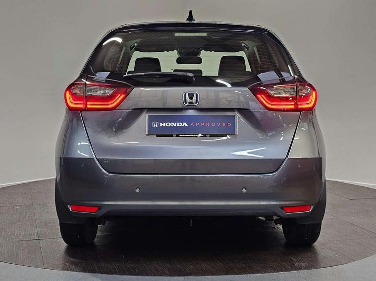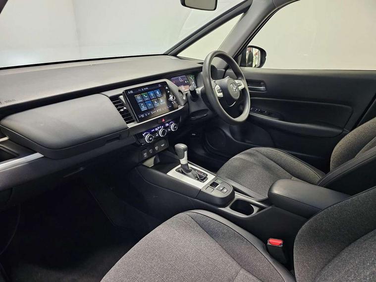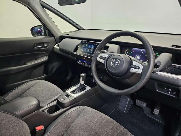 Adaptive cruise control, Adjustable speed limiter, Agile handling assist, Bluetooth hands free telephone connection, eCall emergency call system, Econ mode, Electric power steering wheel with variable gear ratio steering, Emergency stop signalling system, Forward collision warning, Front and rear parking sensors, Honda CONNECT with 9" touchscreen, AM/FM/DAB/Apple Carplay and android auto, Idle stop, Intelligent speed limiter, Lane departure warning system, Lane keep assist system, Low speed following, Multi-information display, Road departure mitigation, Traffic sign recognition, Vehicle stability assist, 'Shark fin' mobile antenna, 2x USB Front socket (1 data & 1 charge), 4 speakers, Remote audio controls on steering wheel, Aspheric door mirrors, Auto wipers, Automatic headlights with on/off timer, Coming/leaving home function, Body colour door handles, Body coloured bumpers, eHEV emblem, Electric adjustable door mirrors, Electric front windows, Electrically folding door mirrors, Heated door mirrors, High beam assist, LED daytime running lights, LED Headlights, LED rear lights, Rear side wing doors, Rear wiper, Single exhaust tailpipe, Third brake light, 3 seat bench in 2nd row, 60/40 split rear bench seat, Cargo net hooks, Climate control air conditioning, Driver and front passenger seat armrests, Driver and passenger front seat pockets, Driver's seat height adjustment, Fabric/leather upholstery, Front accessory power socket, Front head restraints, Front map lights, Front/rear courtesy lights, Isofix child seat restraint mechanism, Isofix points, Magic seat flexibility system, Plating interior door handles, Rear head restraints, Rear parcel shelf, Single front passenger seat, Sunvisors with vanity mirrors, Tilt/telescopic adjustable steering wheel, Tonneau cover, Trunk light, 3x3 point rear seatbelts, Anti-lock braking system (ABS), Brake assist function, Brake hold function, Child locks on rear doors, Collision mitigation braking system, Deflation warning system, Driver knee airbag, Driver SRS airbag (single stage inflation), Driver/Front Passenger airbags, Electric parking brake, Front and rear side curtain airbag, Front side airbags, Hill start assist, Passenger SRS airbag cut-off device, Rear side airbags, Whiplash lessening front headrests, Front seat belt with emergency locking retractor, Honda super locks, Immobiliser, Mirrors key fob operation, Remote central locking with 2 remote folding keys, Security alarm, Soft pad leather interior panels, 15" Multi apperance alloy wheels in mat berlina black, Tyre repair kit,