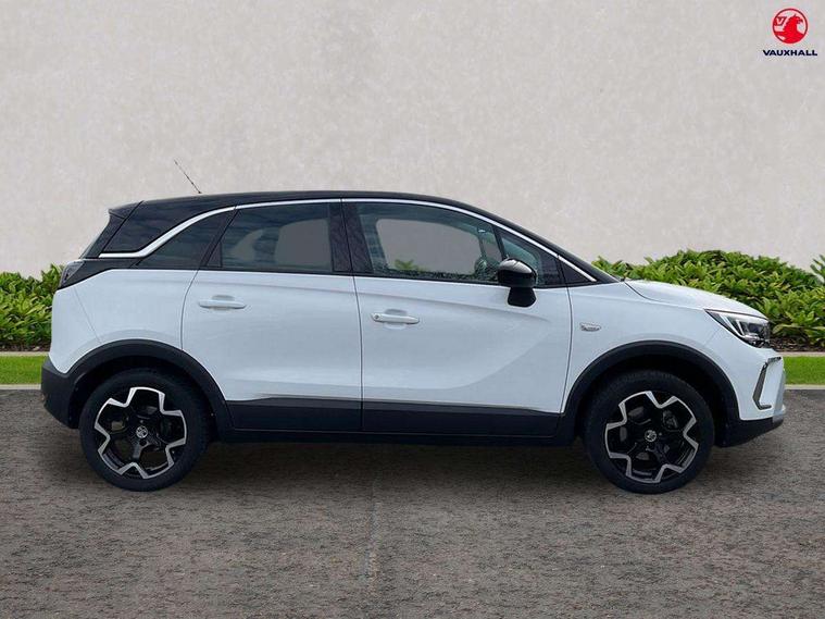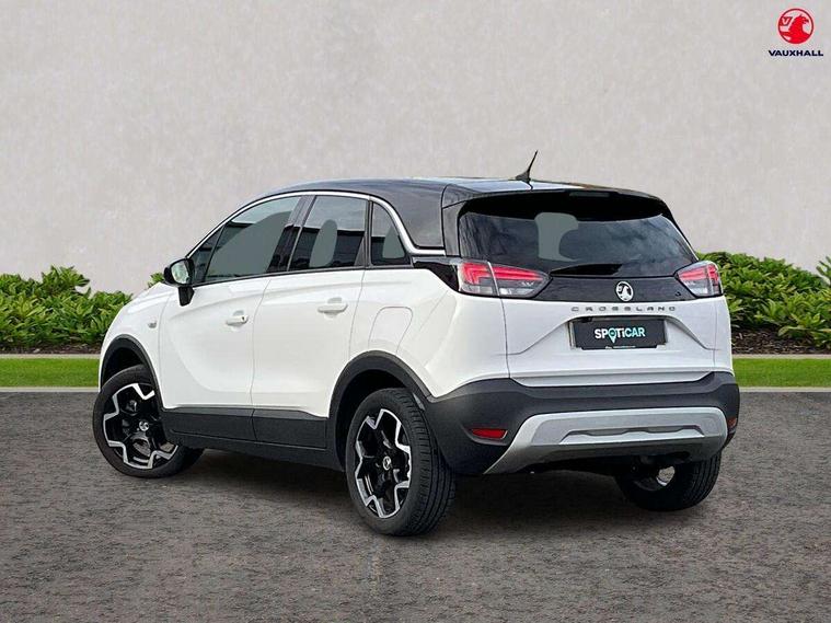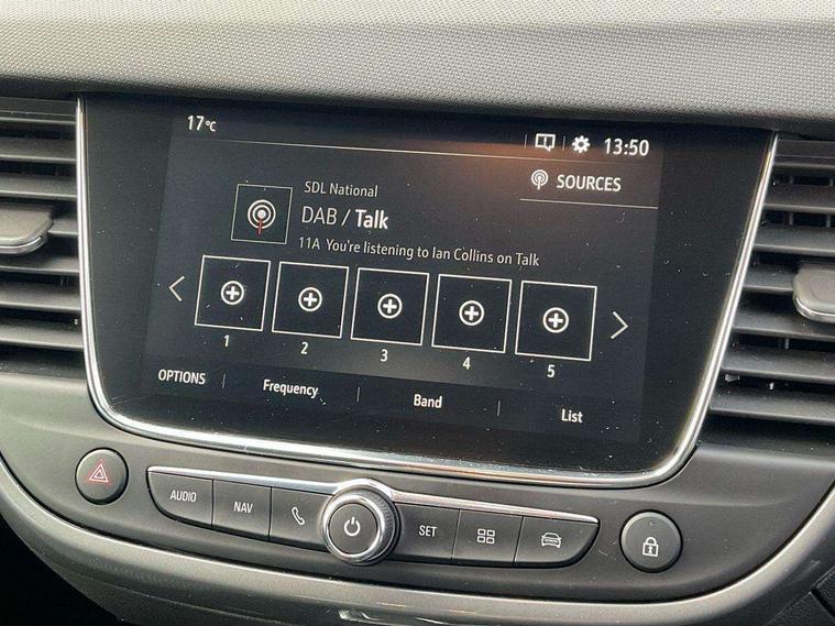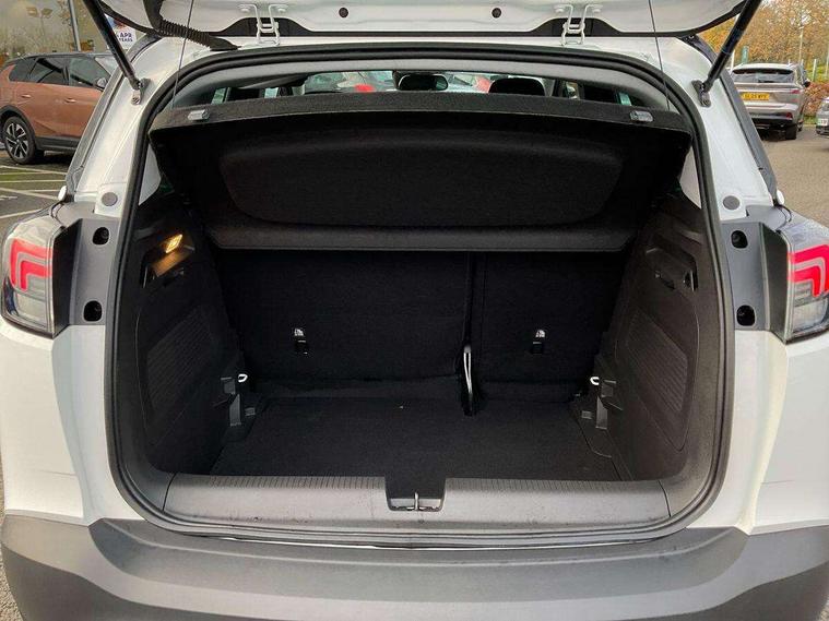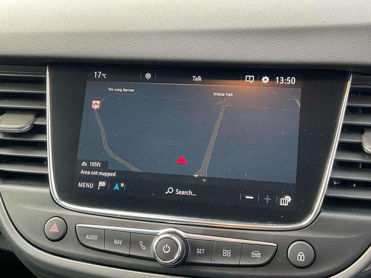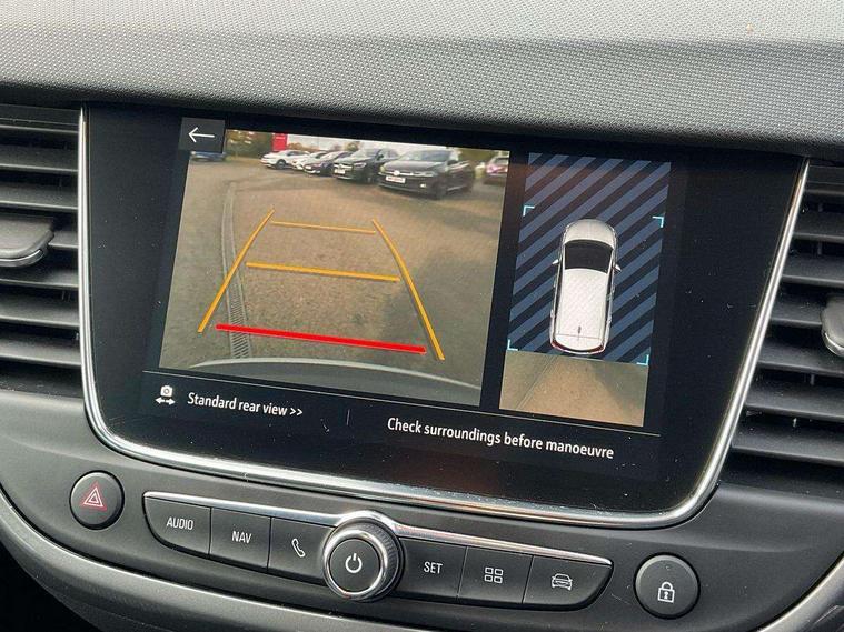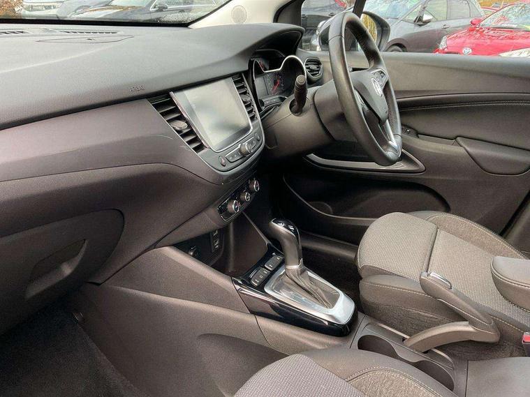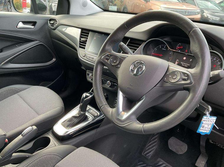 3.5" monochrome instrument colour display, Audible lights on warning, Bluetooth connectivity, Cruise control + speed limiter, Digital clock with automatic RDS time adjustment, Driver drowsiness alert system, E-call, Forward collision warning, Instrumentation - Speedometer, rev counter, low fuel gauge warning light + water temperature gauge warning light, shift up/down indicate light, Lane departure warning system, Multi function trip computer, Multimedia sat nav pro with 8" colour touchscreen, AM/FM, Bluetooth streaming, Bluetooth mobile phone portal, apple CarPlay/Android Auto + 6 speakers, Outside temperature display with ice warning, Refridgerant low indicator, Service interval indicator, Speed sensitive power steering, Speed sign recognition, Vauxhall connect, Front wheel drive, 2 x USB connections, DAB Digital radio, Steering wheel mounted audio/phone/cruise controls, 2 speed wipers/wash wipe/intermittent wipe, Alloy effect front and rear skid plates, Automatic anti dazzle rear view mirror, Automatic headlamp levelling system, Automatic high beam control with cornering light, Automatic lighting control, Black door mirror housings, Black radiator grille with chrome bar, Black roof, Body colour door handles, Body colour front and rear bumpers, Chrome effect upper window moulding, Dark tinted rear side windows + tailgate window, Electrically adjustable and heated door mirrors, Front power windows with express up/down and anti-pinch function, Hazard warning lights, Headlamps for left side traffic, Heated rear window, Integrated tailgate spoiler, Intermittent rear wash/wipe, LED daytime running lights, LED front fog lights, LED Headlights, LED side repeat indicators, LED tail lights, Rain sensitive windscreen wipers, Rear fog lights, Rear power windows with express up/down and anti-pinch function, Rear side wing doors, Rear wing door, Reversing light, Side window demist vents, Solar heat absorbing windscreen and windows, Third brake light, Welcome lighting, Windscreen demist vents, 12v power outlet - front, 2 way adjustable front passenger seat, 2 way front passive headrests, 3 rear seats, 3 spoke flat bottomed leather covered steering wheel with bezel decoration, 4 way electrically adjustable lumbar support for drivers seat, 60/40 split folding rear seat backrest, Adjustable rear seat backrest, Air recirculation facility, Ambient lighting, Anti submarining ramps in front seats, Cabin particulate filter - removes dust, airborne particles and pollen, Centre console, Driver and front passenger illuminated vanity mirrors with flip up covers, Driver's seat armrest, Drivers ergonomic active seat with 8 way manual adjustable driver seat , height, reach and backrest, Dual zone electronic climate control, Fade up/fade down on interior lighting, Four adjustable facia vents, Front door pockets with bottle holders, Front map reading lights, Fully carpeted luggage area, Glovebox with lid, Height adjustable front/rear head restraints, Illuminated load area, Interior courtesy light operated by all doors, Isofix system on outer rear seats, Jet black premium leather side bolsters, Luggage compartment cover, Multi-speed fan with Illuminated control, Open storage compartment in centre console, Passenger assist handles, Reach + rake adjustable steering column, Rear centre headrest, Rear door pockets with bottle holders, Rear floor ventilation ducts, Rear reading lights, Satin chrome effect bezel on steering wheel, Seat cushion extension, Single front passenger seat, Sparkle cloth/vinyl upholstery, Storage pockets on front seat backs, Two drinks holders in centre console, Rear view camera plus pack - Crossland, Winter pack - Crossland, 3x3 point rear seatbelts, 6 airbags - Driver and co-driver front, front side, head curtain roof airbags, front and rear row coverage airbags, ABS, Automatic emergency braking with pedestrian detection, Child locks on rear doors, CSC - Cornering stability control, Deactivate switch for side impact airbags, Deformation zones front and rear, Dual seatbelt pretensioners on front seats, EBD - Electronic brakeforce distribution, Energy absorbing steering column, Engine drag torque control, ESP + traction control, Front and rear seatbelt unfastened audible warning and warning light, Front side impact airbag, Hill start assist, Hydraulic Brake Assist (HBA), Hydraulic brake boost, Inertia reel lap and diagonal seatbelts for all seats, Passenger airbag deactivate switch, Pedestrian detection, Rear seat belt pretensioners, Reinforced passenger safety cell, Seatbelt load limiter, Side impact protection beams, Smart seatbelt reminder for front and rear seats, Tyre pressure monitoring system, 2 remote folding keys, Electronically protected audio equipment, Engine immobiliser, Locking wheel nuts, Remote central deadlocking, Remote control central locking activation switch on driver door, Remote control central locking operates on doors, tailgate and fuel filler flap, Remote security alarm system, Visible vehicle identification number, Black facia with silver trim insert, Black trim inserts on front doors, Cluster black with chrome rings, 17" five twin spoke diamond bi colour alloy wheels,