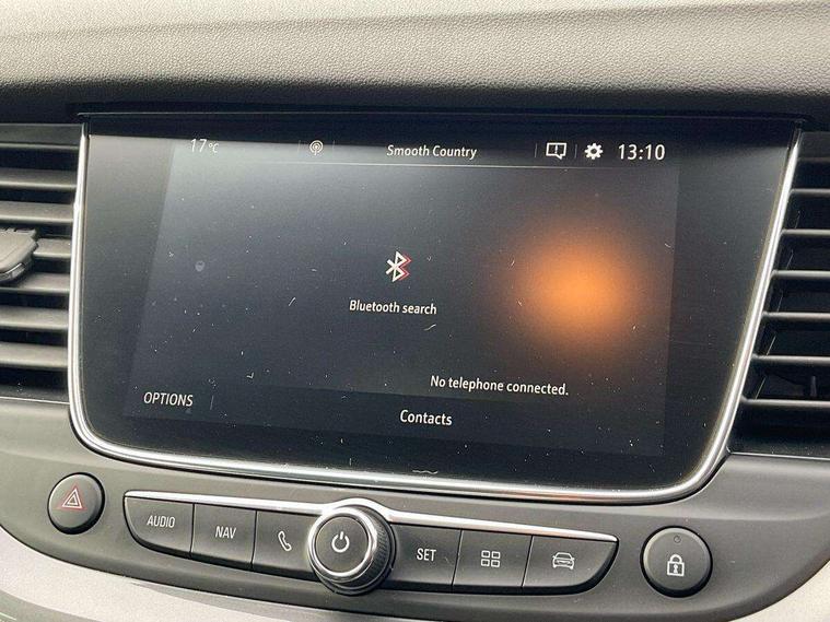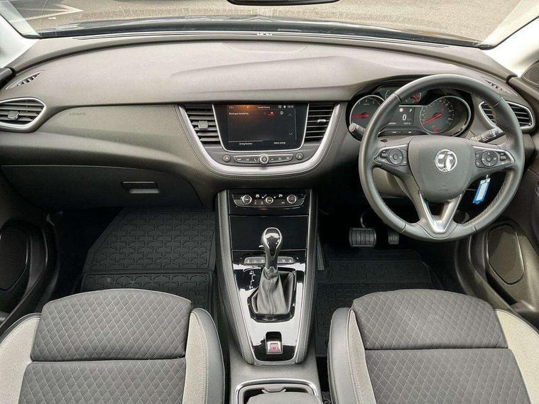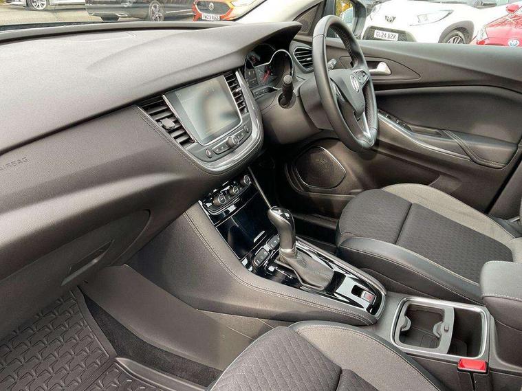 3.5" colour information display, Cruise control with speed limiter and intelligent speed adaption, Digital clock, Digital water temperature gauge with warning light, Fuel gauge with low fuel level warning light, Gearshift up/down indication light, Multi function trip computer, Nav 5.0 sat nav system + 8" colour touchscreen+DAB radio+RDS traffic programme+European mapping+USB+bluetooth+bluetooth audio streaming+Apple CarPlay, Outside temperature display, Rev counter, Service interval indicator, Speed sensitive electric power assisted steering, Speed sign recognition, Speedometer, Steering wheel mounted audio controls, Alloy effect front and rear skid plates, Black roof and door mirrors, Body colour door handles, Body colour door mirrors, Chrome effect bar on front grille, Chrome side window trim, Collapsible windscreen wipers, Door to door illumination, Electrically adjustable and heated door mirrors, Electrically operated front and rear windows with safety auto reverse and one touch up/down facility with heated rear window, Front fog lights, Gloss black finish B pillar, Hazard warning lights, High level centre rear brake light, Intermittent rear window wash/wipe, LED daytime running lights, LED tail lights, Rear fog lights, Rear spoiler, Reversing lights, Side protection mouldings, Side window demist vents, Sound absorbing windscreen, Tinted windows, Two speed windscreen wipers with variable intermittent wipe, Welcome lighting, Windscreen demist vents, 12V electrical accessory socket in front, 12V electrical accessory socket in luggage compartment, 220V power outlet behind front seats, Alloy effect door sill covers, Ambient centre console downlighter, Ambient interior lighting, Ambient lighting in front doors, Anti submarining front seats, Centre rear head restraint, Chrome effect interior door handles, Covered storage compartment in centre console and in driver armrest, Driver's centre armrest, Driver/passenger sunvisors with illuminated vanity mirrors, Electronic dual zone climate control with air conditioning + advanced predictive logic control using sensor + Charcoal filter + illuminated controls, Front and rear passenger assist handles, Front door pockets with 2.6 litre capacity, Front seat back storage pockets, Fully carpeted luggage area, Harlekin cloth upholstery, Heated rear windscreen with timed cut-off, Height adjustable and removable front/rear head restraints, Interior courtesy light operated by all doors, Isofix attachment on front seat, Isofix system on outer rear seats, Luggage compartment cover, Reach + rake adjustable steering column, Rear door pockets with 1.8 litre capacity, Rear reading lights, Two drinks holder in centre console, Ventilated glove box with lid, Safety pack - Grandland X, Sight and light pack - Grandland X, Versatility pack - Grandland X, 3x3 point rear seatbelts, Anti-lock braking system (ABS), Automatic emergency braking system, Child proof locks on rear doors, CSC - Cornering stability control, Deactivation switch for front passenger front and side impact airbags, Deflation detection sensors, Deformation zones front and rear, Driver/Front Passenger airbags, Dual seatbelt pretensioners on front seats, EBD - Electronic brakeforce distribution, Electronic parking brake, Energy absorbing steering column, Engine drag torque control, Front and rear outer seat belt pre-tensioners, Front and rear seatbelt reminder, Front seat side impact airbags, Full size curtain airbags for driver, front passenger and outer rear passenger seats, Hill start assist, Hydraulic Brake Assist (HBA), Inertia reel lap and diagonal seatbelts for all seats, Reinforced passenger safety cell, Seatbelt load limiter, Side impact protection beams, Switchable electronic stability programme, Traction control, Tyre pressure monitoring system, Engine deadlock and immobiliser, Locking wheel nuts, Remote control central locking, Remote security alarm system, Visible vehicle identification number,