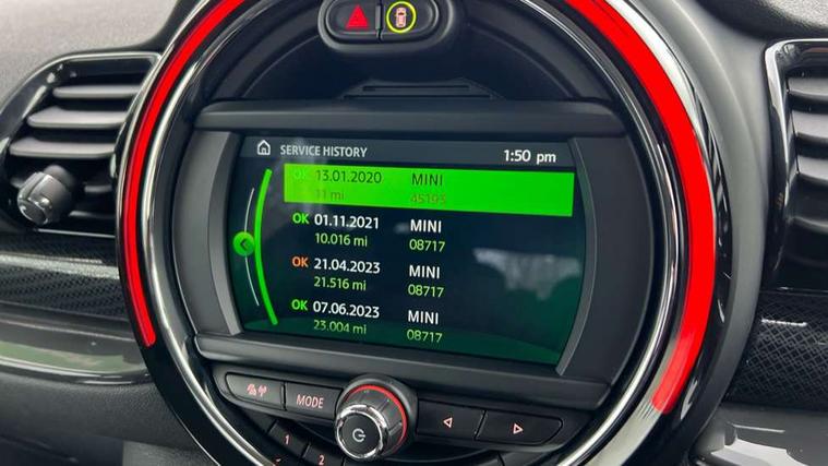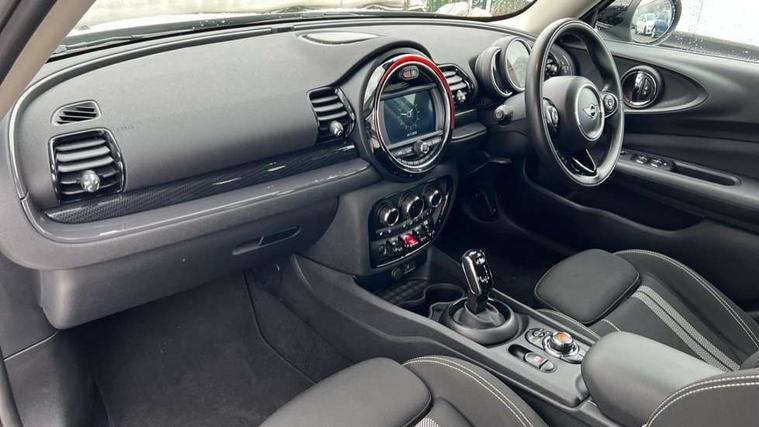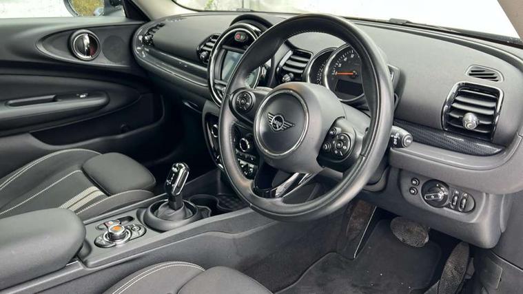 Active Guard incl speed limiting and lane departure functions with auto steering, and front collision warning with brake intervention, Automatic start/stop function with brake energy recuperation, Compatible mobile phone bluetooth with audio streaming, Electro-mechanical speed dependant steering assistance, Instrument cluster, Mini E-call, MINI TeleServices, On board computer, Double Vanos system, Fully variable valve control, High precision injection, Performance Control, Steptronic transmission with double clutch, FM tuner and DAB digital radio, Bonnet scoop, Chrome border honeycomb structure radiator grille with S badge, Chrome fuel filler cap, Dynamic brake lights, Electric windows, Heated rear window, Heated windscreen washer jets, LED rear light with union jack design, Metal door sill strips with Cooper S imprint, Model logo, Model logo on rear doors, Radiator grille, Rain sensor with auto headlights, Rear fog lights, Rear window wiper, Side scuttle panel with integrated indicator, Split rear doors, Sun/heat protection glass, Twin exhaust tailpipe, White indicator lenses, 12V Accessory socket in centre console, 3 spoke sport leather steering wheel + limiter function and audio controls, 360L luggage compartment capacity, 4 lashing eyes in luggage compartment, 60/40 split folding rear seat, Chrome interior highlights, Cupholders, English handbook, Front and rear head restraints, Glove compartment, Headliner with grab handles and clothes hooks, Height and length steering column adjustment, Interior lighting with 12 basic colours selectable via toggle switch in roof, Isofix rear child seat preparation, Leather gearshift lever and handbrake gaiters, LED reading lights, vanity mirror lights, front foot well light and spotlight on front seats, Manual air conditioning, Mechanical seat adjustment, driver seat height adjust, forward/back and front seats backrest, Multifunction steering wheel, Storage compartments in doors, Sunvisors with vanity mirrors, Toolkit, Excitement pack - Clubman, Navigation pack - Clubman, 2 tone horn, 3 point seatbelts on all seats, 6 Airbags - front, side, head and seat belt tensioners, Anti-lock braking system (ABS), DSC - Dynamic Stability Control, Electronic handbrake, Front and rear disc brakes, Tyre pressure monitoring system, Alarm system with tilt sensor, monitoring doors, bonnet interior and tailgate, Auto drive away locking, Deadlocking function, Electronic vehicle immobiliser, Locking wheel bolts, Start/stop toggle with keyless go, Tyre repair kit,