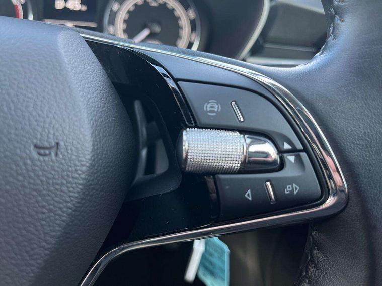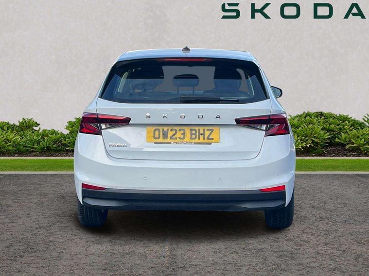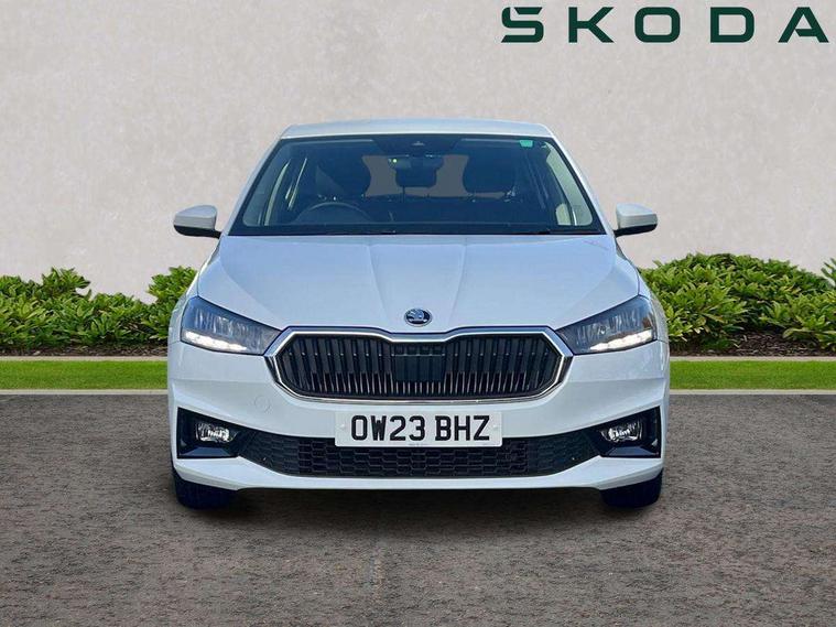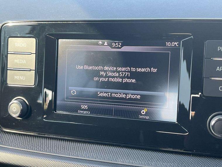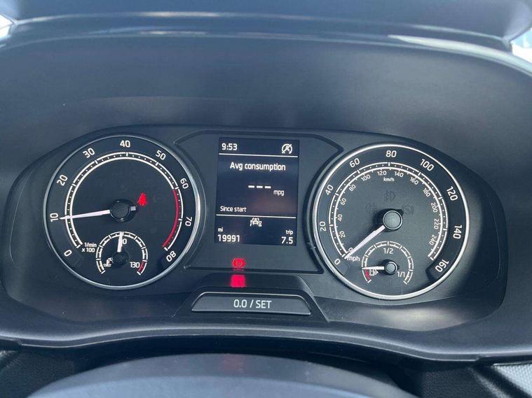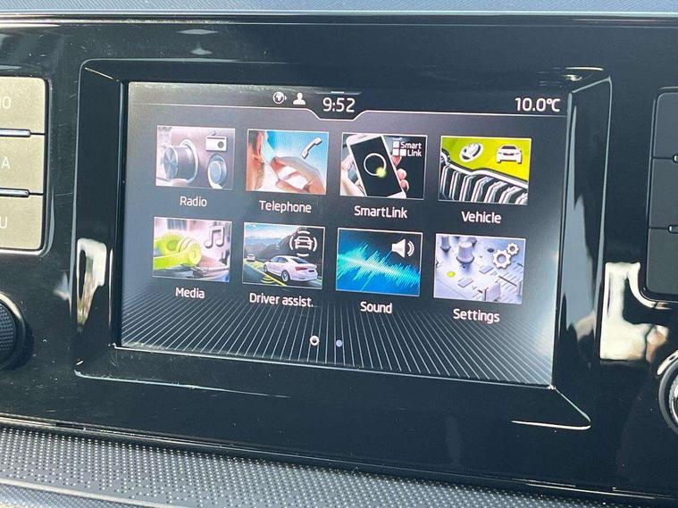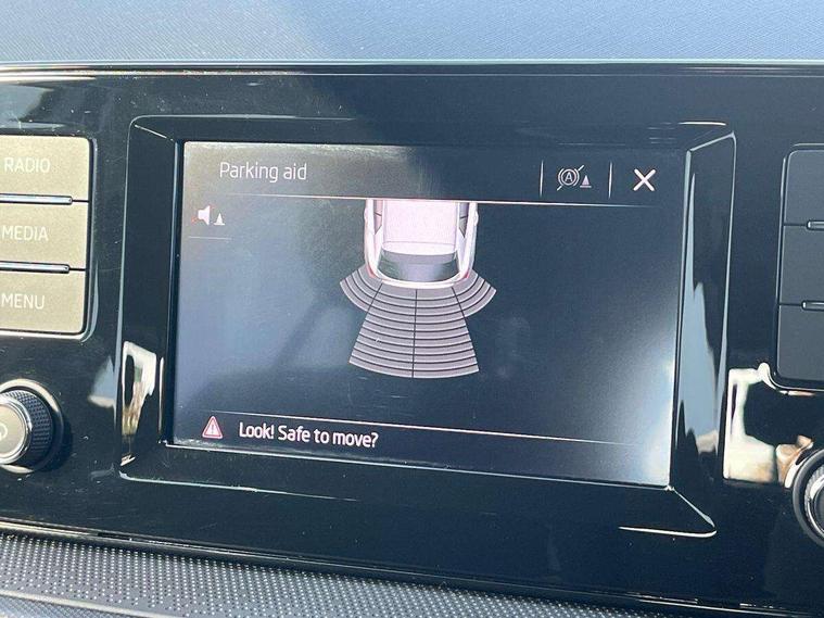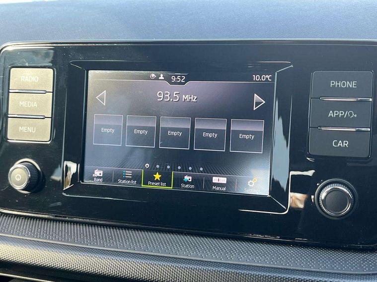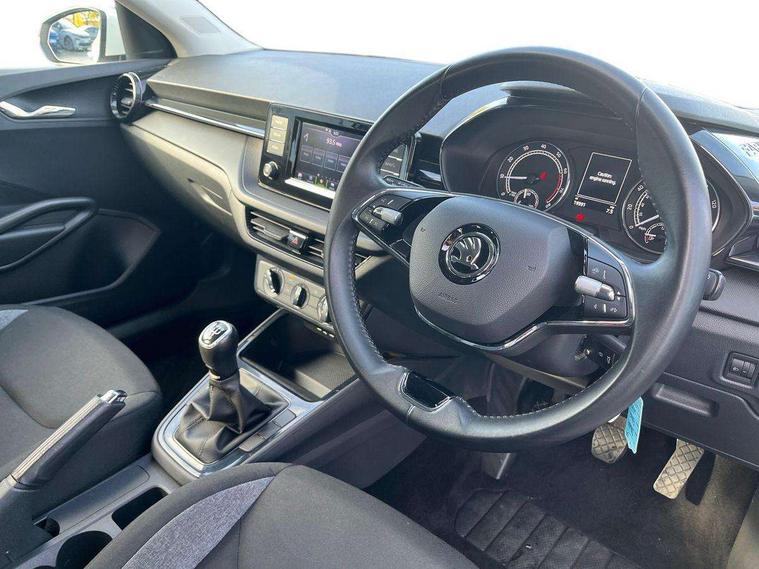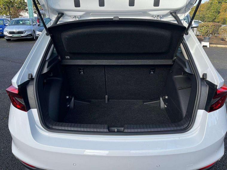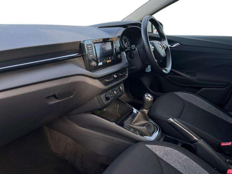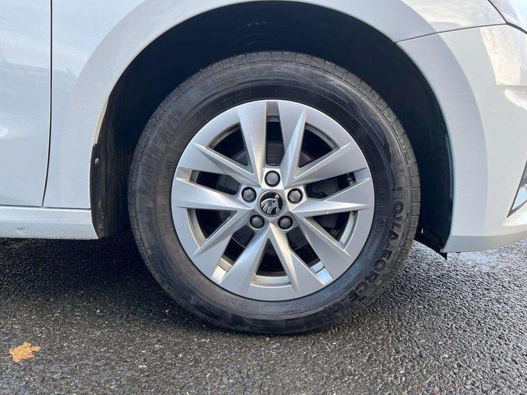 Bluetooth connection, Driver alert system - DAS, Electromechanical power steering, Exterior temperature gauge, Lane assist including road edge detection, Multifunction trip computer in black and white, Service interval indicator, Speed limiter, 2x USB-C in the front (for data transmission and charging), 4 speakers in front, Auxiliary socket for external MP3 player, DAB digital radio reception, Radio Swing with 6.5" colour display, Basic LED Headlights, Basic rear lights, Body colour door mirrors, Body coloured bumpers, Dimming rear view mirror with black frame, Door mirror integrated indicators, Electrically adjustable and heated door mirrors, Electrically adjustable front windows with function auto up/down, Front fog lights, Front window wiper intermittent control, Headlight range control - Automatic, Ice scraper in fuel cap, LED daytime running lights with coming and leaving home feature, Mechanical adjustable rear windows, Rain sensor, Rear LED fog light, Rear side wing doors, Rear window wiper with washing nozzles, Roof mounted spoiler, SKODA tailgate lettering in chrome, Third brake light, 2 reading lights in front and 2 reading lights in rear, 2 spoke leather multifunction steering wheel, 3 rear headrests, Backrest split and folding, Central console with fixed cup holder and storage box, Chrome handbrake release button, Fabric upholstery, Gearshift knob/handle in leather, Grain satin black interior door handles, Hand brake lever handle in leather, Height adjustable front headrests, Height adjustable front seats, Height adjustable steering wheel, ISOFIX and TopTether anchorage points to the outer rear seats, ISOFIX and TopTether on the front passenger seat, Luggage compartment lighting, Manual air conditioning, Manually adjustable lumbar support in front seats, Pollen filter, Rear seat bench unsplit, Single front passenger seat, Storm grey headlining, Sun visors with mirror and airbag label on passenger side, Ticket holder, 3-point height adjustable front seats belts with pretensioner and force limiter, Automatic warning lights in case of crash, Driver and passengers airbag with switch off function, e-Call+, ESC including ABS, MSR, ASR, EDS, HBA and XDS, Front and rear seat belt warning, FRONT ASSIST (AEB City and AEB Inter Urban), Front side airbags, Head airbags, One tone horn, Pedestrian protection, Three rear 3-points safety seat belts with pretensioner and force limiter including stop function for outer rear seat belts, Tyre pressure monitoring system, Anti-theft alarm system including immobiliser, interior monitoring, backup horn, and towing protection, Central locking with radio remote control, interior controls, SAFE function and 2 foldable keys, Black painted air vents, Glossy black decorative trim, Grain satin black central console cover, Grain satin black lower decorative trim, Satin black door and side trim panel in front, Anti-theft wheel bolts protection, Super-low rolling resistance tyres,