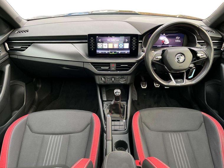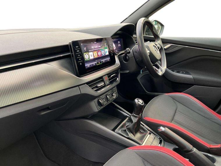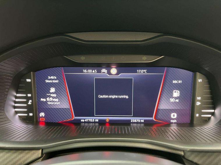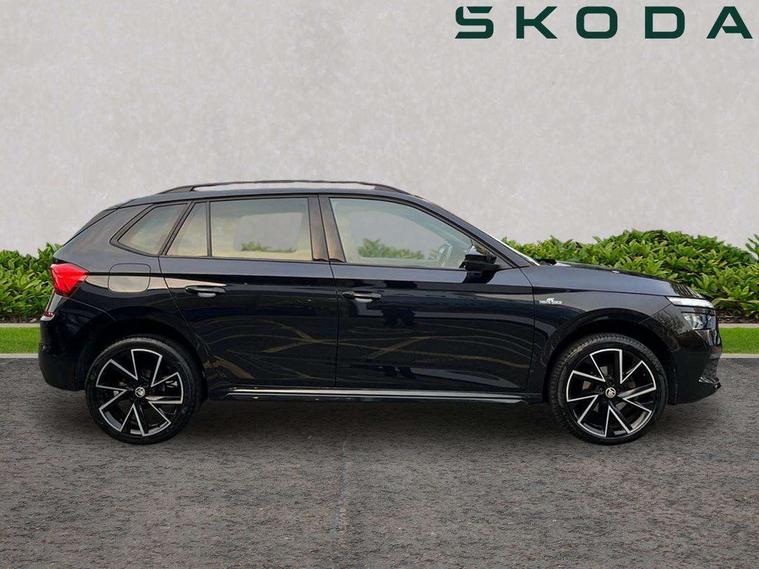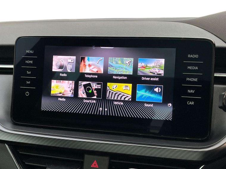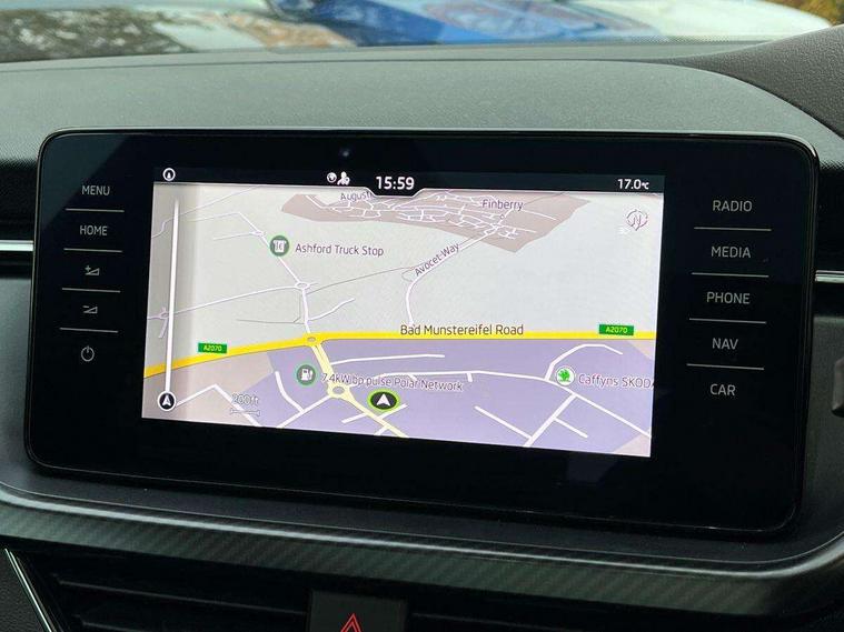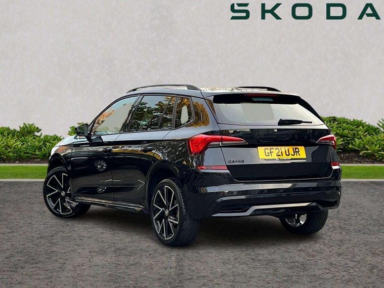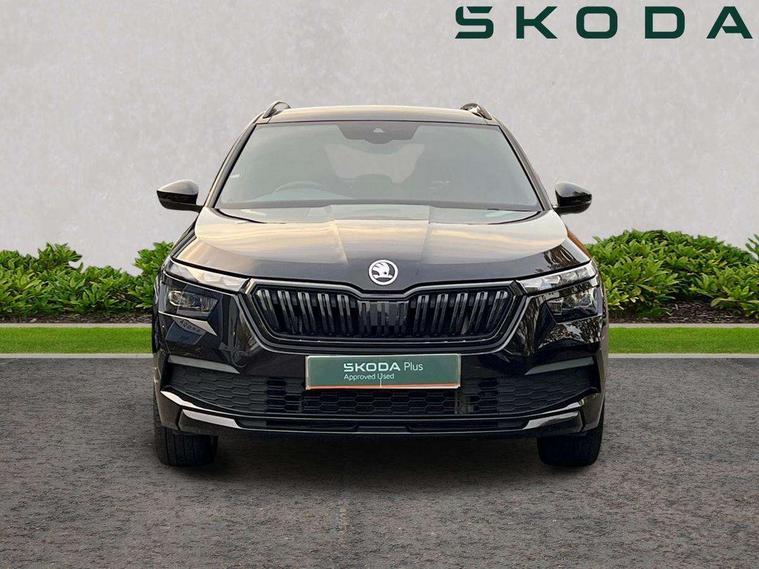 Chrome air vent surrounds, 18" Vega alloy wheels in black, Alarm with interior monitoring, back up horn and tilt sensor with safe function and towing protection, Anti-theft wheel bolts, Immobiliser, Remote central locking with SAFE system, 2 USB - C ports with 1x adaptor cable, Auxiliary input socket, DAB Digital radio, 3x3 point rear seatbelts, Airbags - driver and front passenger, ESP, Front passenger airbag deactivation switch, Front side airbags with curtain airbags, Hill hold control, Manual parking brake, One tone horn, Rear disc brakes, Seatbelt reminder for driver an co-driver, Traction control, Tyre pressure monitor, Auto dimming rear view mirror, Black door mirrors, Black radiator grille, Black rear diffuser, Body colour bumpers, Body colour roof spoiler, Boot lettering in black, Chrome grille surround, Electrically adjustable and heated door mirrors, Front and rear electric windows, Front sport bumper, Full LED headlights with adaptive front light system, dynamic indicators, cornering function and fog lights, Headlight range control, Heated rear window, High functionality rear led lights with dynamic indicators, KAMIQ Door sills, Monte carlo plaque, Panoramic sunroof with black roof rails, Privacy glass, Rear fog lights, Rear wiper, 12V Accessory socket in centre console, Aluminium pedals, Black ceiling for black/beige interior, Chrome inner door handles, Cloth upholstery, Front gesture control, Front head restraints, Glove compartment with illumination, Height adjustable passenger seat, Ice scraper, Isofix child seat fittings on outer rear seats, ISOFIX on front passenger seat, Leather gear lever, Manual lumbar support for front seats, Rake/reach adjustable steering wheel, Reading lights for driver and front passenger, Sports seats, Sun visor with make up mirror for front passenger, Textile floor mats, Third rear headrest, Top tether for front passenger seat, Umbrella in driver's door, Amundsen satellite navigation with 9.2" touchscreen display, voice control, virtual cockpit and web radio, Bluetooth system, E-call, Front assist system, Lane assist, PAS, Service indicator, Speed limiter, Trip computer, Virtual cockpit with 10.25"display, Wireless SmartLink for apple car play, android auto and mirrorlink,