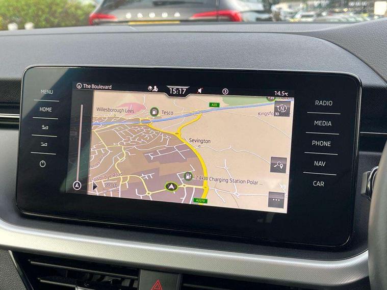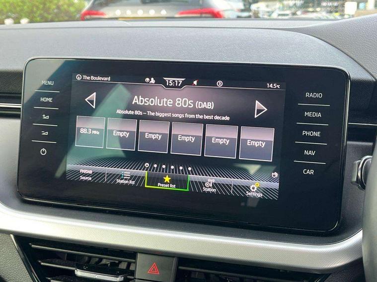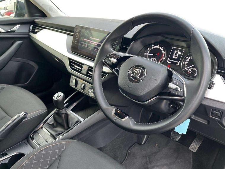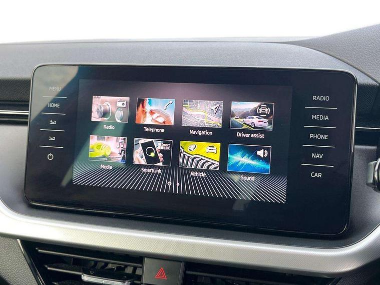Amundsen satellite navigation with 9.2" glass colour touchscreen display, web radio, voice control and traffic sign recognition, Bluetooth system, E-call, Front assist system, Gesture control, PAS, Service indicator, Speed limiter, Wireless SmartLink for apple car play, android auto and mirrorlink, 8 Speakers, Auxiliary input socket, DAB Digital radio, Body colour bumpers, Body colour door mirrors and handles, Chrome grille surround, Dimming rear view mirror with black surround, Electrically adjustable and heated door mirrors, Front and rear electric windows, Headlight range control, Heated rear window, LED rear lights - low functionality, Light sensors, Privacy glass, Rear fog lights, Rear side wing doors, Rear wiper, 12V Accessory socket in centre console, 3 seat bench in 2nd row, Chrome inner door handles, Cloth upholstery, Front head restraints, Glove compartment with illumination, Height adjustable driver and front passenger seats - manual, Ice scraper, Isofix child seat fittings on outer rear seats, ISOFIX on front passenger seat, Manual lumbar support for front seats, Rake/reach adjustable steering wheel, Reading lights, Single front passenger seat, Sun visors with illumination on front passenger, Textile floor mats, Third rear headrest, Top tether for front passenger seat, Umbrella in driver's door, 3x3 point rear seatbelts, Airbags - driver and front passenger, ESP, Front passenger airbag deactivation switch, Front side airbags with curtain airbags, Hill hold control, Manual parking brake, Manual rear child locks, One tone horn, Rear disc brakes, Seatbelt reminder for driver an co-driver, Traction control, Tyre pressure monitor, Anti-theft alarm system with interior monitoring, backup horn, towing protection and remote central locking with SAFE system, Anti-theft wheel bolts, Electronic engine immobilizer, Silver haptic decorative insert on the dashboard with hot stamping in glossy black,