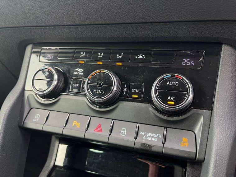 Adaptive cruise control, Amundsen sat nav system with 8" touch screen and integrated Wi-Fi + WLAN, Driver alert system, Driver fatigue sensor, Driver profile selection, Electro-mechanical PAS, Outside temperature gauge, Service interval indicator, Start/stop system with regenerative braking, Wireless RSE app, DAB radio with Bluetooth, SD card slot, USB connection, Acoustic glass, Aero front windscreen wipers with intermittent function, Automatic headlight control system, Black electric window control buttons, Body colour door mirrors and handles, Body coloured bumpers, Electric front and rear windows with child proof lock, Electrically adjustable heated folding and auto dimming door mirrors, Heated rear windscreen, LED rear lights with high functionality, Light assistant (coming/leaving home/tunnel light), Privacy glass, Safety reflectors on front doors, Third brake light, 1.5 litre bottle holders in driver and front passenger door panels, 12V socket in boot, 12v socket in front centre armrest with storage compartment and rear air vents, 2 Folding hooks and nets in boot, 2 Front readings lights for driver and passenger, 3 rear height adjustable headrests, 4 foldable roof handles with rear coat hooks, 4 lashing points on luggage floor, Backrest release, Cargo elements in boot, Chrome inner door handles, Driver and passenger seats height adjust, Dual zone climate control, Folding tables on the front seat backrests, Front head restraints, Front seat and rear pockets, Height adjustable front three point seats belts with tensioners, Height/reach adjust steering wheel, Ice scraper, Illuminated and cooled glovebox, Illuminated luggage compartment, Isofix child seat preparation outer rear, Manual lumbar support for front seats, Net programme in boot, Pen holder, Pollen filter, Rear boot cover, Rear reading lights, Rear seats fixed folding and divided 60:40, Safety vest holder, Storage box in upper central dashboard closed, Sunvisors with illuminated vanity mirrors, Umbrella under passenger seat, Airbags - Front side, head, knee and curtain, Automatic door unlocking in case of crash, Automatic fuel cut off in case of crash, Driver airbag, Electronic parking brake with auto hold function, Emergency rear braking signal, ESC including ABS, MSR, ASR, EDS, HBA, DSR, RBS, MKB and traction control, Front assist radar scanning of the space in front of the car with automatic braking, Hill hold control, Passenger airbag with switch-off function, Pedestrian monitor, Seatbelt reminder signalisation and pretensioner for all seats, Three point seatbelts rear, Two tone horn, Tyre pressure display, Tyre pressure monitor, Alarm with interior monitoring, back up horn and tilt sensor with safe function, Electronic engine immobiliser, Remote central locking with 2 remote folding keys, Chrome framed air vents, Storage on wheel cover,