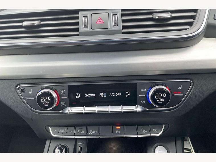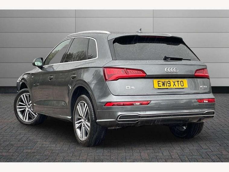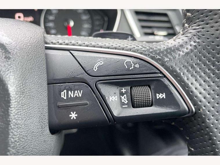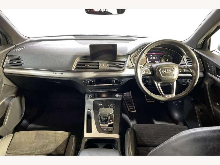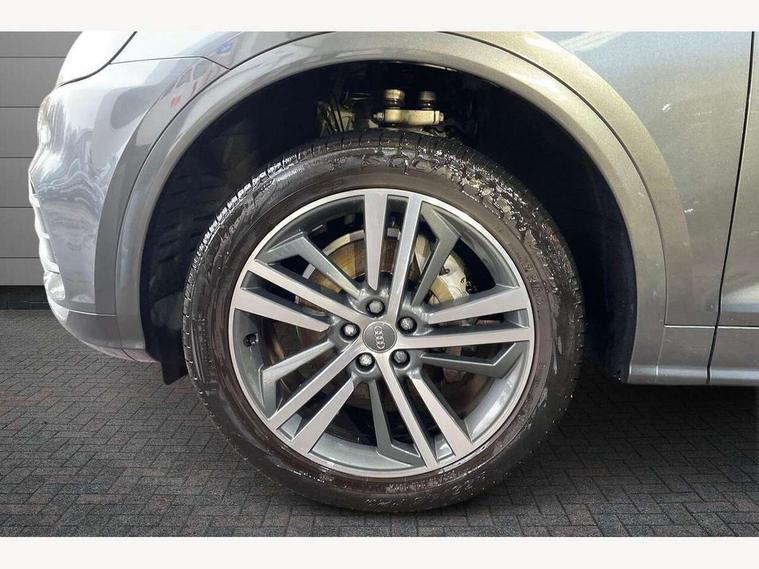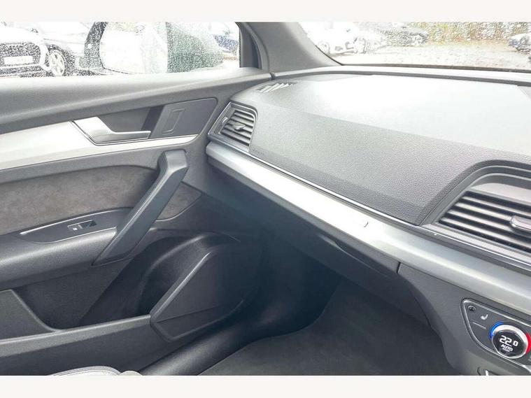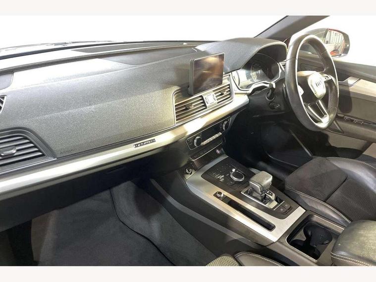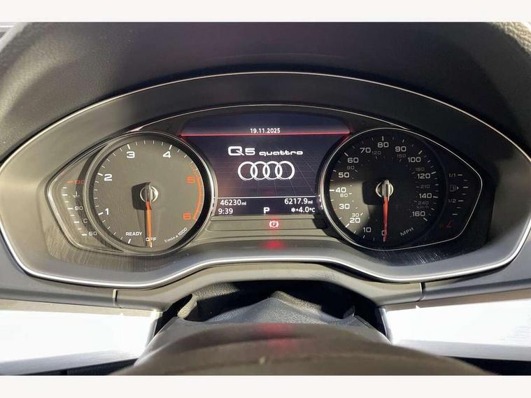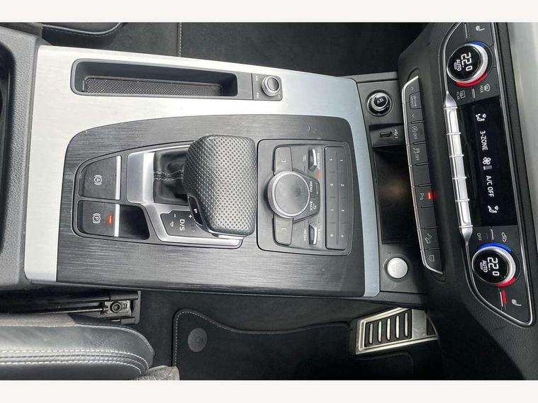 7" Colour driver information system, Audi connect safety and service (e-call), Audi drive select, Audi parking system plus with front and rear sensors, Audi Pre sense collision avoidance, Audi smartphone interface, Automatic start-stop system with coasting functionality and efficiency programme, Cruise control + speed limiter, Electro - mechanical power assisted steering, MMI Navigation, Mobile telephone preparation - bluetooth interface, Power tailgate, Service interval indicator, Voice control system, Diesel particulate filter, Dynamic suspension, Quattro on demand, 2 x USB charging port with aux input socket, 2x SD card slot, CD player, DAB Digital radio, MMI radio plus with 7" colour MMI screen and MMI controller, Acoustic windscreen, Air inlets in matt titanium black with blades in matt aluminium silver, Aluminium roof rails, Auto dimming rear view mirror, Automatic headlight levelling, Body colour bumpers, Body colour door mirrors, Body colour rear diffuser with matt aluminium silver surrounds, Body colour S Line side skirts, Body colour underbody protection, Chrome exhaust tailpipe, Electric adjustable/heated/folding door mirrors, Front and rear electric windows, High beam assistant, LED headlights with LED rear lights + dynamic rear indicators, Light and rain sensor for auto activation of lights and windscreen wipers, Loading sill protector in stainless steel, Privacy glass with front acoustic glazing, Rear wiper, S front and rear bumpers, S Line badges on the front wings, S Line rear spoiler, Twilight grey matt radiator grille with matt aluminium horizontal chrome struts, 3 rear headrests, 40:20:40 split folding rear seat with rear centre armrest, Black cloth headlining, Contrast stitching on seats, steering wheel and gear lever gaiter, Deluxe 3 zone electronic climate control, Front centre armrest, Front sport seats with S embossed logo, Front/rear floor mats, Heated front seats, Height adjustable front head restraints, Height/reach adjustable steering column, Illuminated door sill trims with S logo, ISOFIX child seat mounting and top tether, Luggage compartment carpet, Manual seat adjustment with 4-way electric lumbar support, Perforated leather gearknob, Removable luggage compartment floor, Stainless steel pedals, Sunvisors with vanity mirrors, Trunk roller cover, High gloss pack - Q5, LED interior light pack - Q5, Non Smokers pack, 3 point seatbelts on all seats, 6 airbags - Driver, front passenger, curtain and side airbags, Electromechanical parking brake, Electronic stabilisation control including ABS, ASR and EDL, Front passenger airbag deactivation, Hill descent control, Hill hold assist, Multi collision brake assist, Pop-up bonnet for pedestrian protection, Pre sense city, Seat belt force limiter, Seatbelt monitoring, Tyre pressure warning, Warning triangle and first aid kit, Anti theft alarm, Anti-theft wheel bolts, Keyless Go access/ignition system, Remote central locking, Matt brushed aluminium inlays, Tool kit,