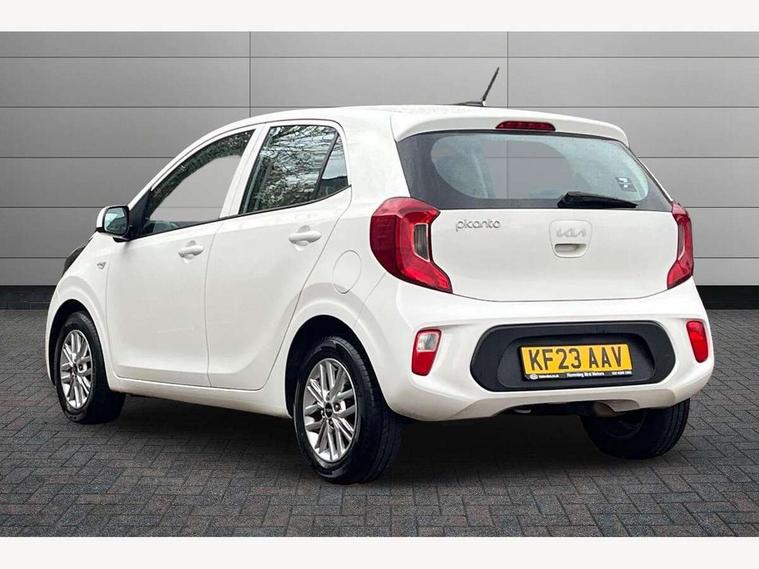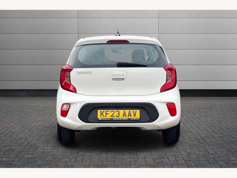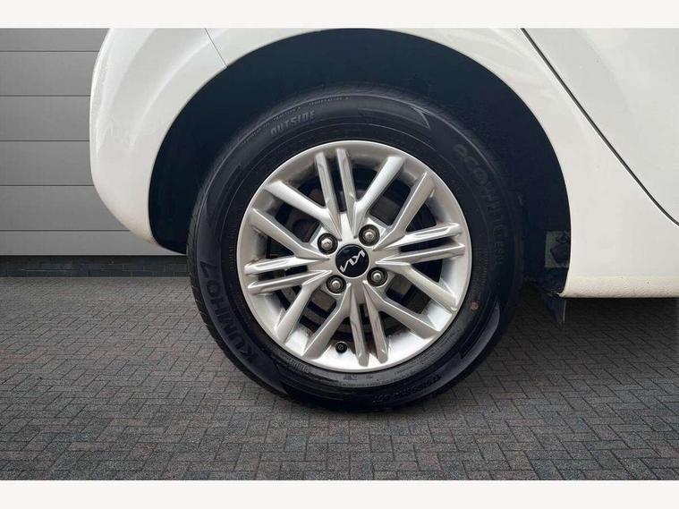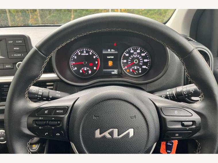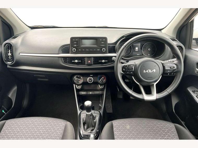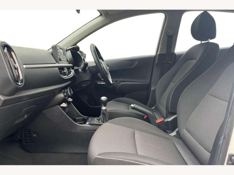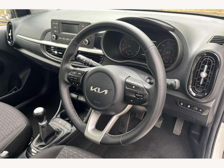 3.8" monochrome audio display with RDS and DAB, 4.2" supervision monochrome cluster display, Emergency call service, Emergency stop signalling system, External temperature gauge, Forward Collision-Avoidance Assist (FCA) - City, Motor driven power steering, Tachometer, Tailgate, Trip computer, 4 speaker audio system, Bluetooth with music streaming, Steering wheel mounted controls, USB ports for connection of a media device, Automatic headlight control system, Black radiator grille with chrome surround, Body colour bumpers, Body colour mirrors and door handles, Day/night rear view mirror, Daytime running lights, Electric adjustable heated door mirrors, Front and rear electric windows with drivers's auto up/down function, Headlamp levelling, Heated rear window, High mount brake light, MFR - Multi Focus Reflector halogen headlights with black bezel, Rain sensor, Rear fog lights, Rear side wing doors, Rear wash/wipe, Speed variable front wipers, Tinted glass, Visible VIN plate, Welcome and follow-me home light functionality, 1 x rear coat hook, 12V power point front, 2 seat bench in 2nd row, 3 x passenger assist grips, 60/40 split/folding 2nd row of seats, All round height adjustable headrests, Cupholders in centre console, Driver and front passenger sunvisor with vanity mirror, Driver seat height adjust, Front cabin lights, Glovebox, High gloss lower centre fascia trim, door armrest and air vents, ISOFIX Child seat top tethers and anchor fixings, Leather trimmed steering wheel and gearshift, Luggage area light, Luggage area parcel shelf, Manual air conditioning, Passenger front seatback pockets, Premium cloth upholstery, Silver paint finished interior door handles, Single front passenger seat, Slide/reclining front seats, Tilt adjustable steering wheel, Advanced Driver Assistance Pack - Picanto, 2 x 3-point rear seatbelts, ABS/EBD, Automatic unlocking of doors in case of impact, ESC + BAS + VSM + HAC, Front passenger airbag cut-off switch, Front seatbelt height adjusters, Front seatbelt pretensioners, Hill hold control, Hill start assist control (HAC), Knee airbags, Rear child proof door locks, Seatbelt warning, Side impact protection, Torque vectoring brake based and straight line stability (SLS), Traction control, Twin curtain airbags, Twin front airbags, Twin front side airbags, Tyre pressure monitoring system, Anti theft alarm, Engine immobiliser, Folding key, Locking wheel nuts, Remote central door locking, 14" alloy wheels, Tyre mobility kit,