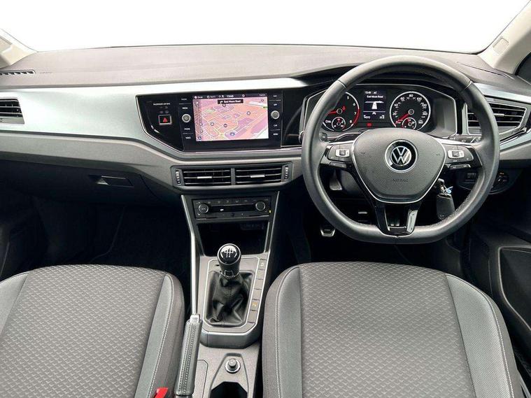 Air vents in High gloss black, Limestone grey decorative inserts, Discover media navigation system with 8" display including streaming and internet pack - Polo, Light and sight pack - Polo, Winter pack - Polo, 15" Galway alloy wheels with anti theft wheel bolts, Alarm with interior protection and deactivation via infotainment system, Electronic engine immobiliser, Remote central locking with 2 remote folding keys, Diversity antenna for FM reception, Front and rear 6 speakers, 3 point height adj front seatbelts + pretensioners, 3x3 point rear seatbelts, ABS, Automatic post collision braking, Driver/front passenger airbag, Drivers and front passengers safety optimised head restraints, ESP with EDL + ASR, Front and rear passenger curtain airbags, Front disc brakes and rear drum brakes, Front passenger airbag deactivation, Front seat side impact airbags, HBA (Hydraulic Brake Assist), Hill hold control, Single tone horn, Tyre pressure monitoring system, Active aluminium scuff plates, Active badge on B Pillar, Black grille with chrome surround, Black radiator grille with chrome louvres, Body colour bumpers, Body colour door handles, Body colour door mirrors with integrated indicators, Body colour rear spoiler, Body coloured side sills, Electric front windows, Electrically adjustable and heated door mirrors with reverse activated kerb view adjustment on passenger's side, Front windscreen washers and wipers with 4 speed intermittent delay, Heat insulating rear tinted glass from B-pillar backwards approx 65% tinted, Heated rear window with auto timer, High level 3rd brake light, LED daytime running lights, LED rear number plate lights, Rear electric windows, Rear windscreen washer and wiper with interval delay, reverse activated, 2 bag hooks in luggage compartment, 2 front and 2 rear reading lights, 2 front cupholders and 12 V socket with cover, 3 rear head restraints, 4 grab handles, 60/40 split folding rear seat, Ambient lighting, Centre console storage with open storage compartment, Chrome interior door handles, Climate control - 2 zone electronic air conditioning with automatic air recirculation and allergy filter, Driver and front passenger seat height adjustment, Driver and front passenger sunvisors with illuminated vanity mirrors, Dust/pollen filter, Folding rear seat backrest, Front + rear carpet mats, Front head restraints, Front seat backrest storage pockets, Gear lever gaiter in black trim surround, Glovebox, Handbrake grip button in chrome effect, Height/reach adjustable steering column, Instrument lighting, adjustable panel illumination, Interior light with delay, Isofix Preparation 2 Rear child seats, Leather gear knob and handbrake grip, Leather multifunction steering wheel, Luggage compartment cover, removable, Luggage compartment lighting, Luggage compartment with variable load floor, Lumbar adjustment for front seats, Special Active Waveform cloth upholstery, Stainless steel foot pedals, Storage compartment in front doors, Storage compartment in rear doors, Storage compartment under front seats, Sunglasses holder, Digital clock, Driver alert system, Emergency call service, Multifunction computer plus, Power assisted speed sensitive steering, Speedo and rev counter, electronic odometer, trip, service interval display and fuel gauge, Start/stop system, Volkswagen connect, Warning buzzer and light for front seatbelts unfastened, Wireless app connect, Battery regeneration during braking, Galvanished body,