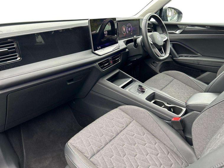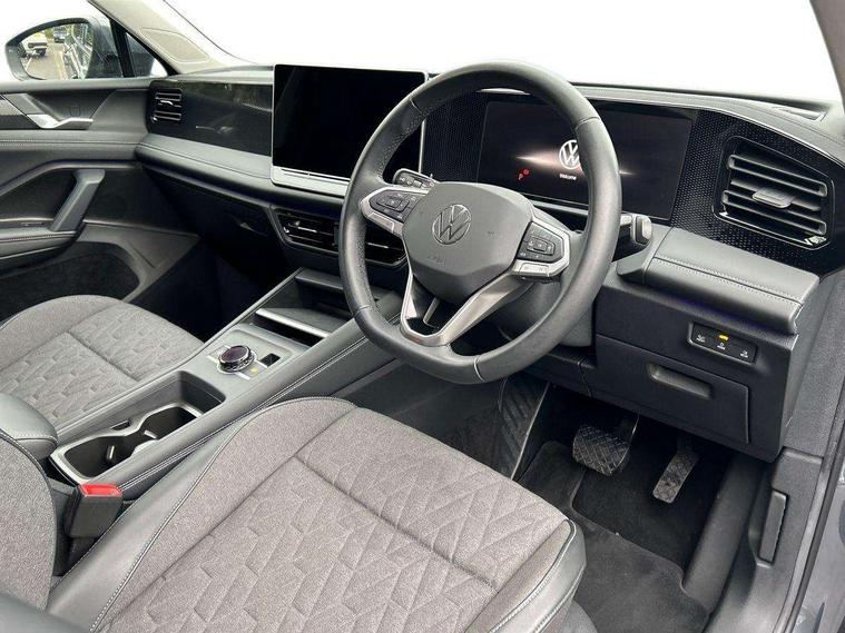 Adaptive cruise control (ACC), Advanced driver attention and drowsiness monitor, Bluetooth mobile phone interface, Digital Cockpit Pro - 10.25" high resolution dash display screen with customisable menus and information, Dynamic road sign display, E-Sim card for online connectivity, eCall emergency call service, Front Assist - Autonomous emergency braking with pedestrian and cyclist monitoring, Lane change system, Side assist, Rear traffic alert and Exit warning system, Lane keeping system Lane Assist, Multifunction front facing camera, Oncoming vehicle braking when turning including swerve support, Park assistance plus with front and rear parking sensors, Power assisted steering with speed sensitive, Start/stop system with regenerative braking, Warning signal and warning light for front and rear seatbelts not fastened, Wireless App-Connect, Front wheel drive, Digital radio reception (DAB), Diversity antenna for FM reception, Ambient lighting with logo projection, Auto dimming interior rear view mirror, Automatic headlight control system, Body coloured bumpers and air intake with chrome trim, Body coloured door handles, Body-coloured exterior mirror housings, Coming/leaving home lighting function, Heat insulating glass in side and rear windows, Heat insulating windshield, Heated rear window, High level 3rd brake light, Illuminated door handle recesses, Illuminated lightline between headlamps, Rain sensor windscreen wipers, Rear fog light on one side, reversing light on both sides, Rear side wing doors, Rear wiper, 12V outlet in center console rear and in luggage compartment, 12V socket in centre console, 3 bench rear seats in 2nd row, Air care climatronic 3 zone air conditioning system with rear air conditioning control panel, Carpet mats, front and rear, Centre console with illuminated storage compartment with sliding cover and two drinks holders, Ceramique headlining, Door and side trim panel in foam film and woven fabric, Front centre armrest, ISOFIX anchors for child seats on outer rear seats and front passenger seat compatible with i-Size, Mechanical rear seat release, Power adjustable lumbar support in front, Rear bench seat, split folding, longitudinally movable and folding with load-through hatch and centre armrest, Safety optimised front head restraints, Single front passenger seat, Sun visors with illuminated vanity mirrors, Three rear head restraints, Variable luggage compartment floor, Comfort package incl. Memory feature for Park assist and Safelock - Tiguan, Design package - Tiguan, 3 point seat belt for centre rear seats, 3 Point seat belts in front with pretensioners, 3 point seatbelts in outer rear with ECE label, Driver and front passenger airbag with front passenger airbag deactivation, Electronic parking brake with auto hold, Front and rear curtain airbags, Front and rear side airbags, Front centre airbag, Front disc brakes, Manual child proof rear door locks, Rear disc brakes, Two tone horn, Warning triangle, Anti theft wheel bolts, Soul instrument panel,