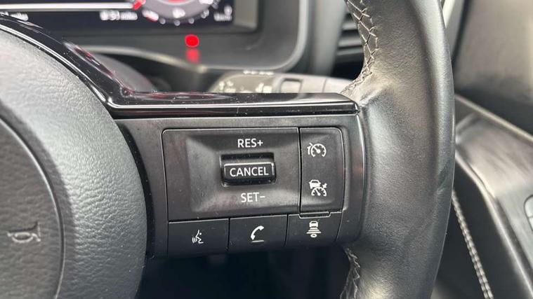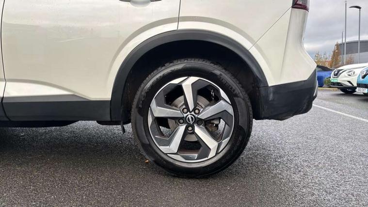 Android auto/Apple CarPlay (Wired), Blind spot warning, Drive modes (sport, normal, eco), Electric speed sensitive power steering, Emergency and breakdown call, Front and rear parking sensors, Full Digital 12.3" TFT Digital Combimeter, Google maps services - search, weather, 3D maps and Google street view, Idle stop/start system, Intelligent around view monitor, Intelligent Cruise control (ICC), Intelligent driver alert system, Intelligent forward collision warning, Intelligent lane intervention, Lane departure prevention, Lane departure warning system, Maximum speed limiter, Moving object detection, Nissan connect 12.3 inch touchscreen infotainment system, Nissan connect navigation, Push button starter, Rear cross traffic alert, Rear view camera, Remote control services - door locks, lights, horn and car locator, Telematics - notifications and connectivity services, TomTom live traffic services, Traffic sign recognition with legal speed adjustment, Trip computer, Virtual personal assistant and firmware over the air capability, Wireless apple carplay, 6 speakers, AM/FM audio system with DAB, Bluetooth audio streaming, Front USB connections (Type-A and Type-C), Rear USB charging only ports (Type-A and Type-C), Auto dimming rear view mirror, Auto rear wiper when reversing, Automatic hazard signal with emergency stop signal, Body colour mirror caps, Body coloured door handles, Bodyside mouldings, Chrome side window finisher, Door handle with button, Electric auto folding door mirrors, Electrically adjustable and heated door mirrors with LED turn indicator, Follow me home headlights, High beam assist, Intelligent auto headlights, LED daytime running lights, LED Headlights, LED rear lights, One touch front and rear electric windows with remote opening and closing, Partially body coloured bumpers, Privacy glass, Rear bumper with graphite insert, Rear reversing light (bulb lighting), Rear roof spoiler, Rear side wing doors, Rear styling plate, Shark fin antenna, Splash free rain sensing wipers, Super UV and infrared cut glass, Three blink turn signal, 12v power socket in dashboard and luggage, 2x Rear coat hooks, 3 bench rear seats in 2nd row, 3 rear headrests, 4 folding assist grip, 6 Luggage hooks - 4 on floor, 2 on side, 6-way manually adjustable driver's seat, 60/40 split folding rear seat bench, Ambient lighting around centre console, Centre console storage tray, Chrome interior door handles, Cloth monoform upholstery, Driver and front passenger sunvisors with illuminated vanity mirrors, Driver seat back pocket, Dual zone automatic climate control with pollen filter, Electrically adjustable lumbar support for driver, Front and rear door storage, Front centre console and armrest, Front cupholders x 2, Front door with bottle holders, Glovebox with light, Hard trunk cover, Height adjustable driver's seat, Height adjustable front headrests, Height adjustable passenger seat, Leather shift knob, Leather steering wheel, Luggage board system, Luggage space lighting, Manually adjustable passenger (slide recline + lifter), Multifunction steering wheel, Passenger seat back pocket, Rear armrest with 2 cupholders, Rear door bottle holders, Single front passenger seat, Soft PVC kneepad, Steering wheel switches, Sunglasses holder, Tilt/telescopic adjustable steering wheel, Two rear isofix child seat anchorage points with top tether, Welcome light and console tray ambient lighting, 3x3 point rear seatbelt pretensioners + load limiters, ABS with EBD and brake assist, Active brake limited slip, Auto hold function, Child locks on rear doors, Curtain and front side, far side airbags, Driver and passenger airbags, Driver, passenger and 2nd row rear seat belt reminder, Electronic parking brake, Front seatbelt pretensioners + load limiters, Height adjustable front seatbelts, Hill start assist, Intelligent blind spot intervention, Intelligent front emergency braking with pedestrian, cyclist recognition and junction assist, Intelligent rear automatic braking, Tyre pressure monitoring system, Vehicle dynamic control, Capless fuel filler, Engine immobiliser, Intelligent Key, Remote central door locking with deadlocking, Thatcham Cat.1 alarm, Interior instrumental panel B finisher, 18" Diamond cut alloy wheels, Tyre puncture repair kit,